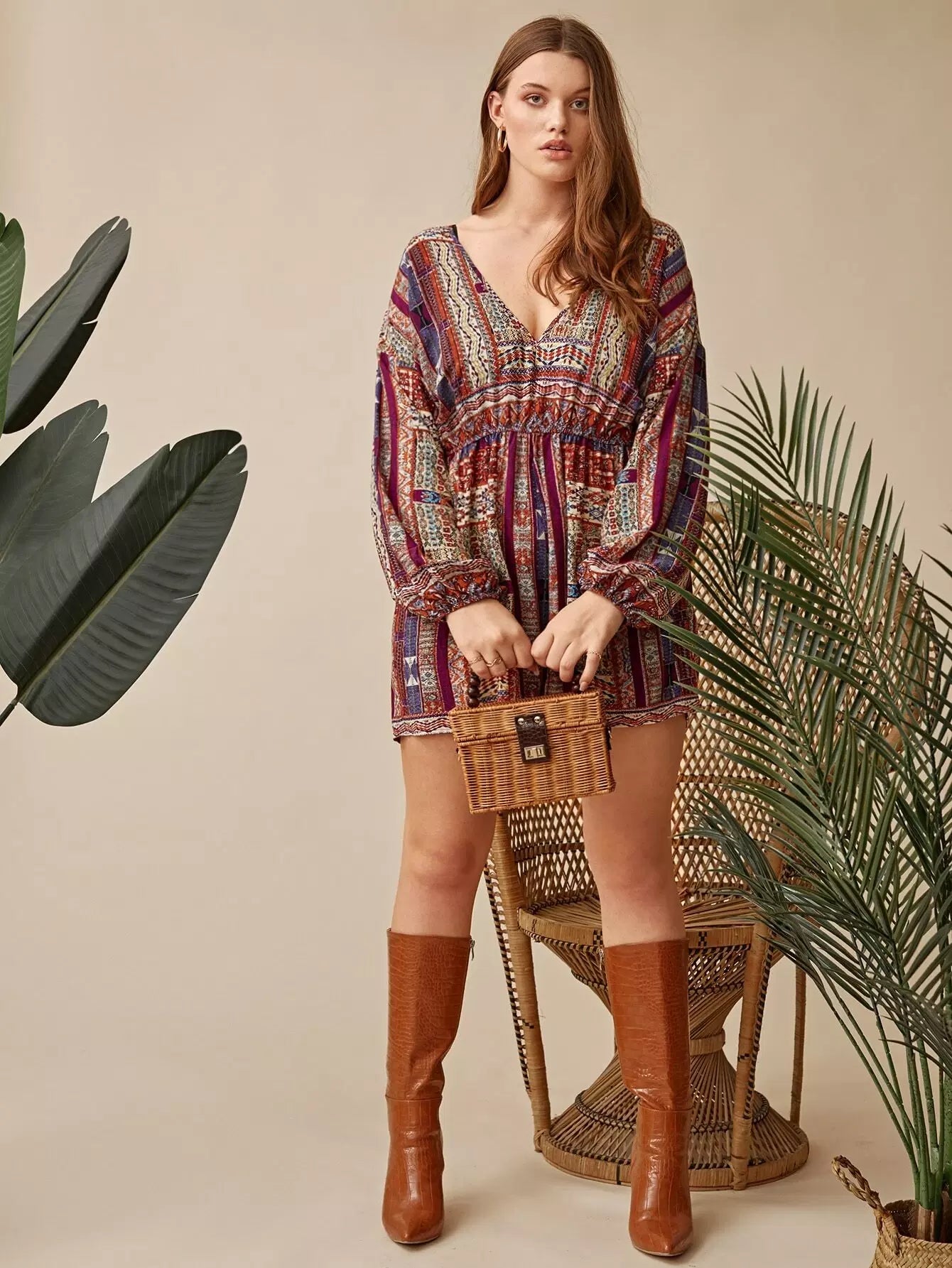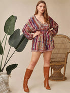 نحيف - مقاس كبير رومبير بأكمام واسعة ورقبة واسعة
