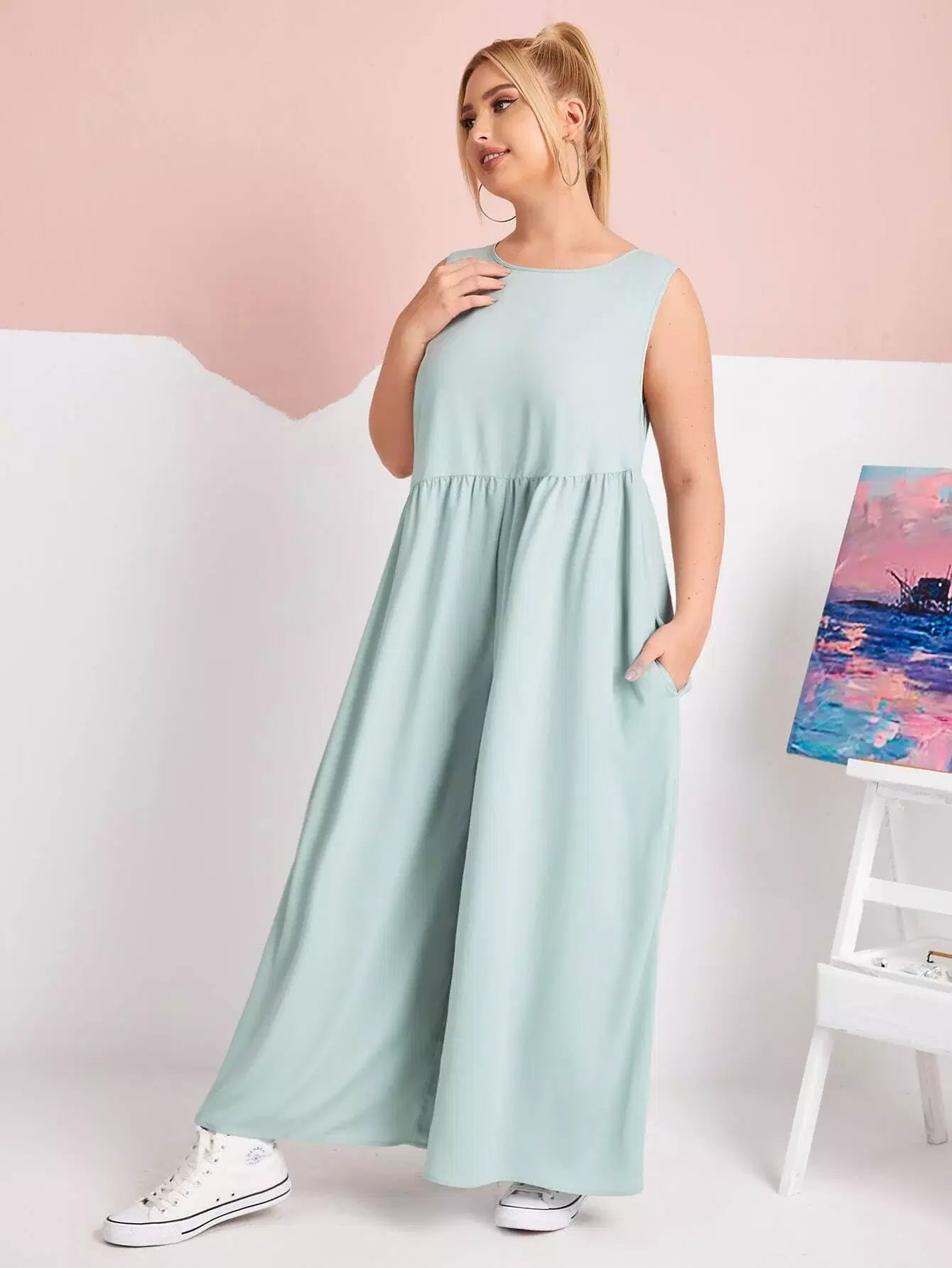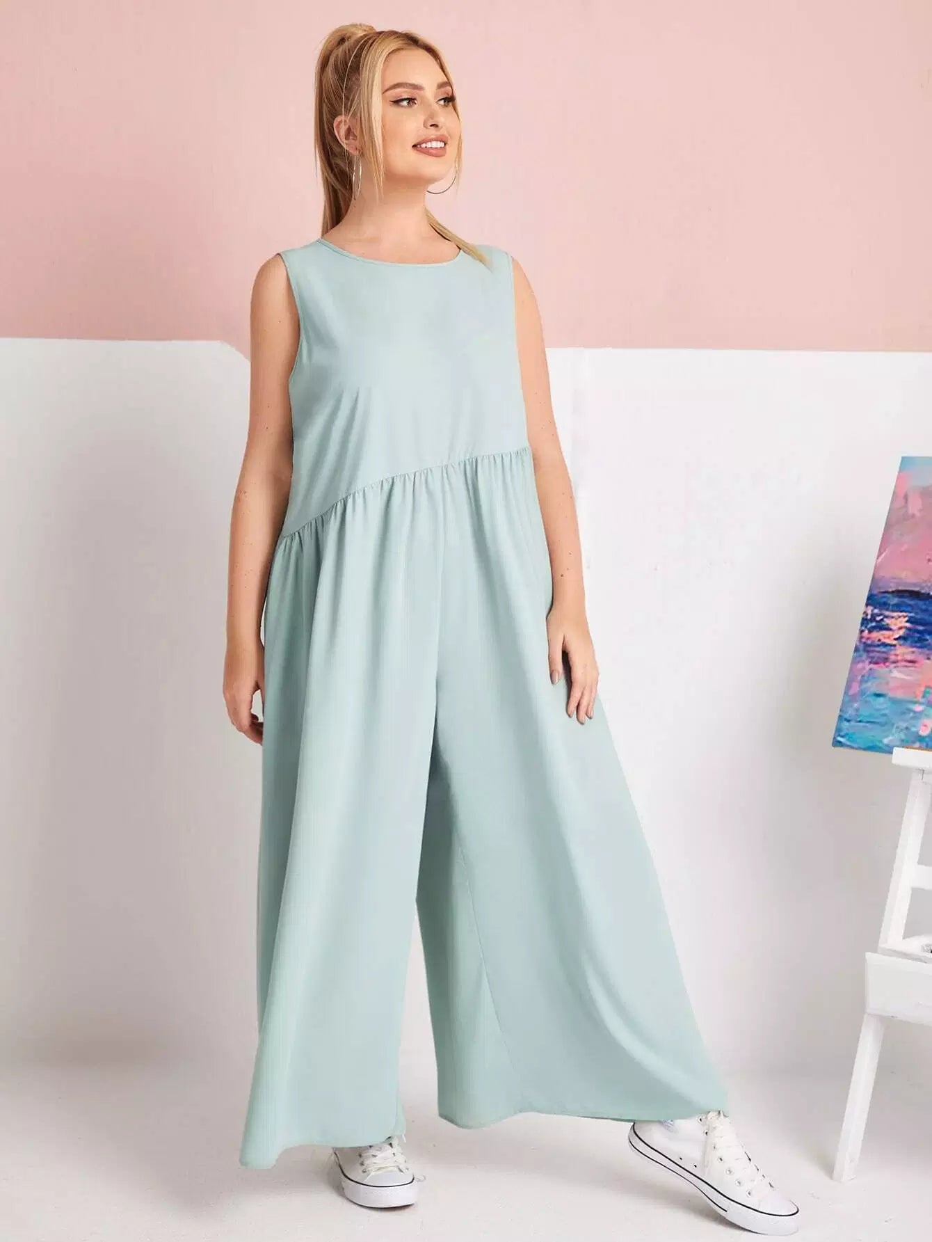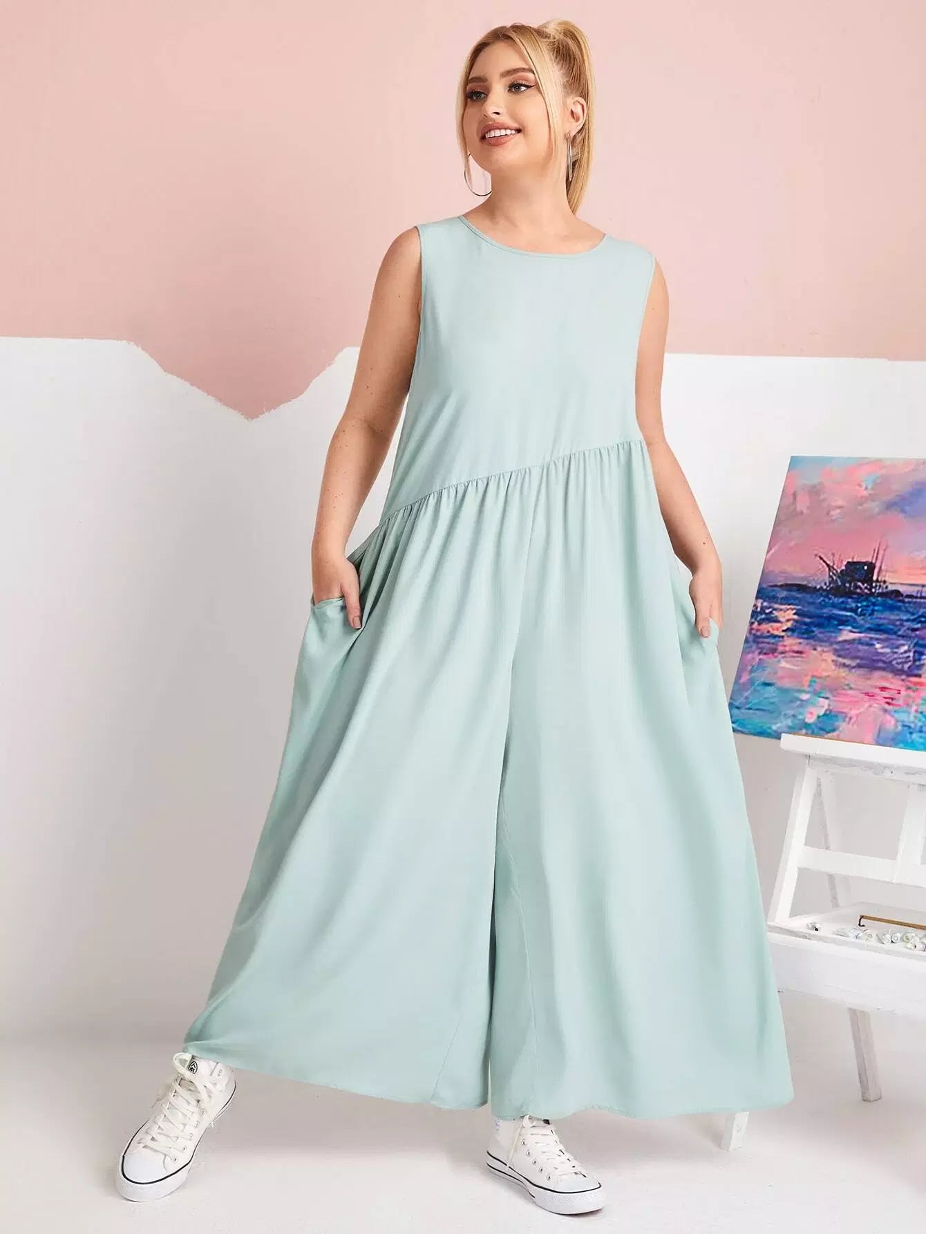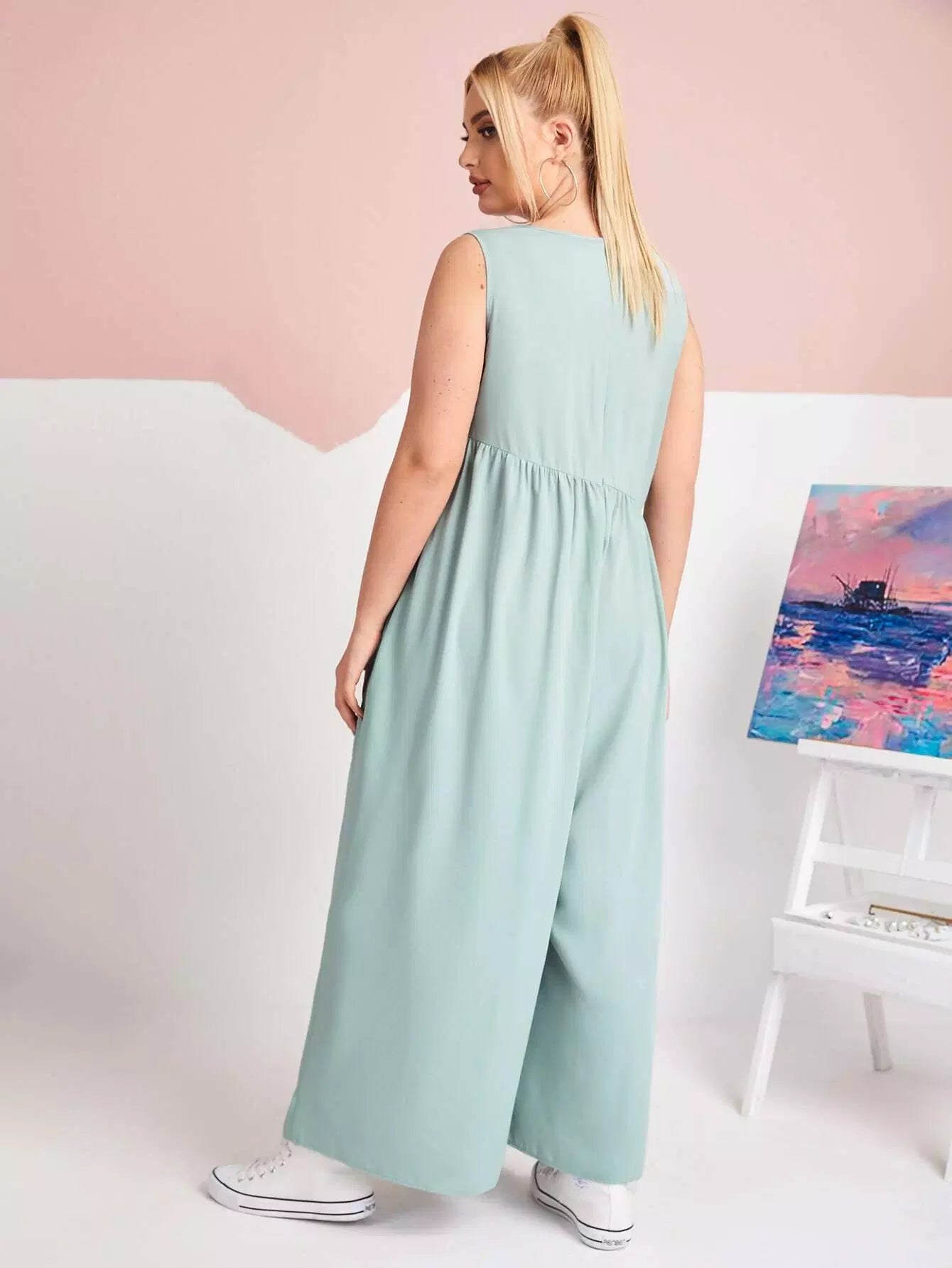 جمبسوت برقبة عريضة الساقين مفصلة بجيب زائد