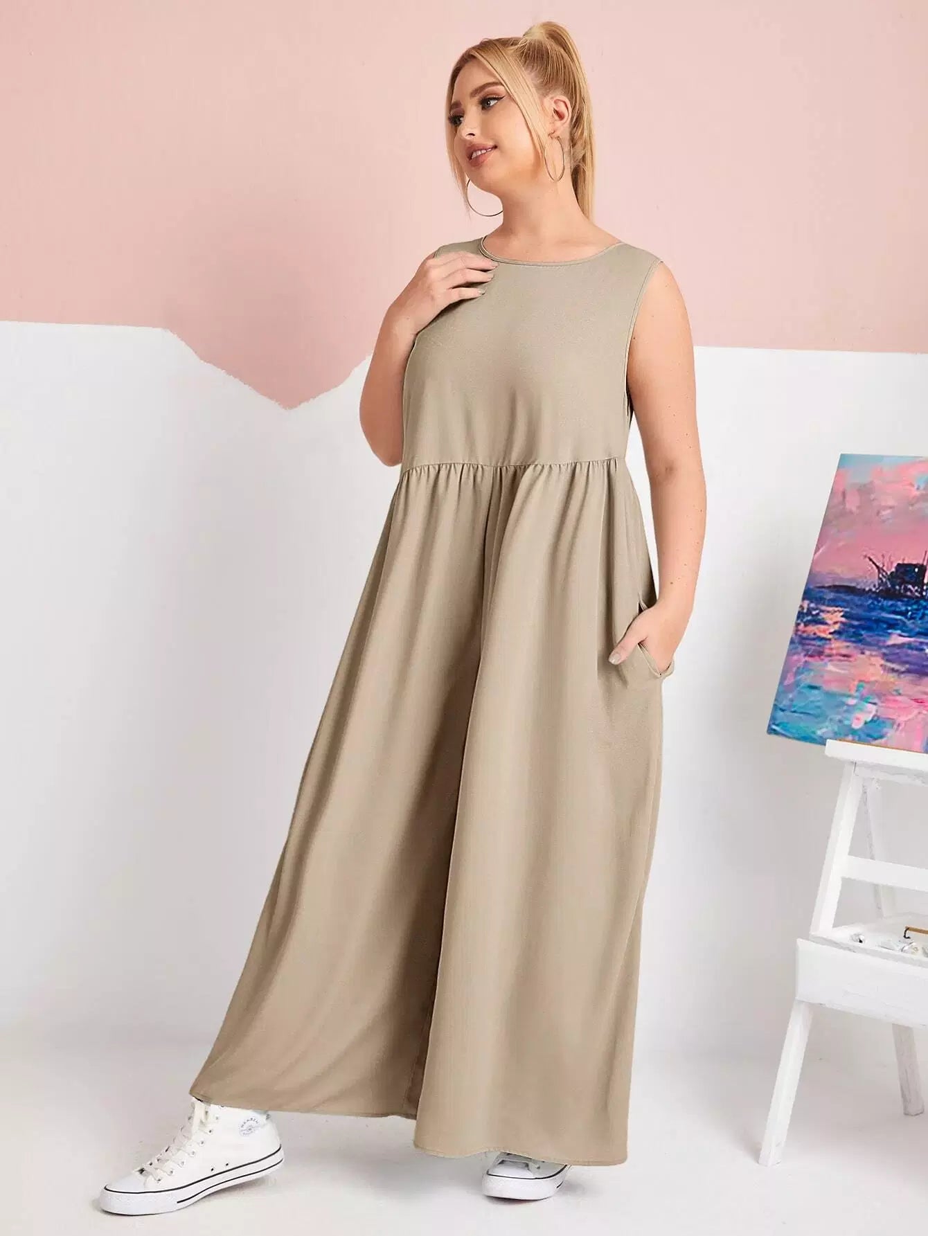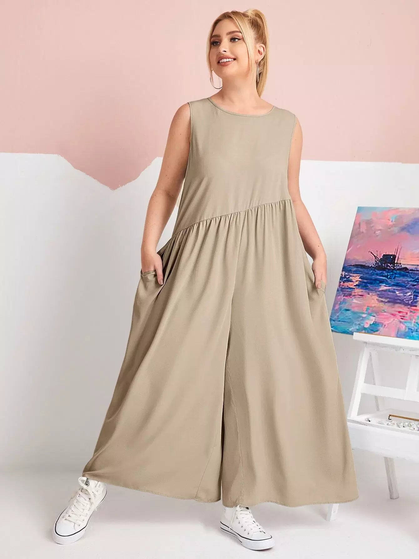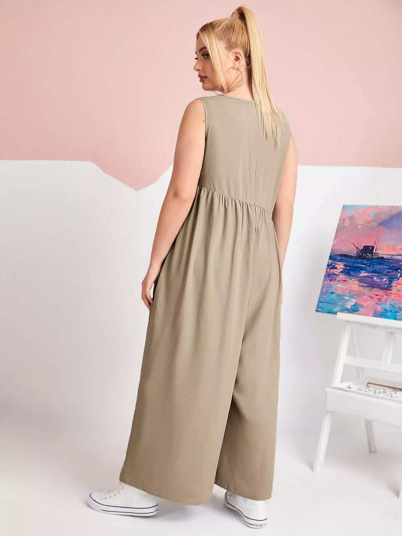 جمبسوت برقبة عريضة الساقين مفصلة بجيب زائد