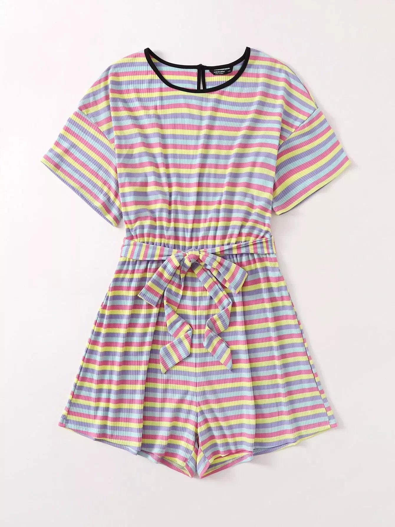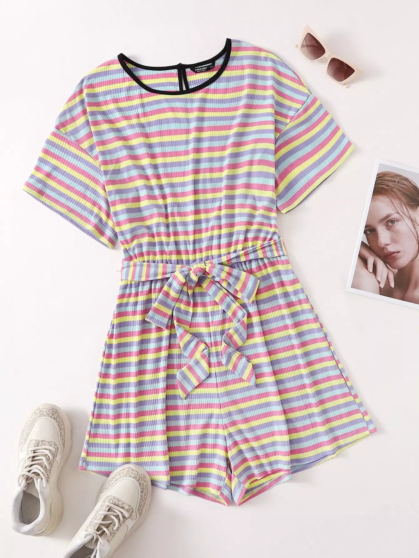 بالإضافة إلى رومبير مخطط بألوان قوس قزح بدون حزام