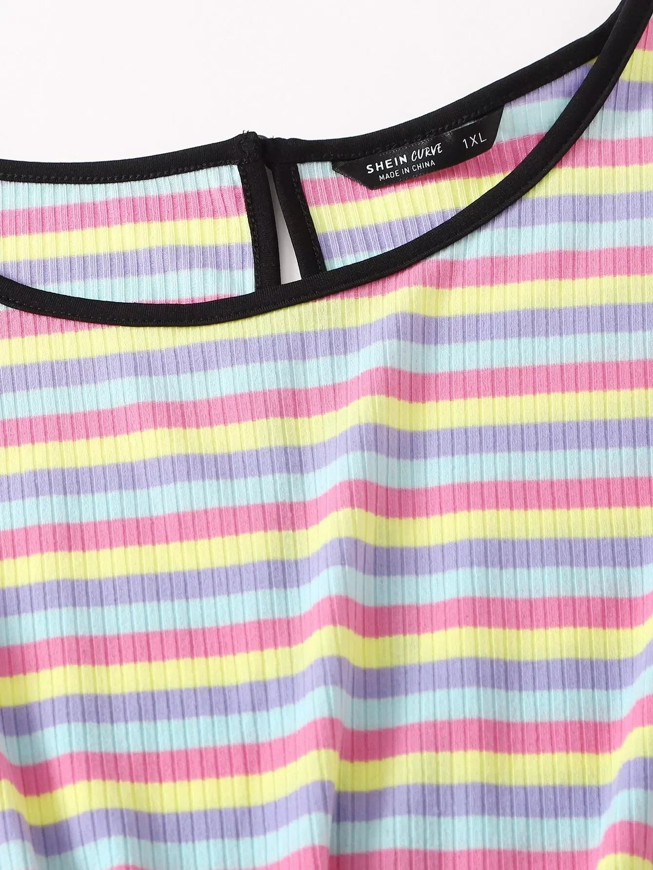 نحيف - مقاس كبير قوس قزح مخطط الذاتي مربوط رومبير