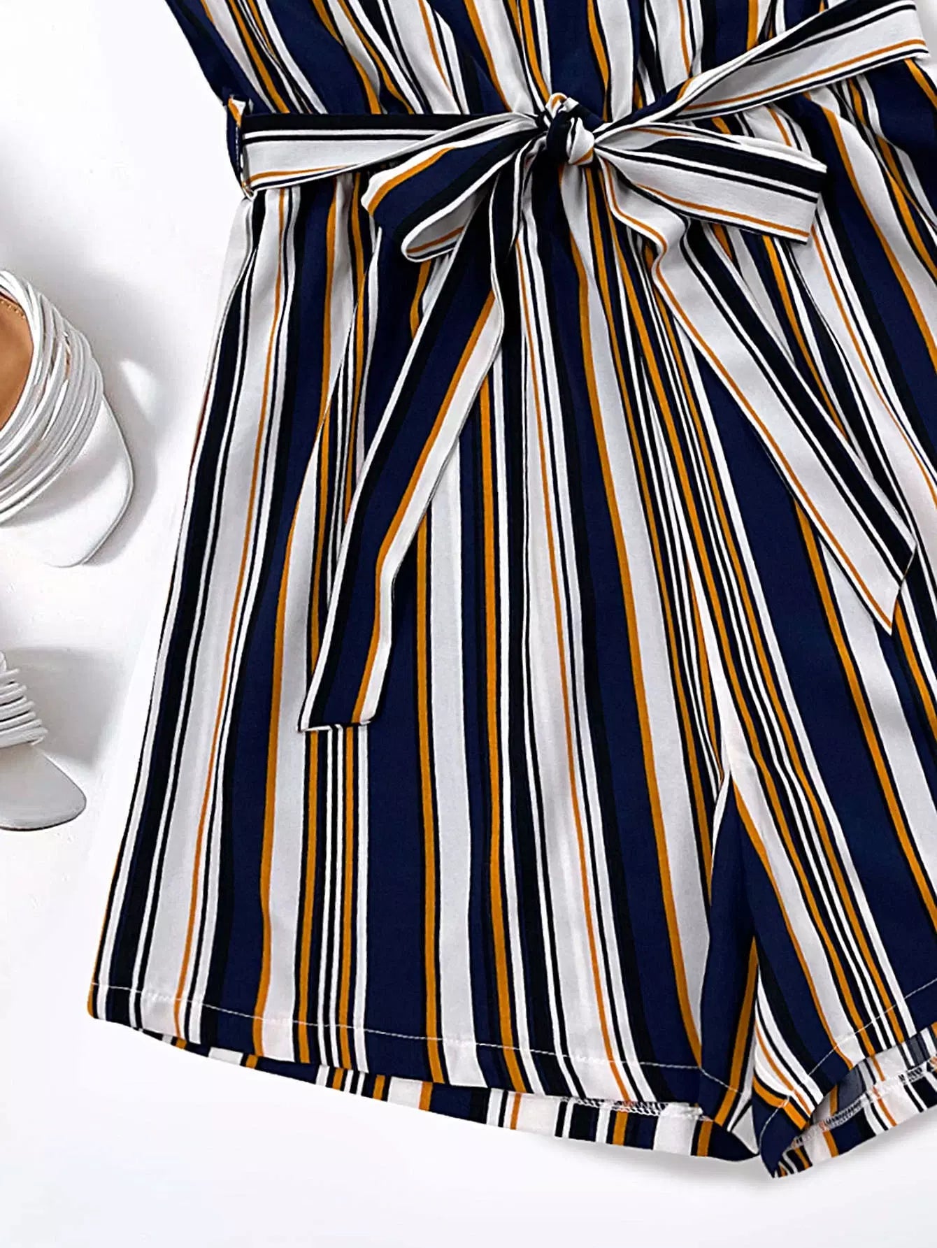 رومبر قصير مخطط بربطة عنق ذاتي مخطط زائد
