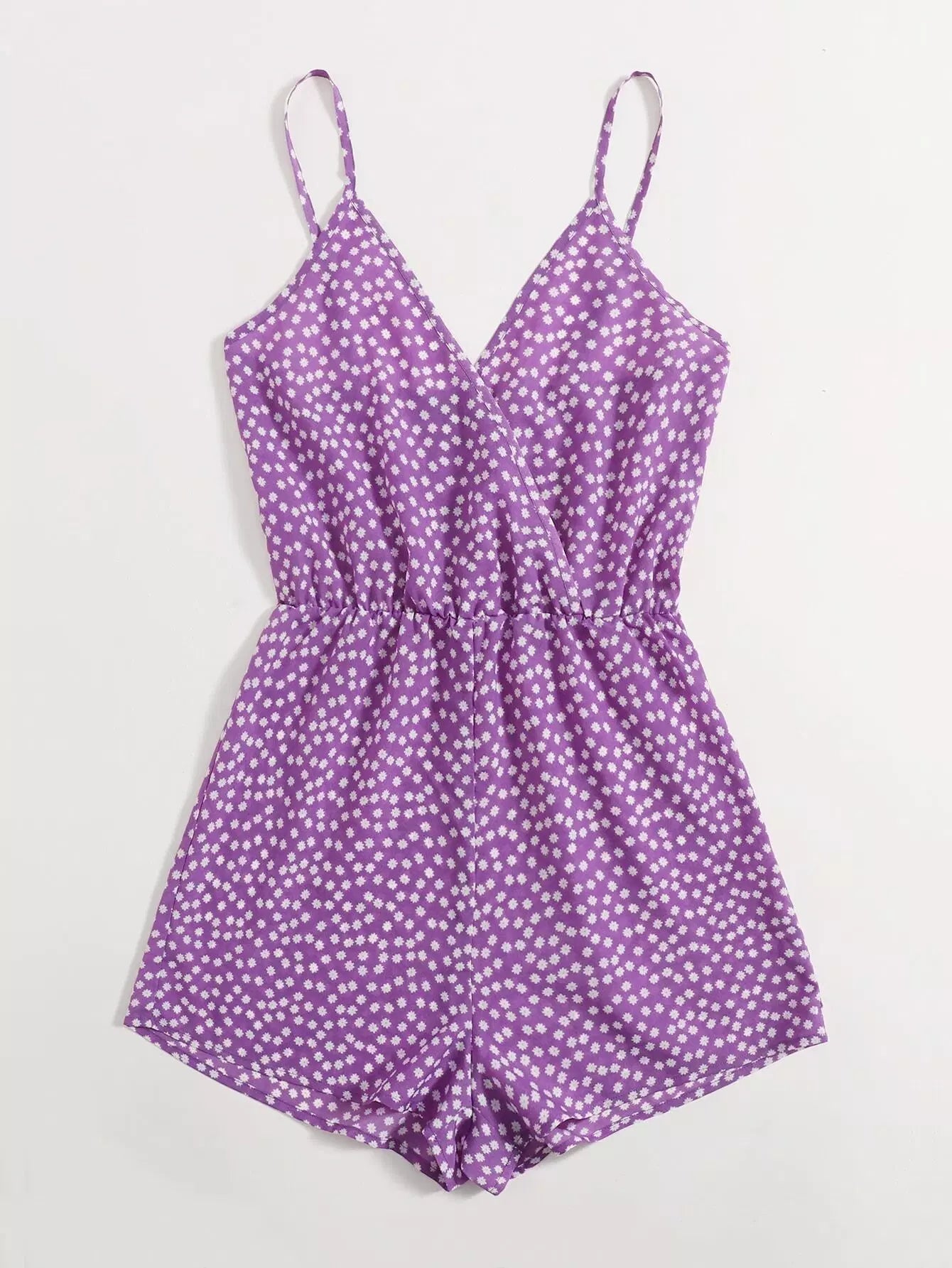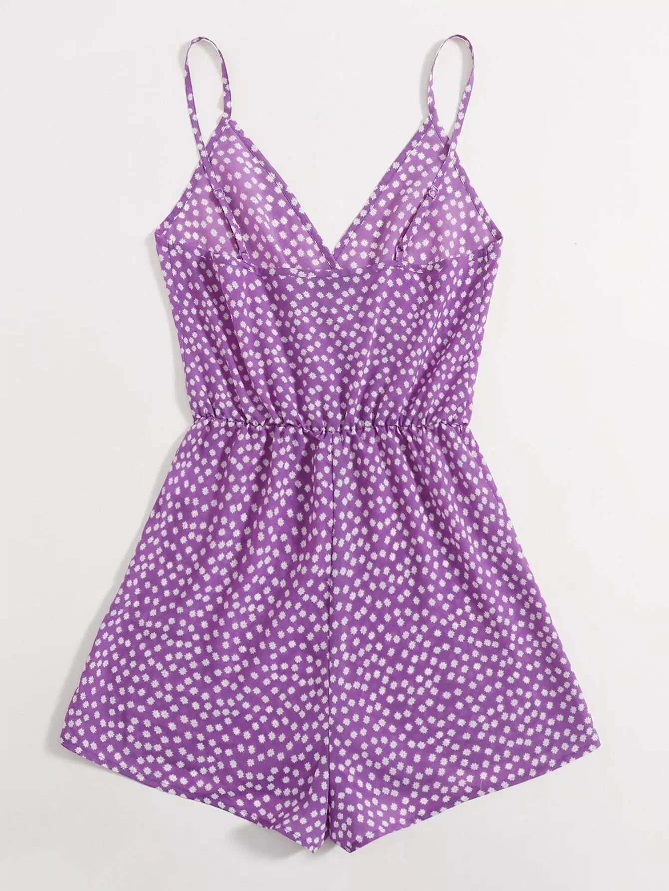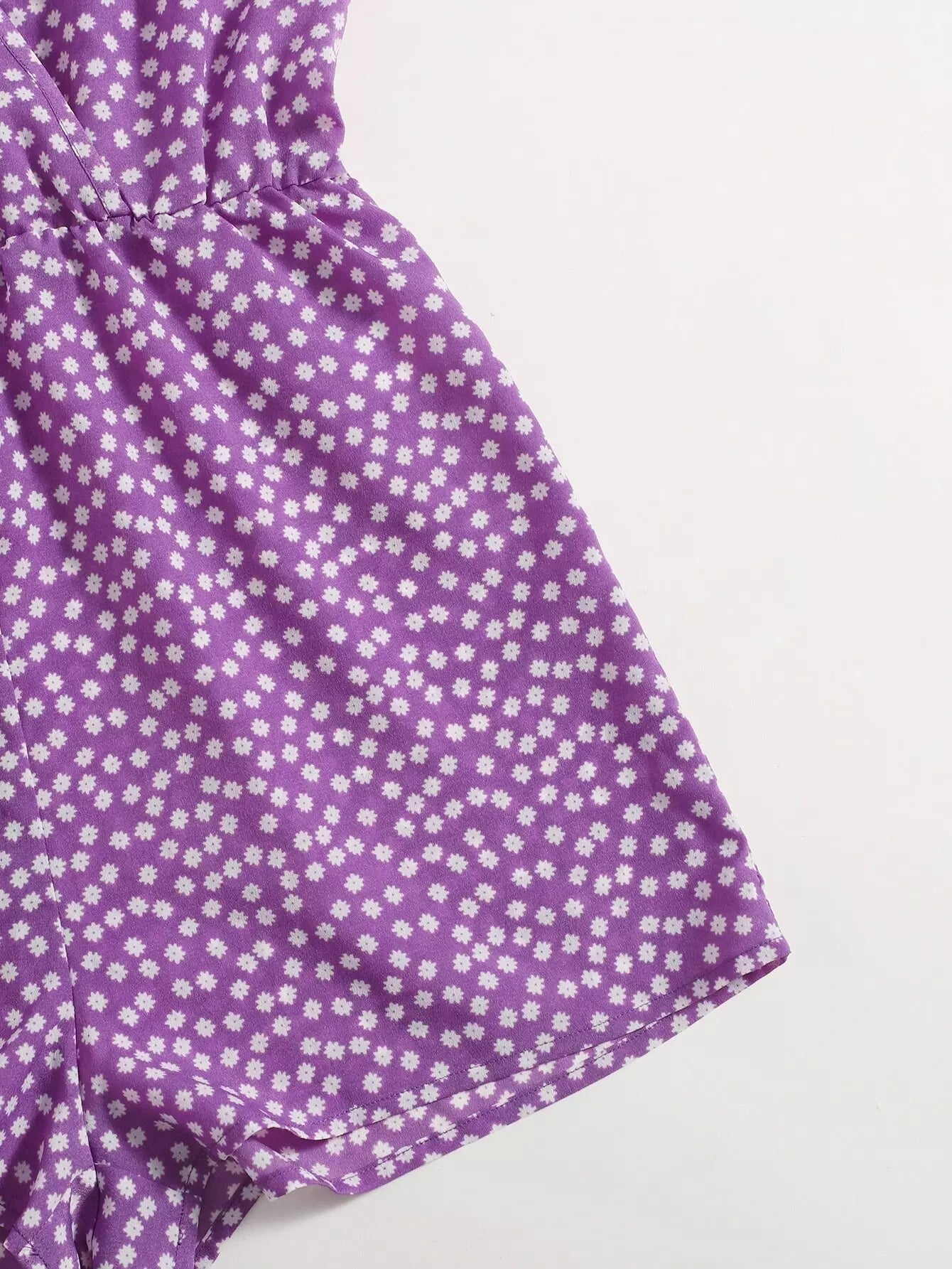 رومبر قصير برقبة زائدة برقبة ديتسي مزين بالزهور