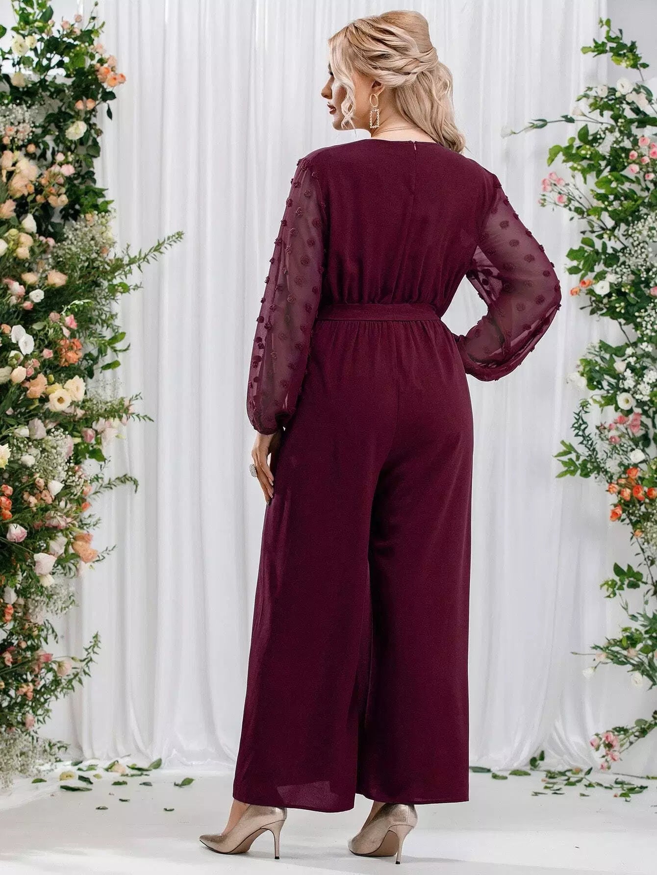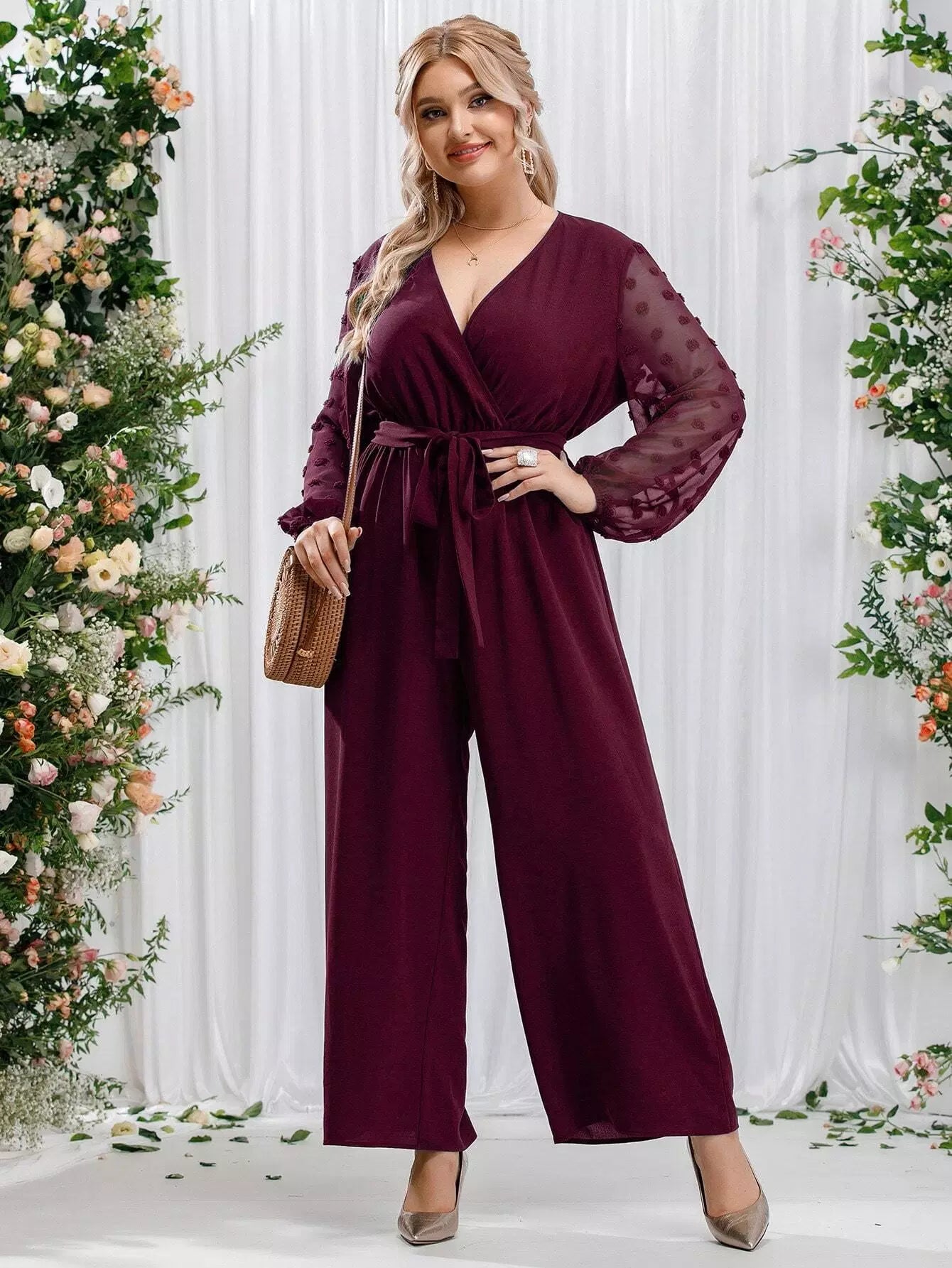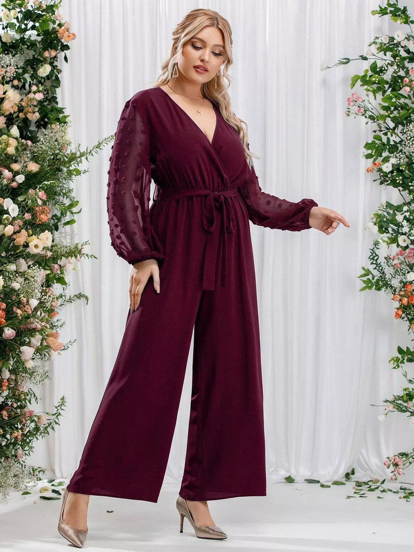 بالإضافة إلى بذلة واسعة الساق بأكمام فانوس سويسرية بدون حزام