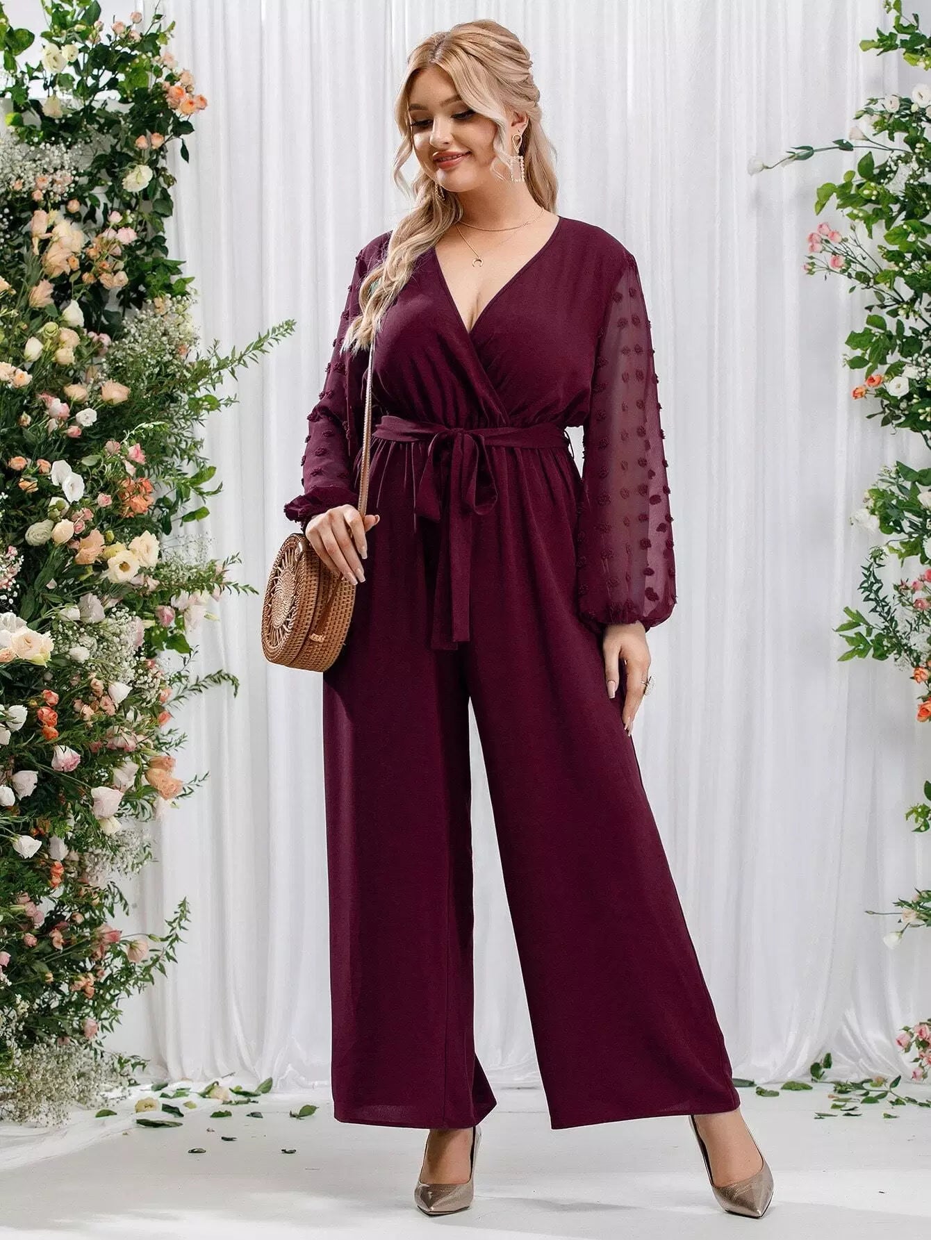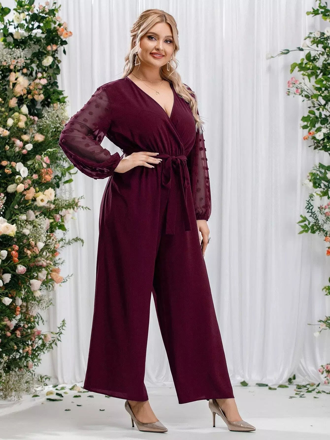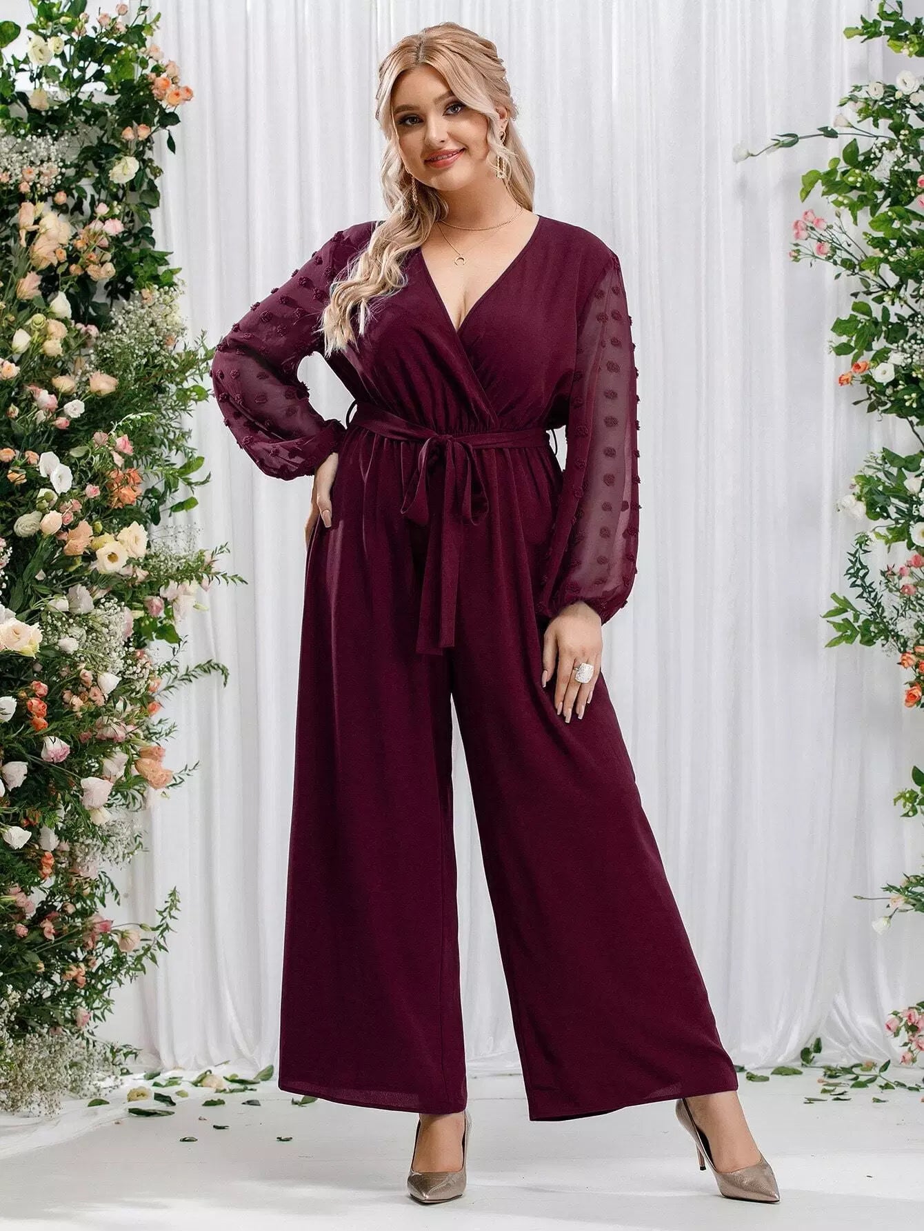 بالإضافة إلى بذلة واسعة الساق بأكمام فانوس سويسرية بدون حزام