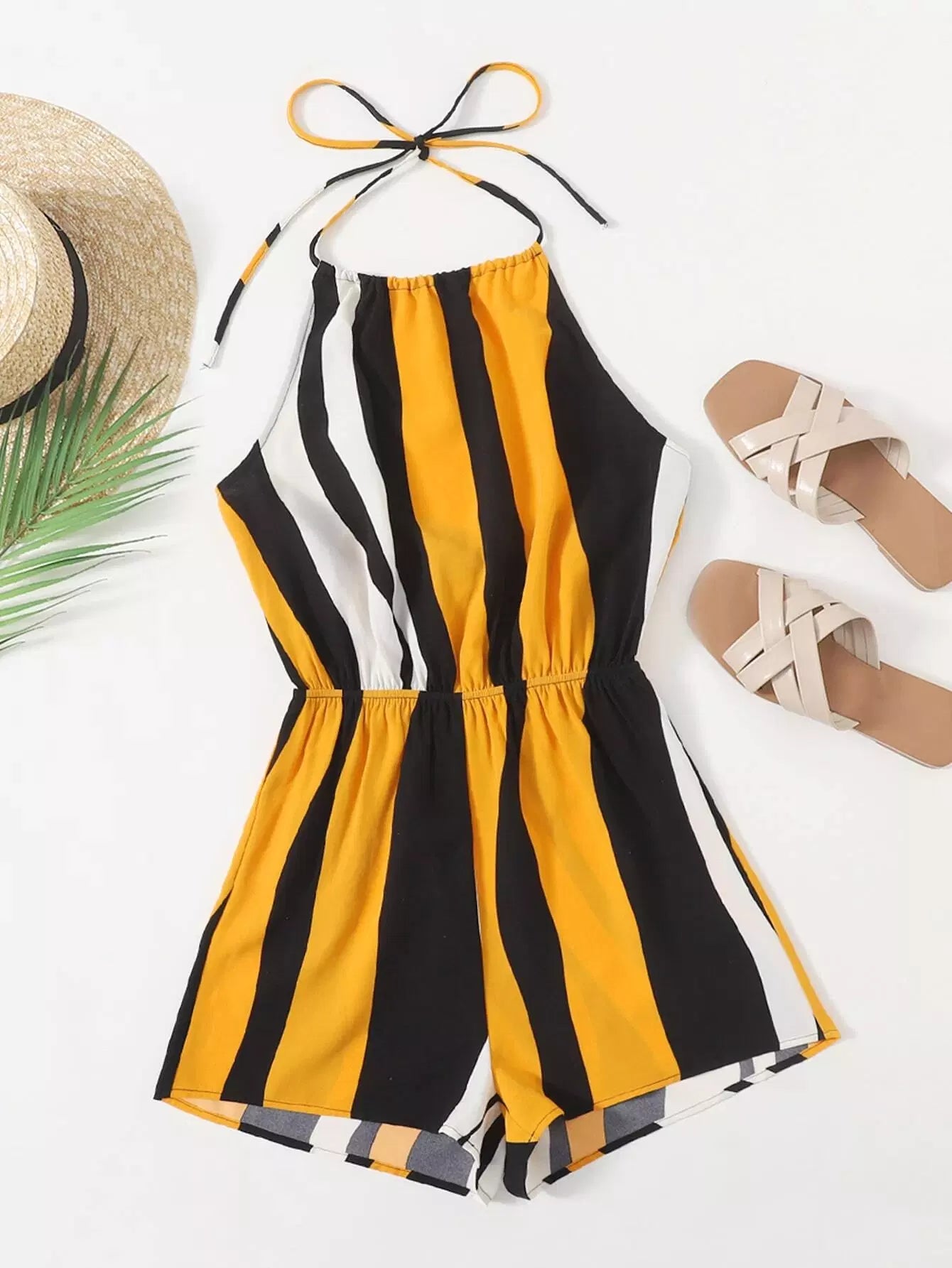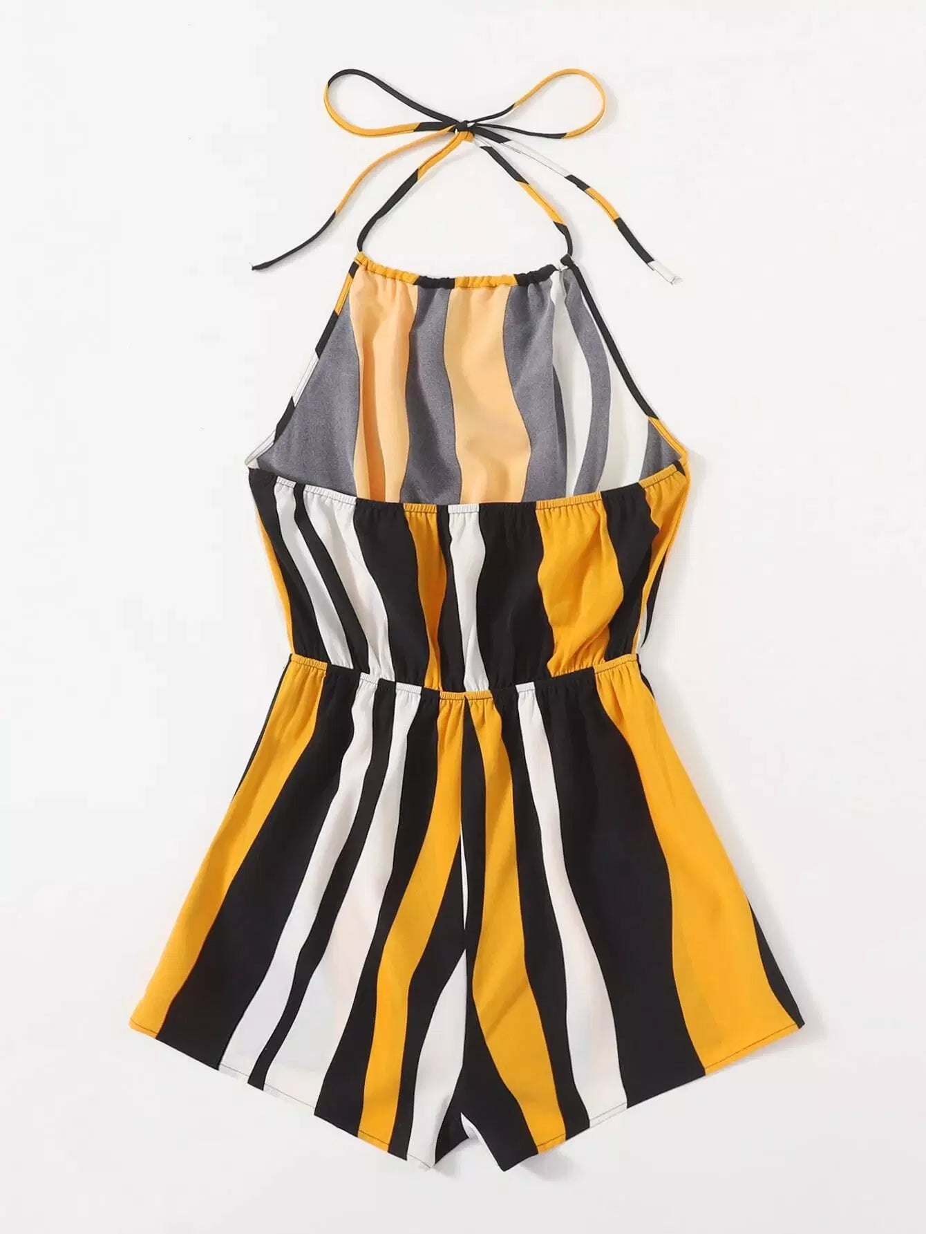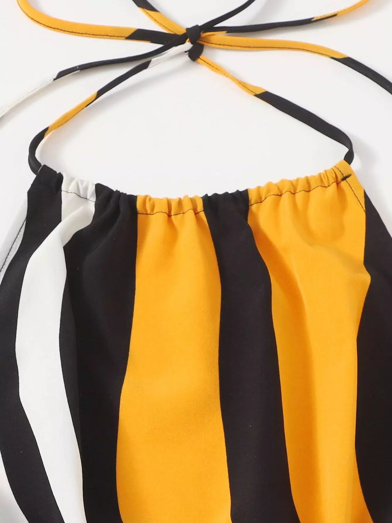 رومبير مخطط بربطة عنق مخططة برباط من الخلف زائد