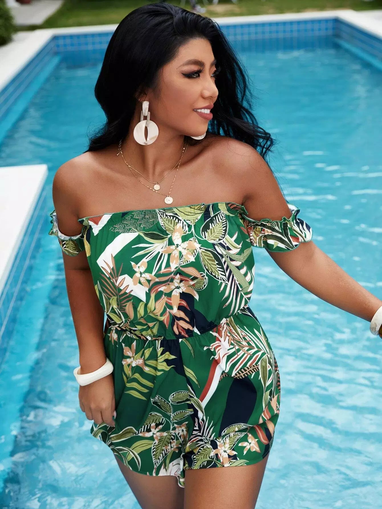 رومبر بطبعة استوائية بدون أكتاف زائد
