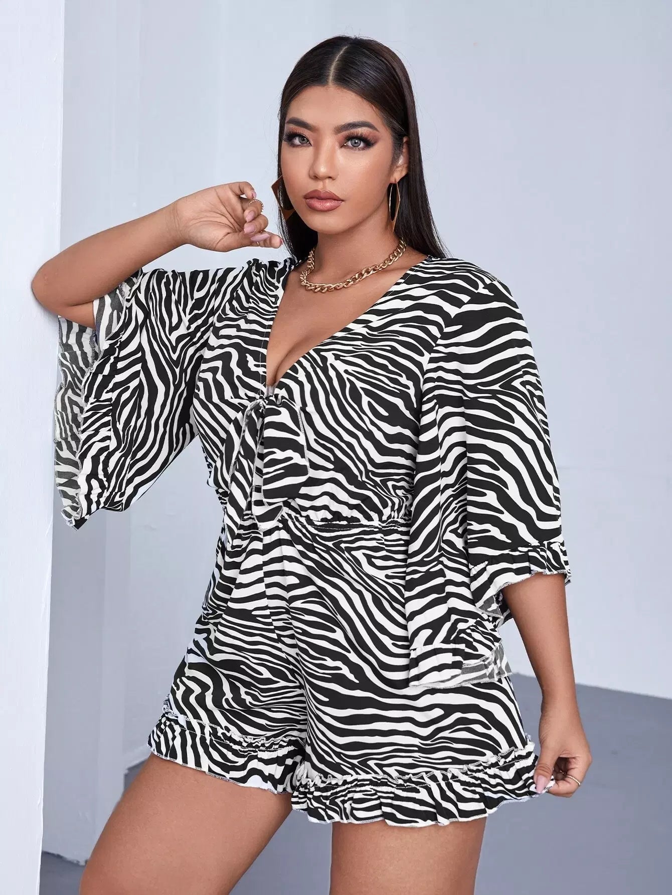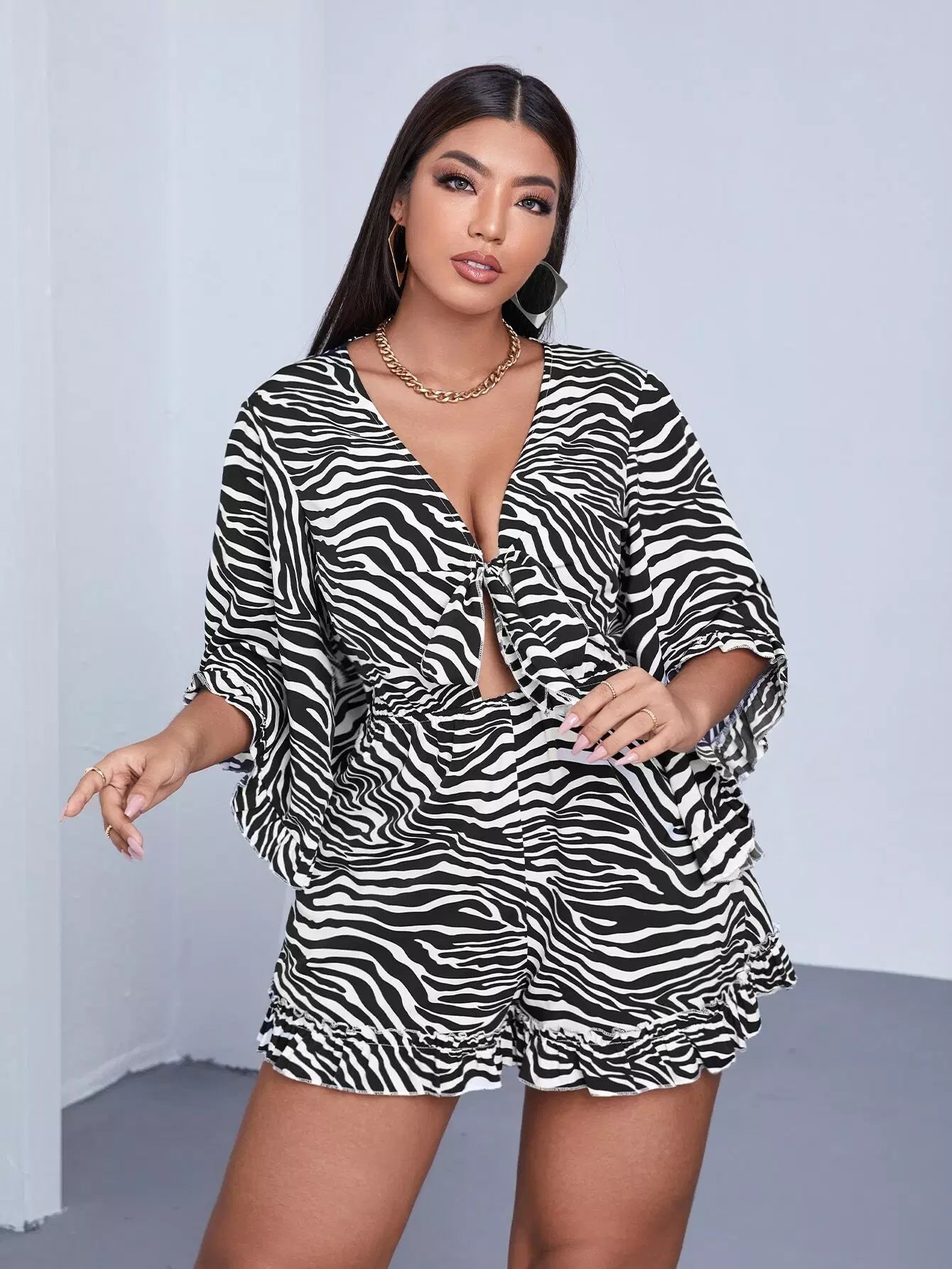 نحيف - مقاس كبير زيبرا شريط طباعة عقدة الجبهة كشكش تنحنح رومبير