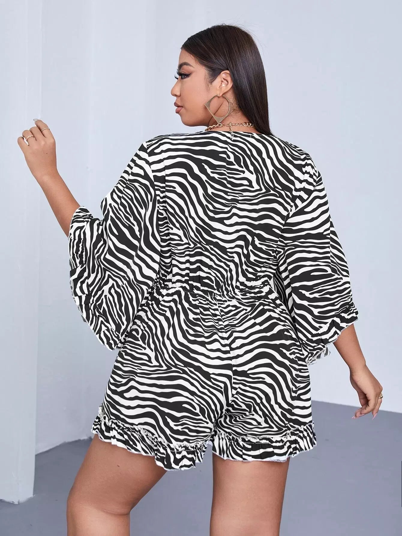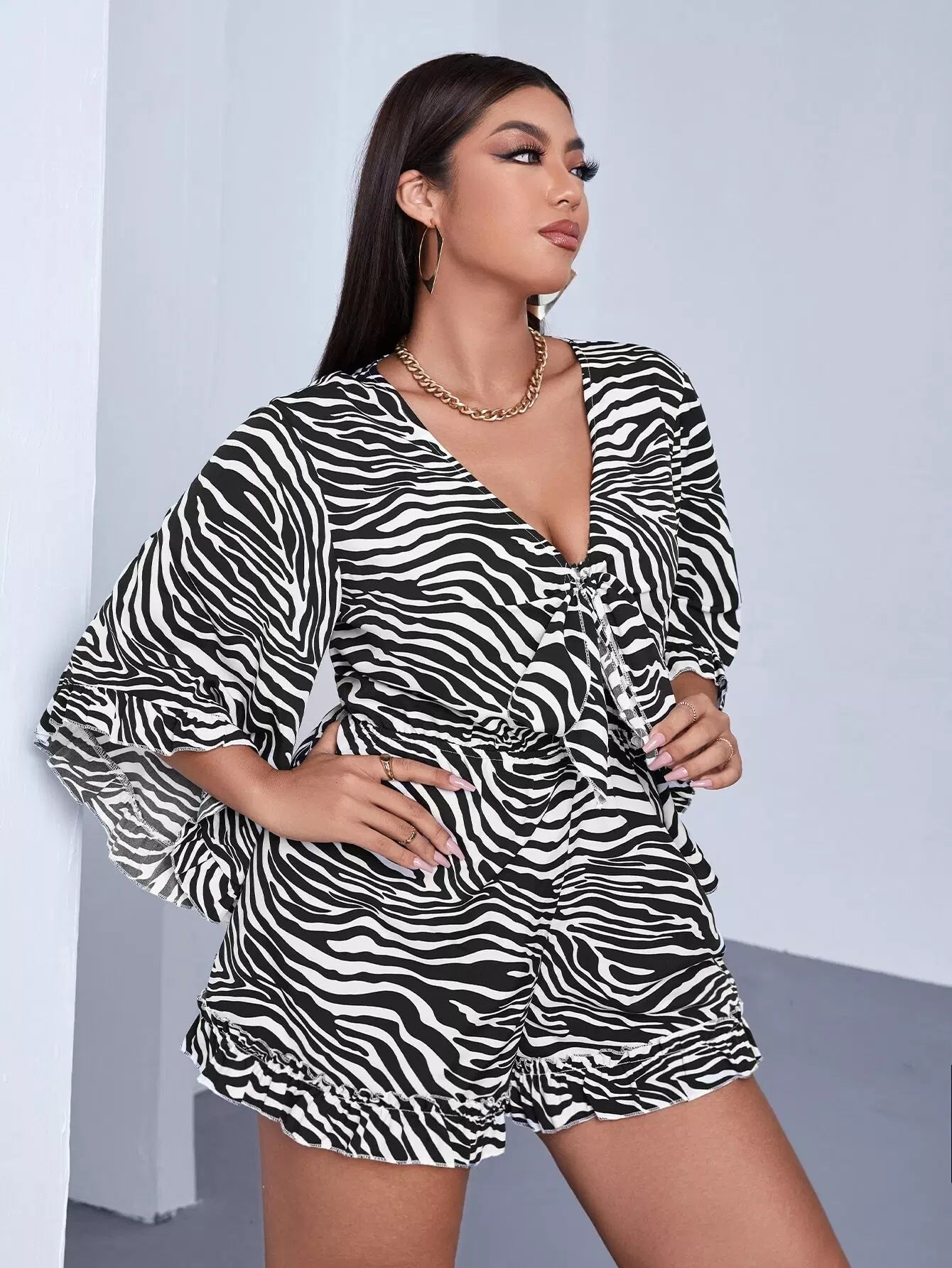 رومبر مزين بنقشة زيبرا مخطط بخط زيبرا زائد بحاشية كشكش أمامية
