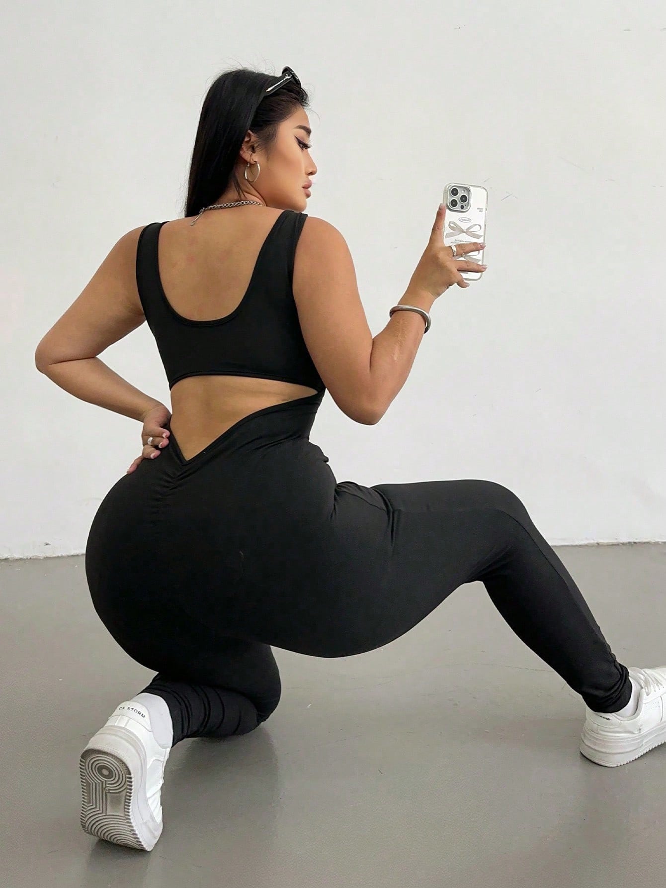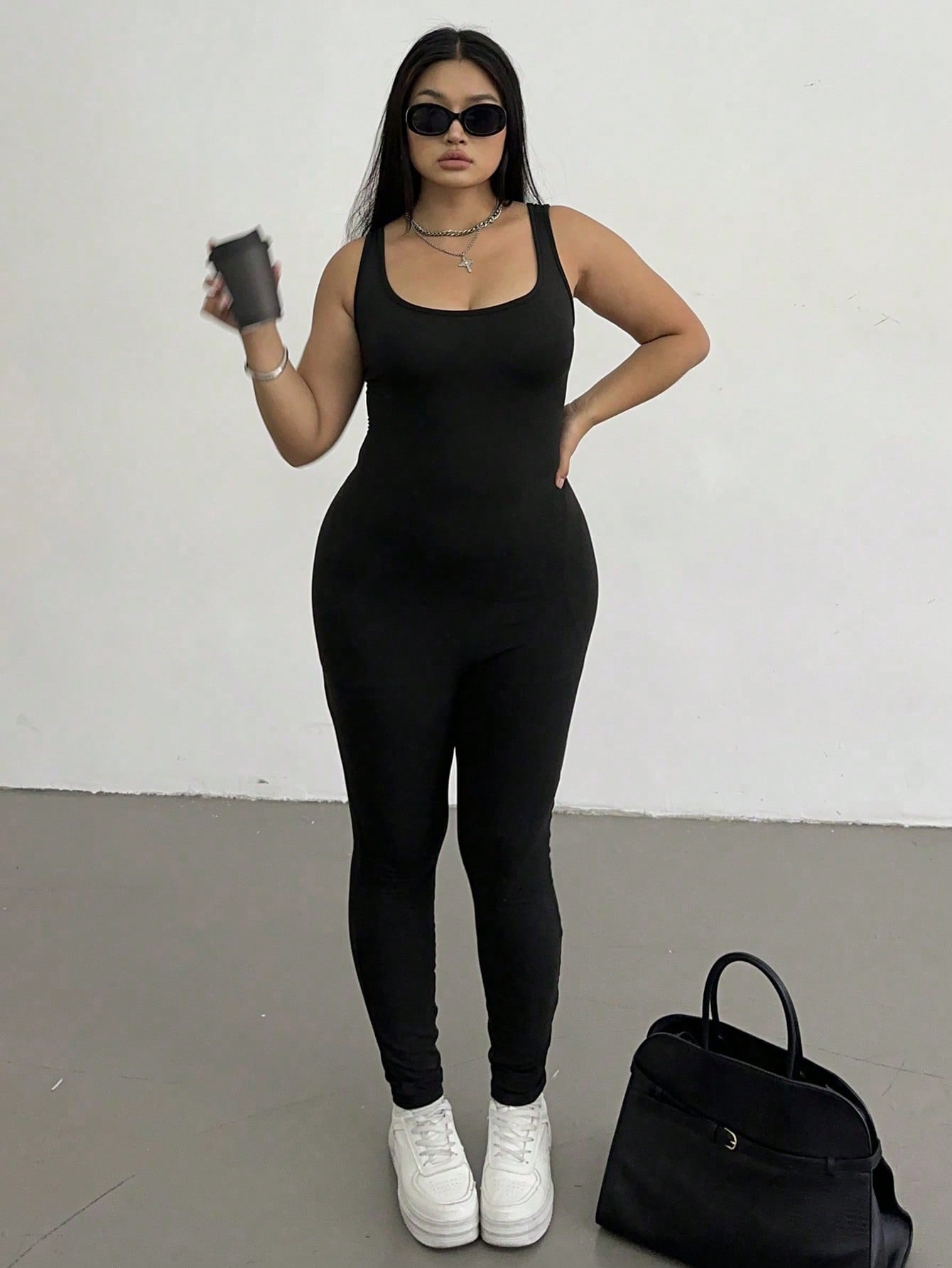 SHEIN PETITE Sexy Backless Camisole & Skinny Stretch Jumpsuit