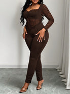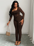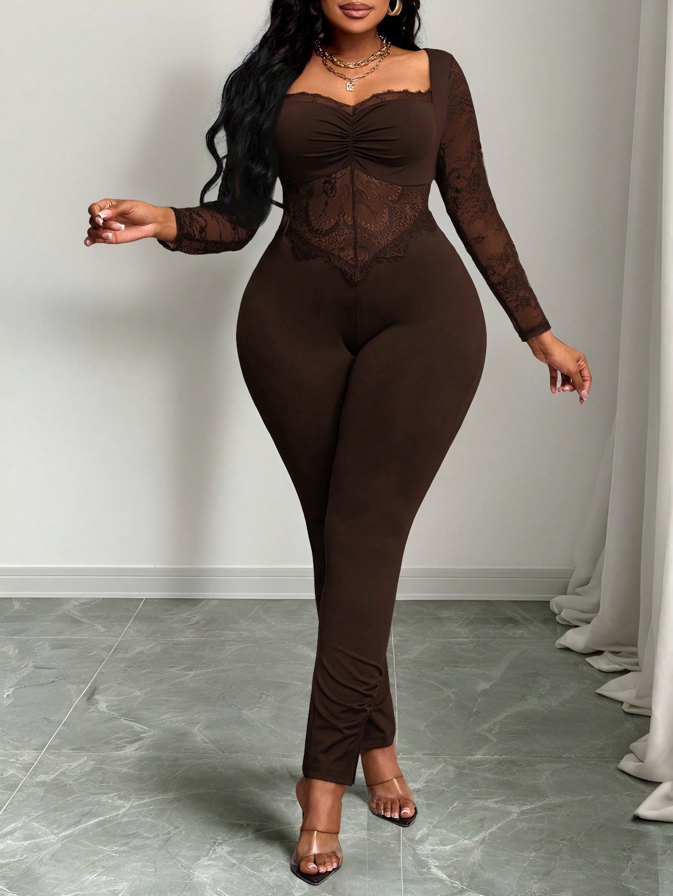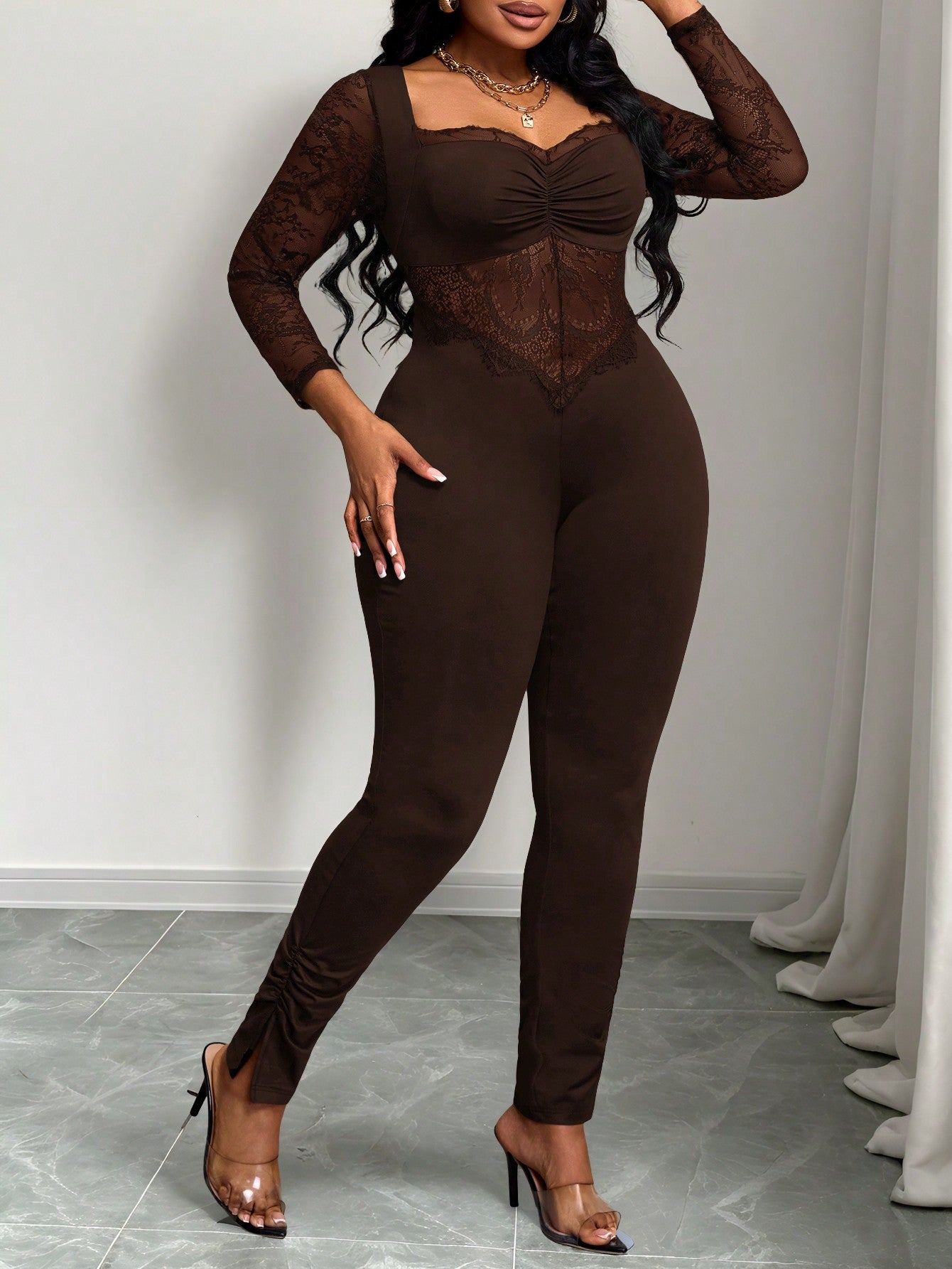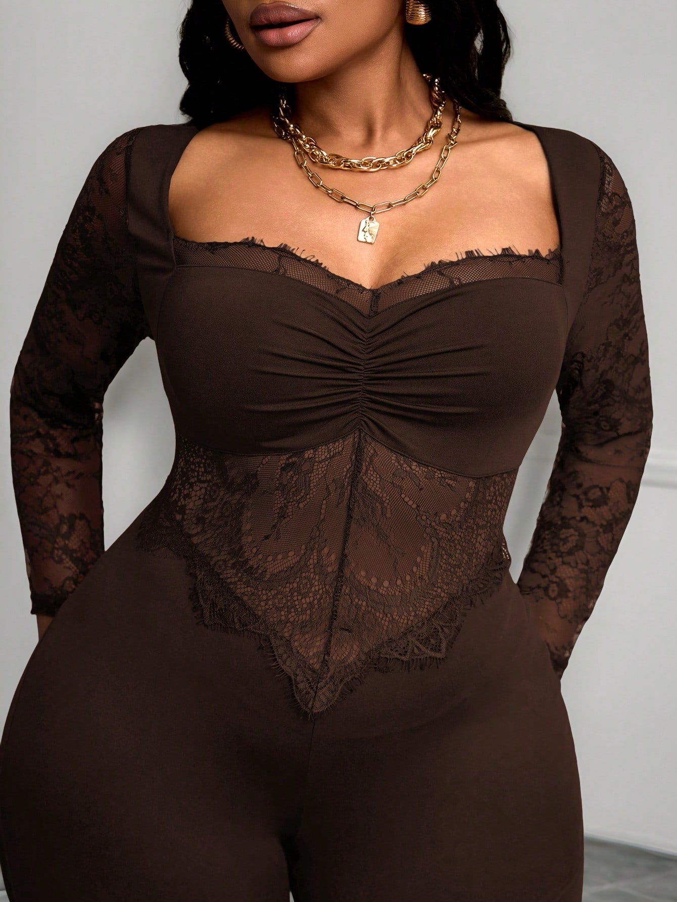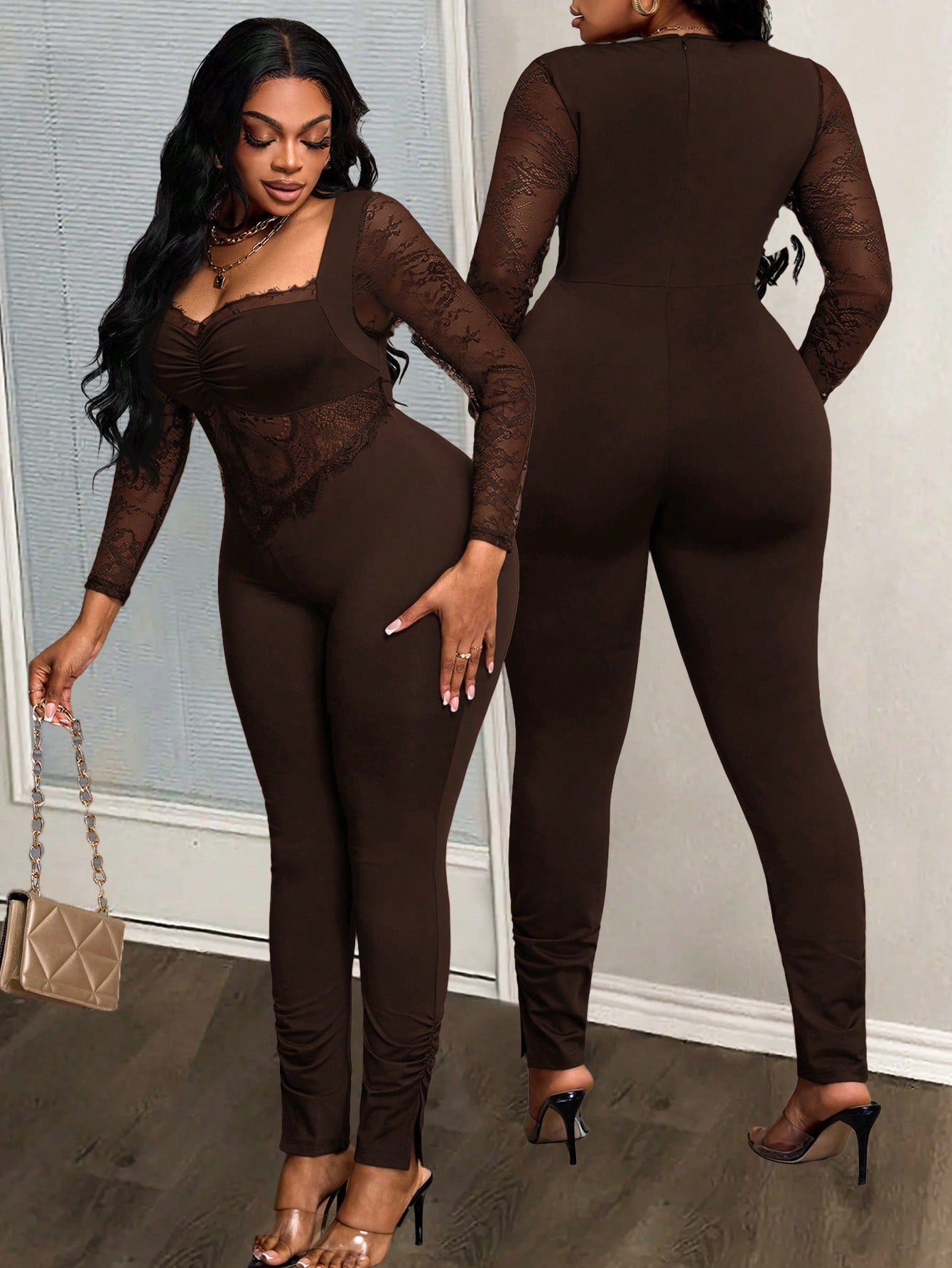Slaydiva Plus Size Women Sexy & Elegant Lace Sheer Patchwork One-Piece Jumpsuit