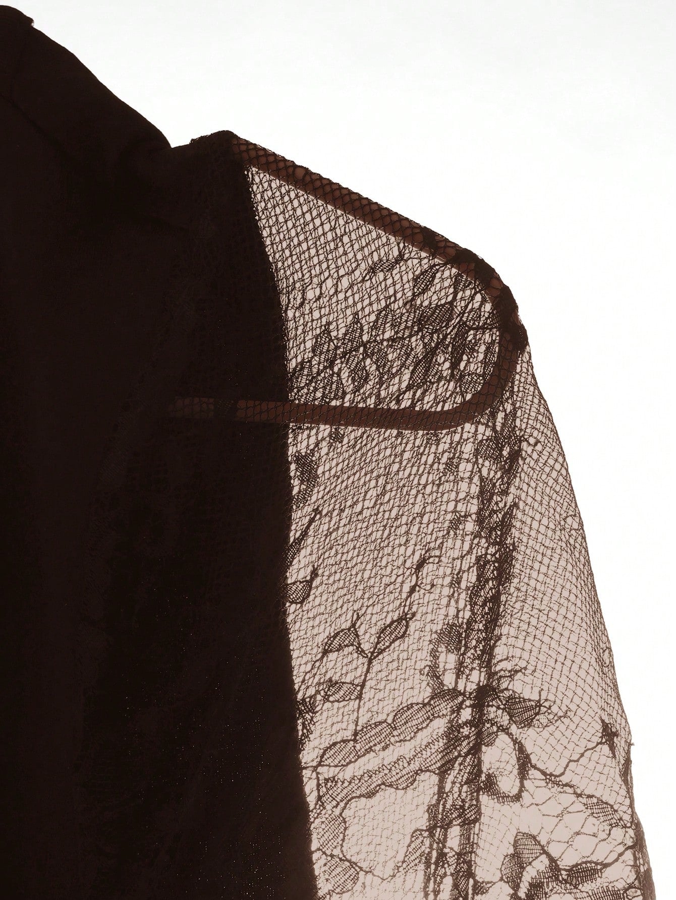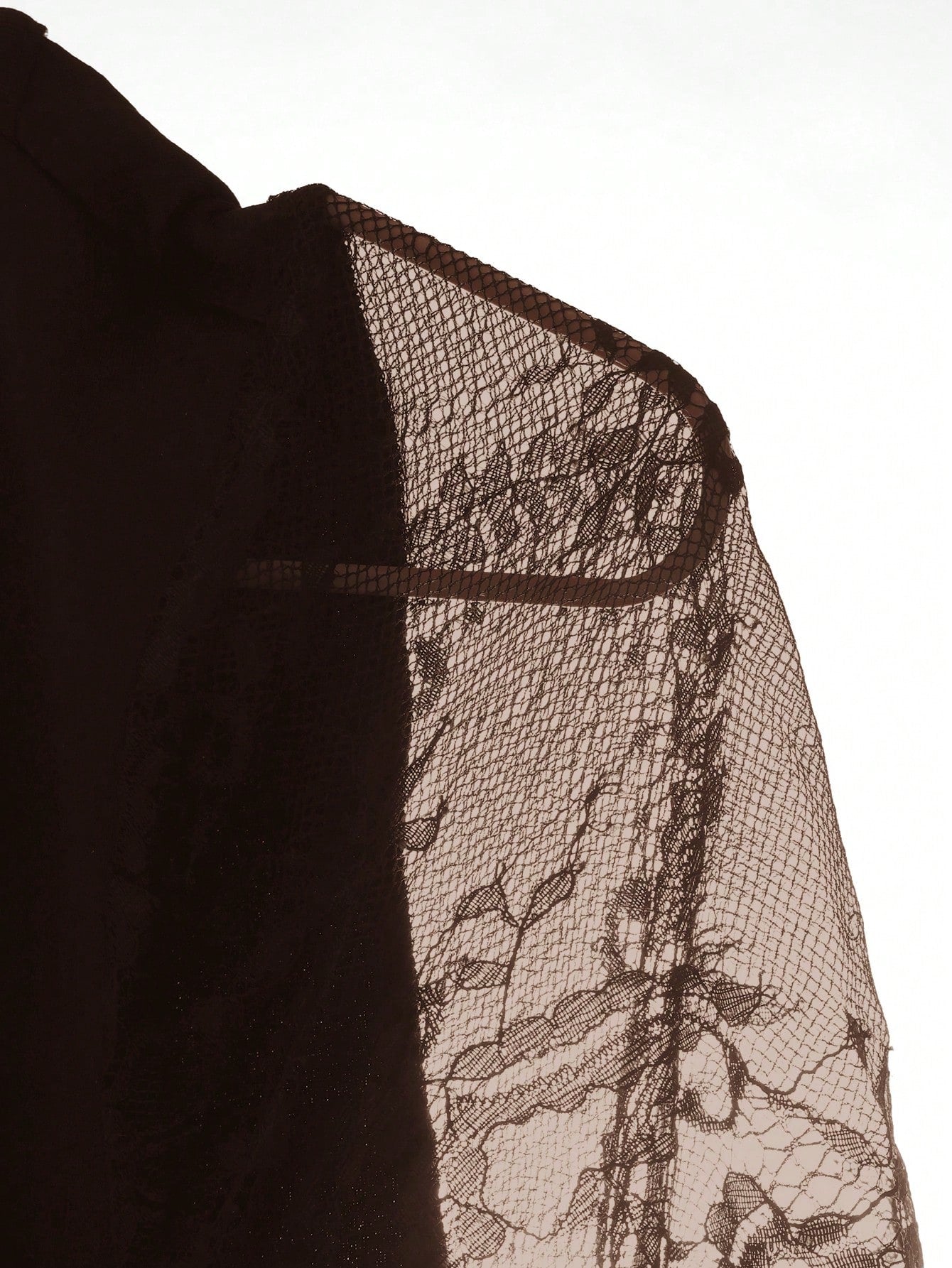 بدلة نسائية من Slaydiva بمقاسات كبيرة، مثيرة وأنيقة، من قطعة واحدة، مصنوعة من الدانتيل الشفاف والمرقعة