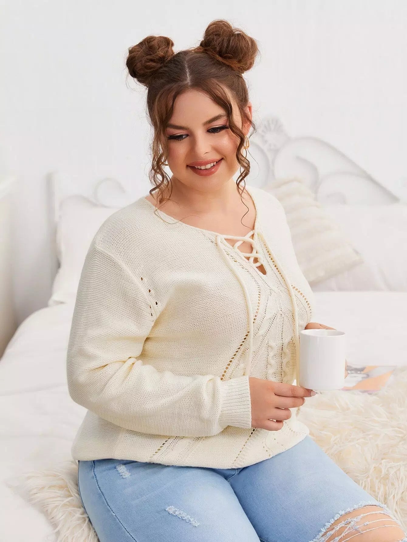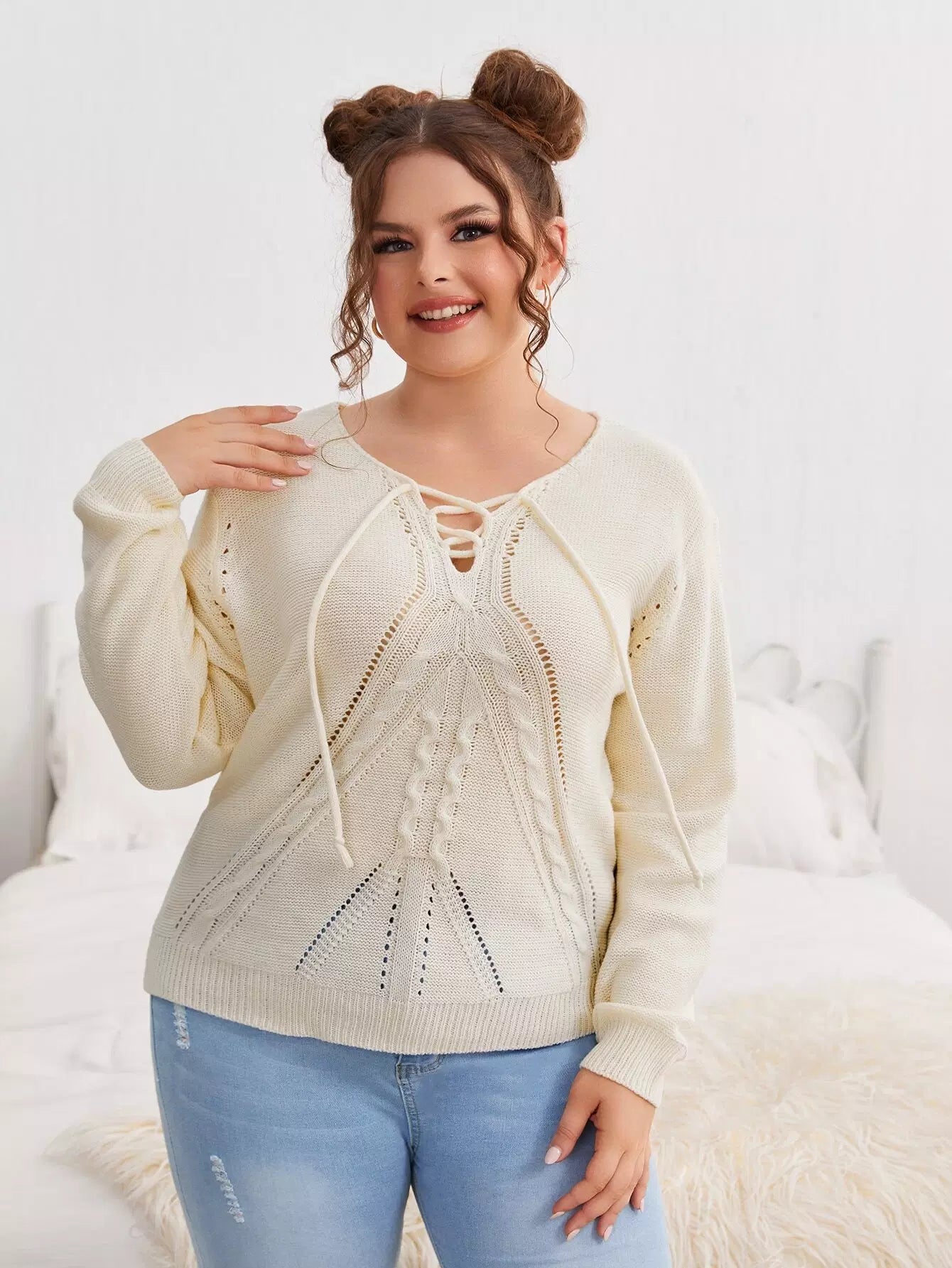 سترة بلس متماسكة برباط أمامي محبوكة بكابل زائد