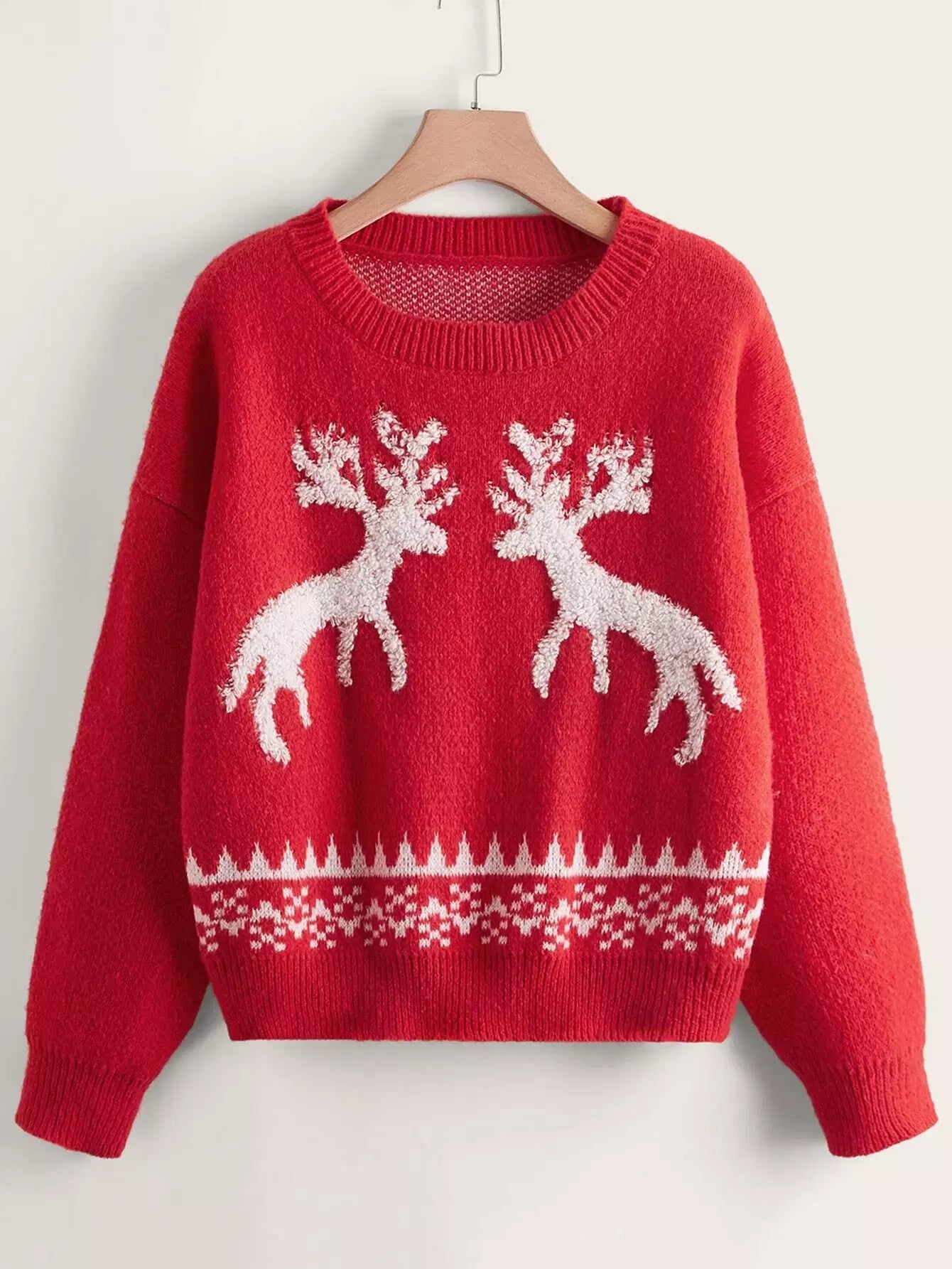 كنزة منسدلة الكتفين بنقشة الأيائل والسترة المنسدلة بنقشة جيو