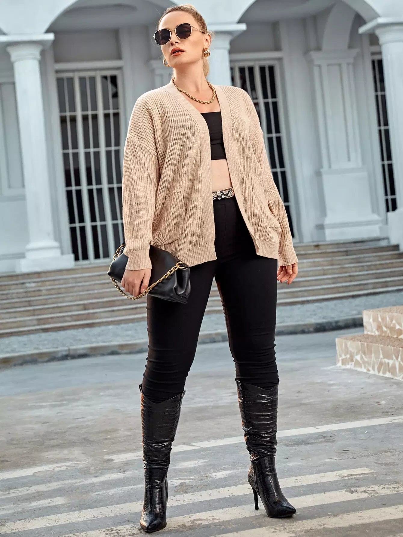 كارديجان منسدل الكتفين بجيب أمامي زائد