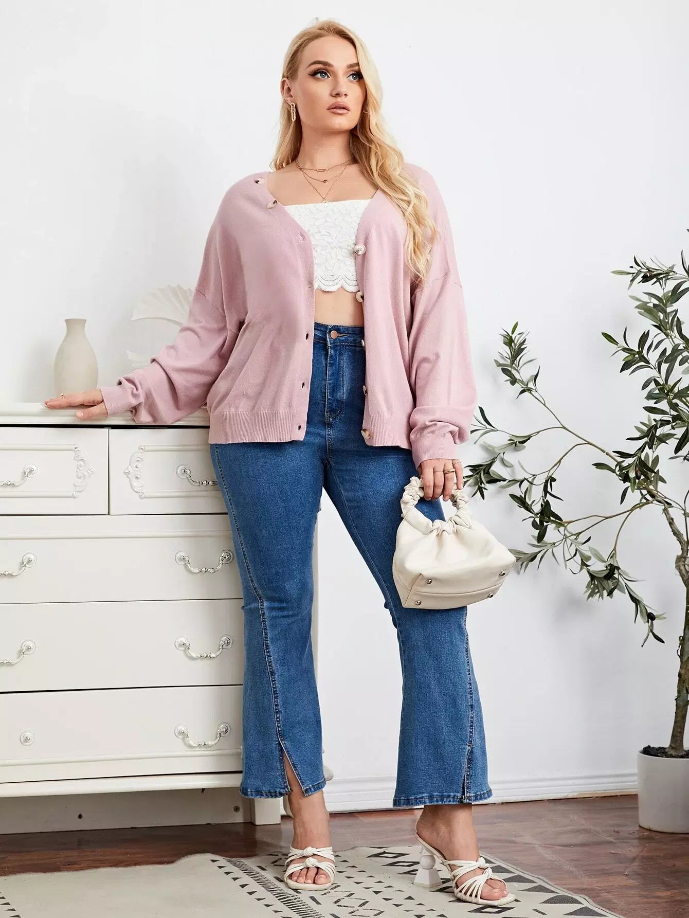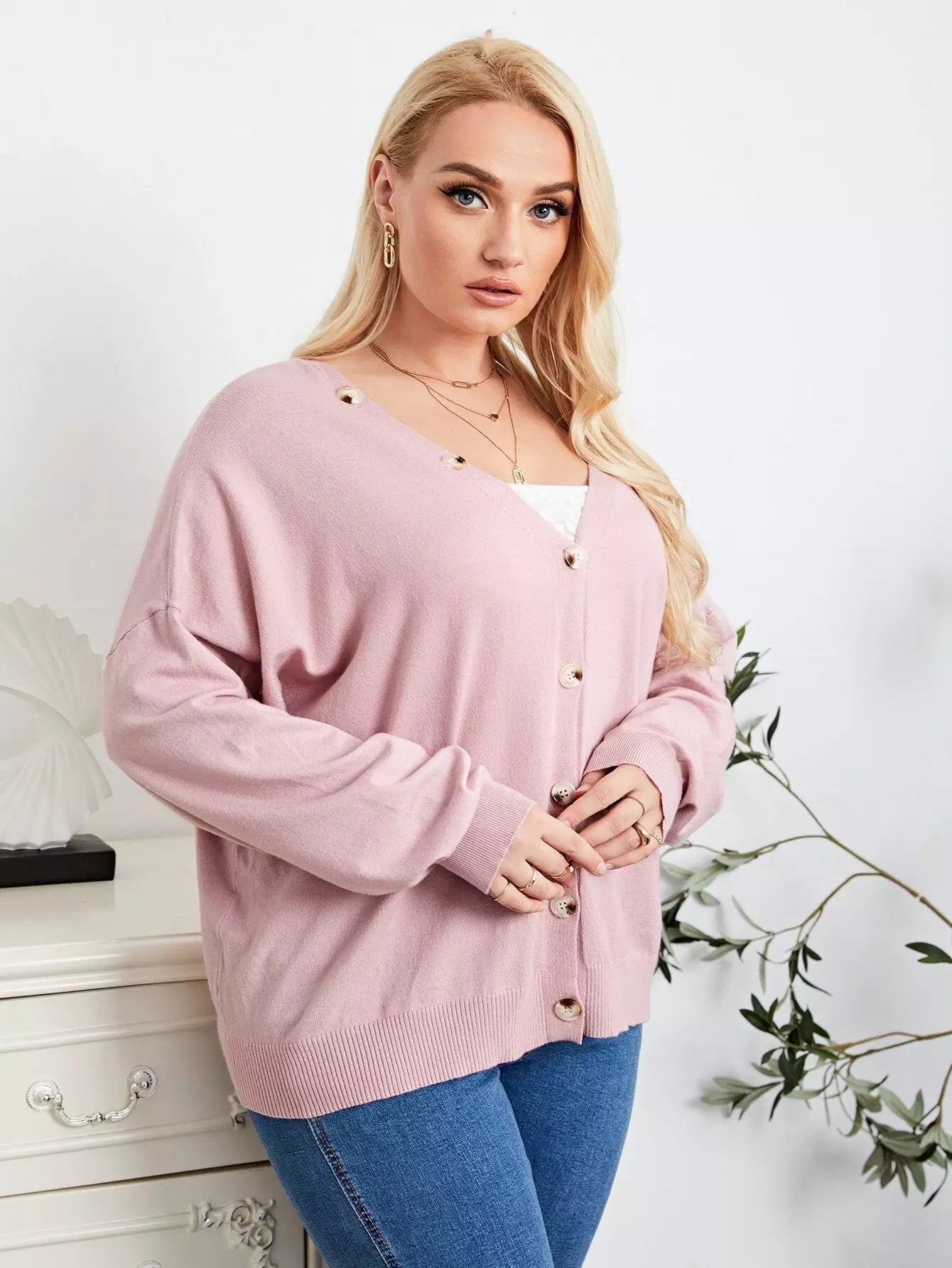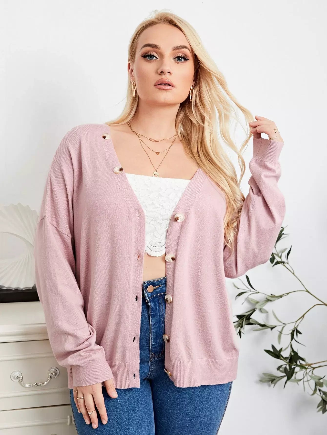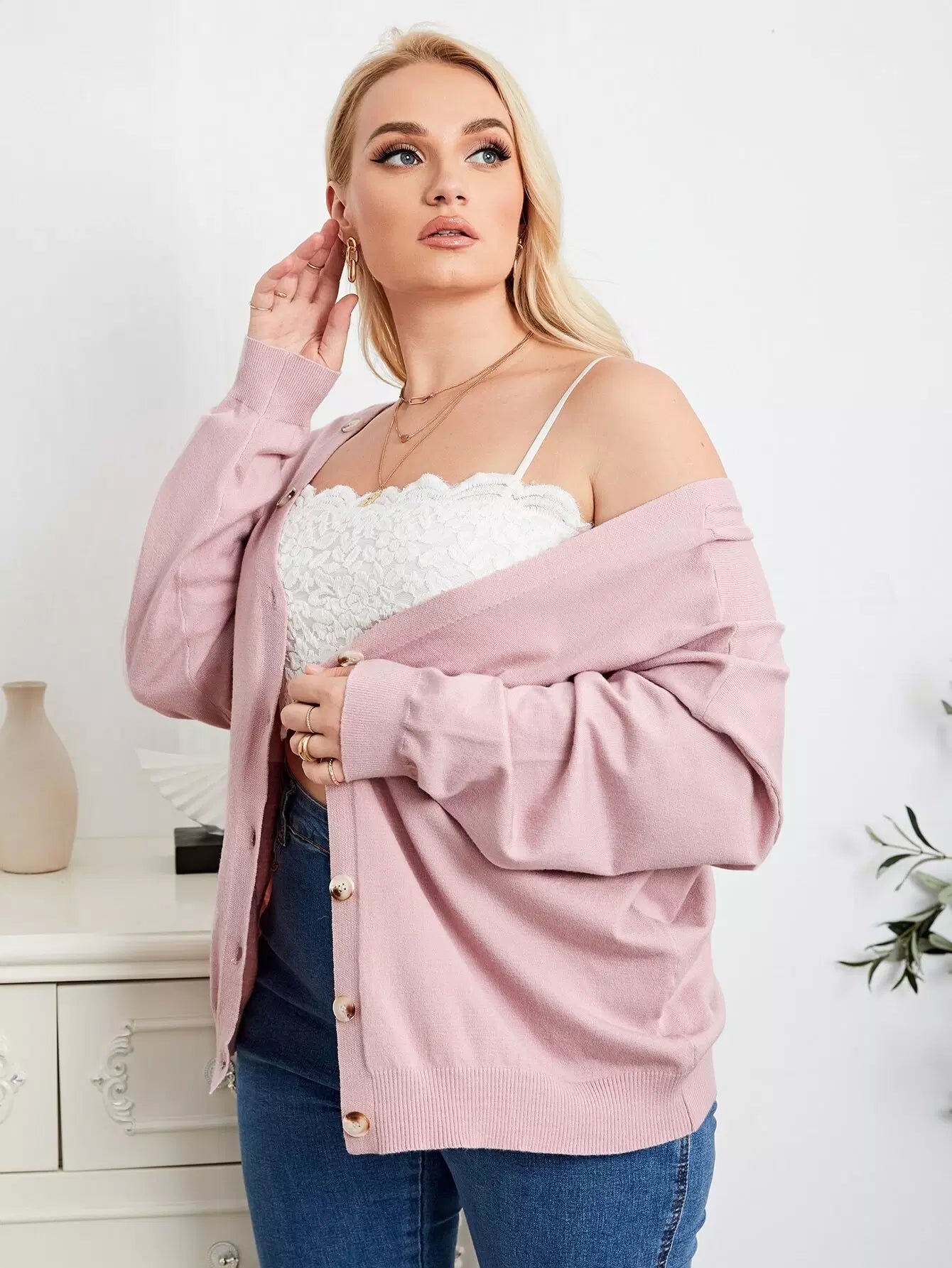 كارديغان سادة بأزرار أمامية منسدلة الكتفين بأزرار سادة