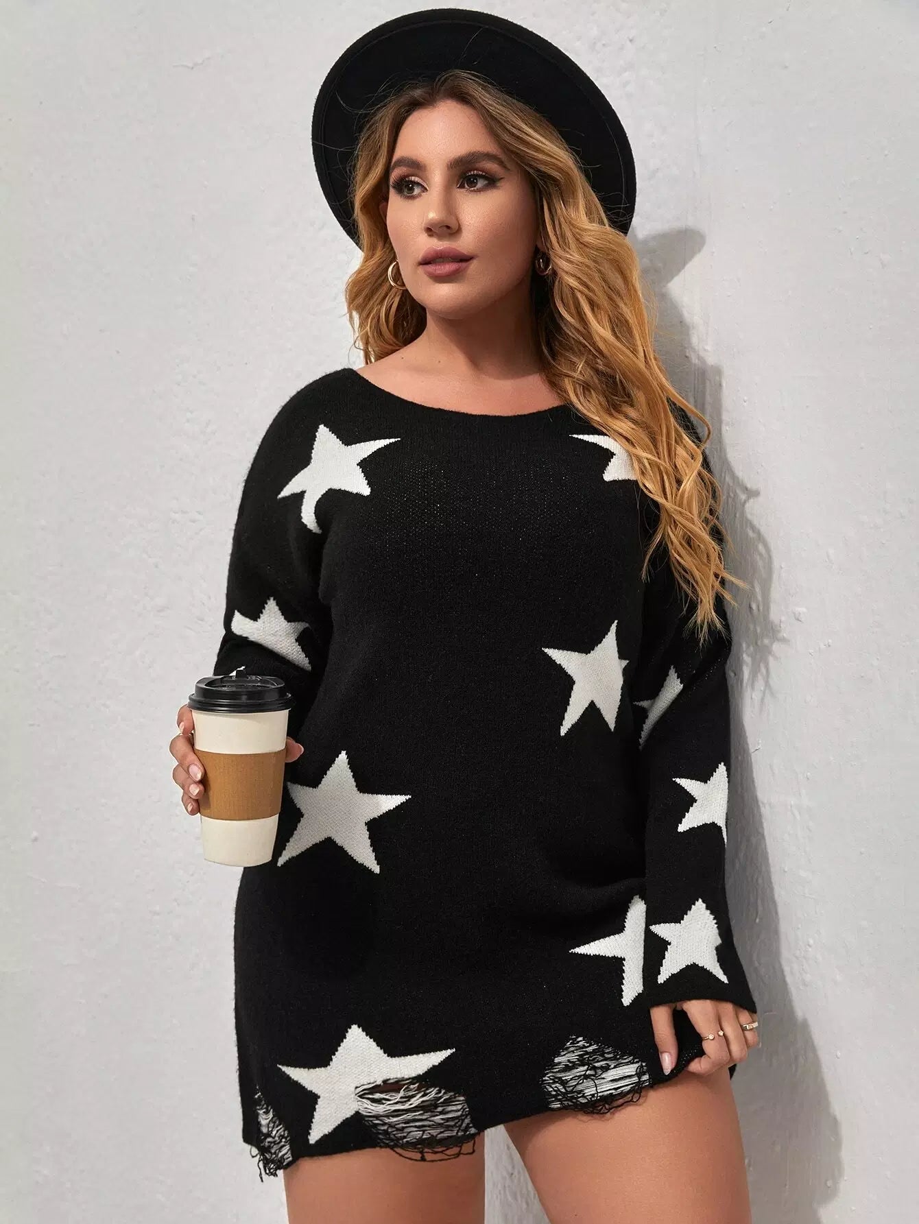فستان ممزق منسدل الأكتاف بنقشة نجمة زائد سترة منسدلة الأكتاف بنقشة نجمة زائد
