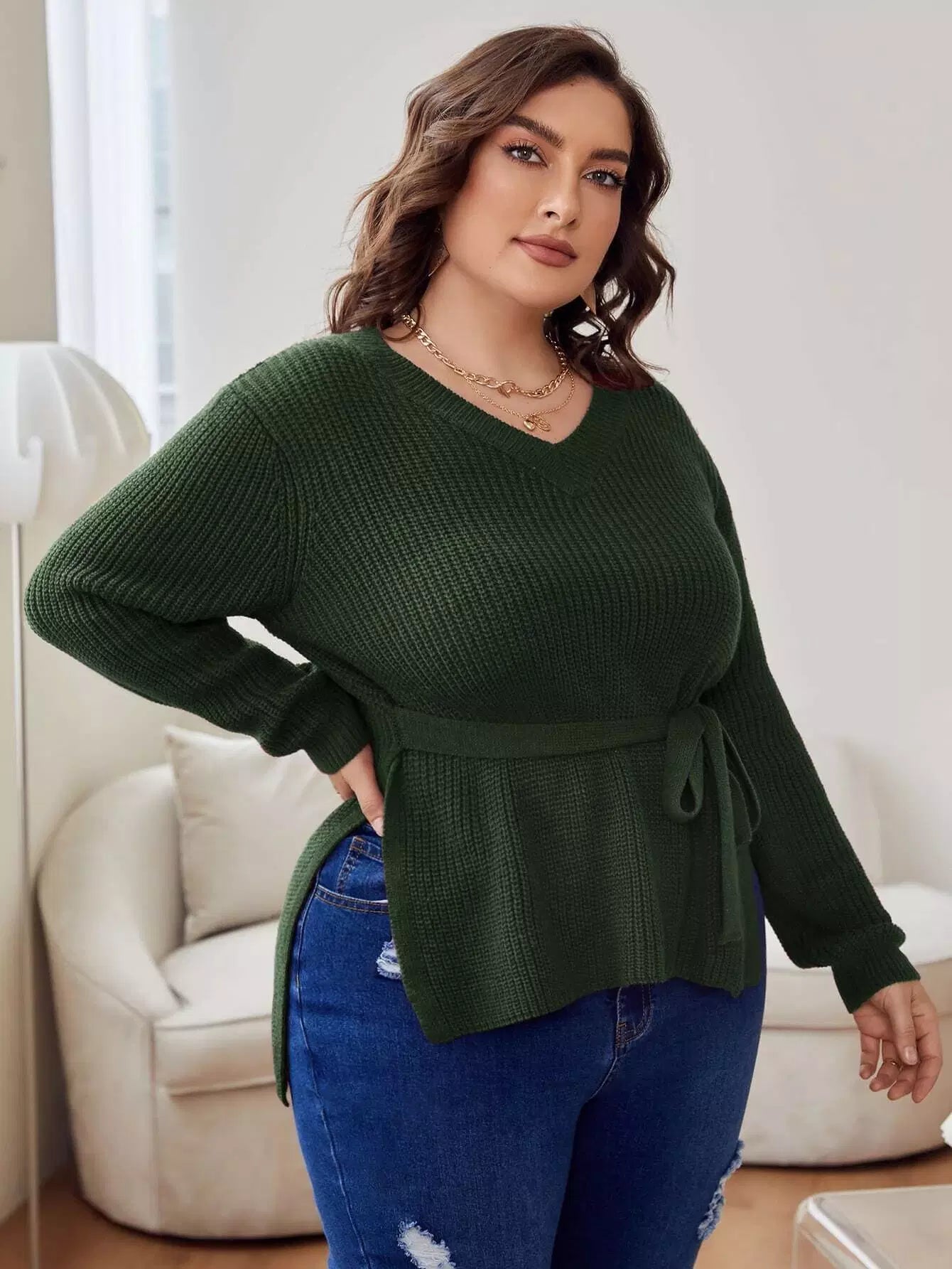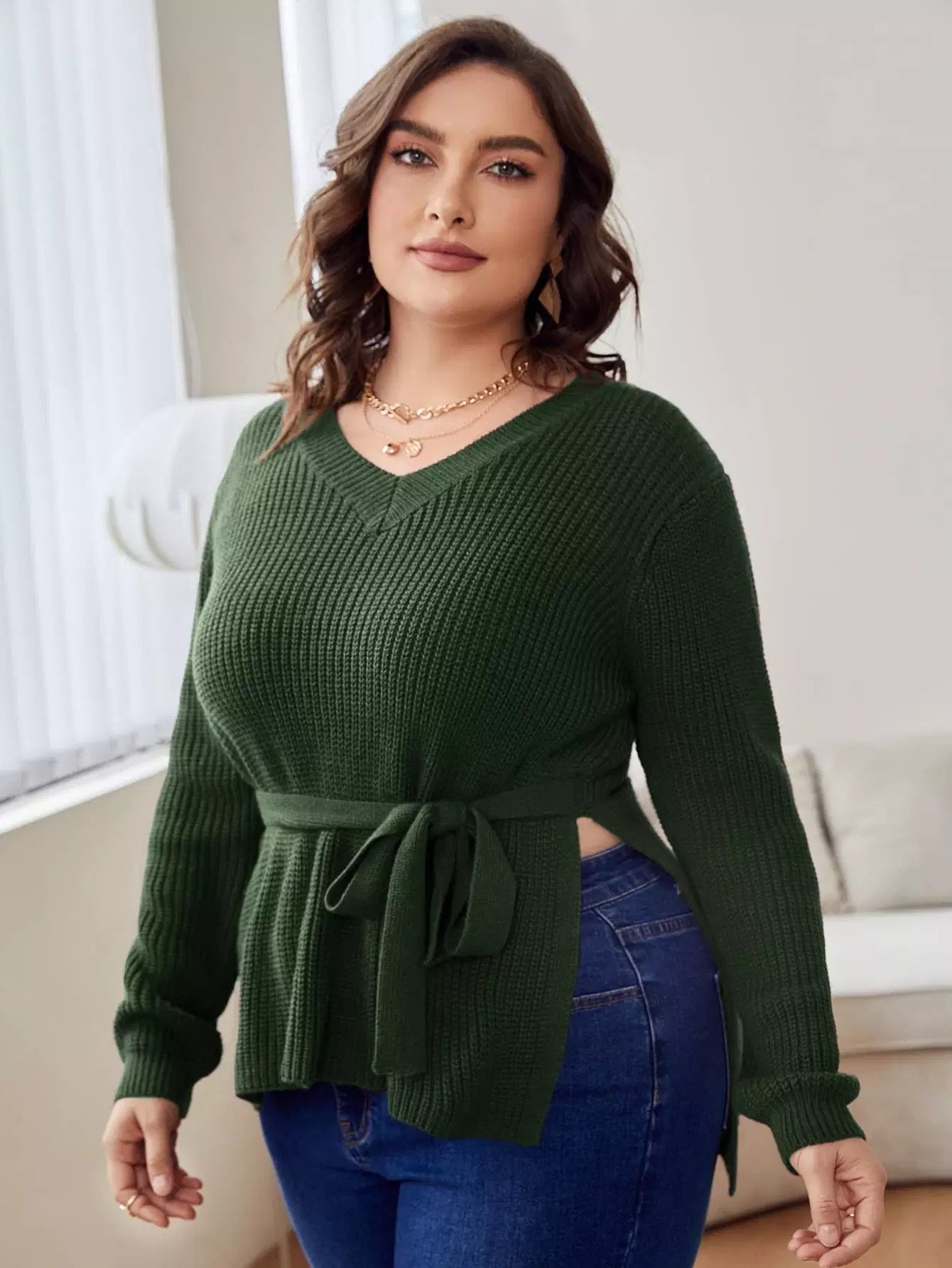 سترة برقبة أمامية منقسمة بربطة عنق أمامية