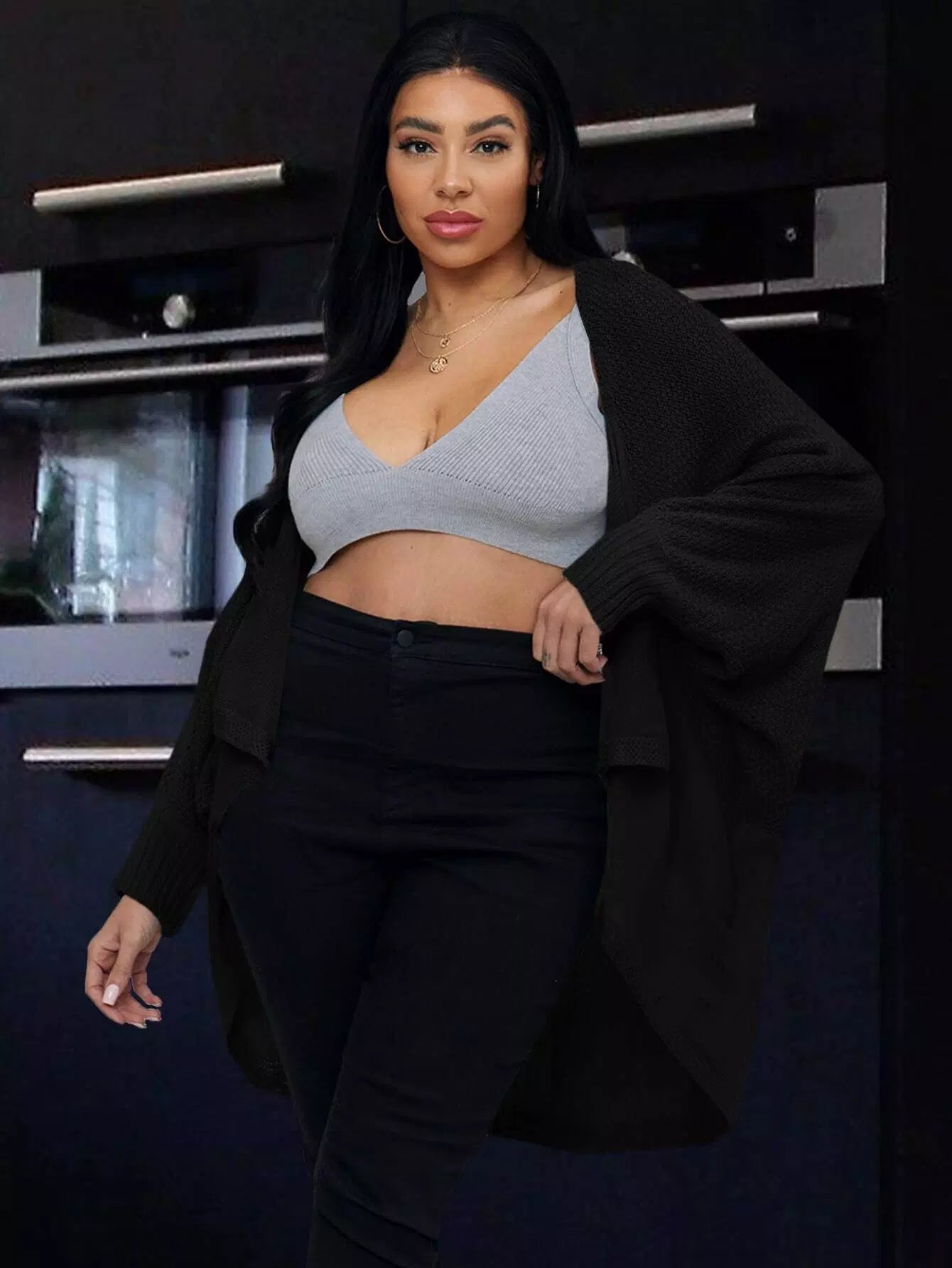 كارديغان مفتوح من الأمام بأكمام باتوينغ زائد