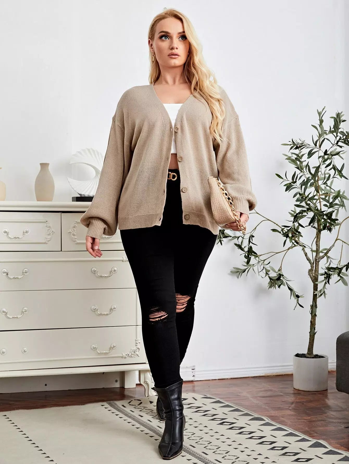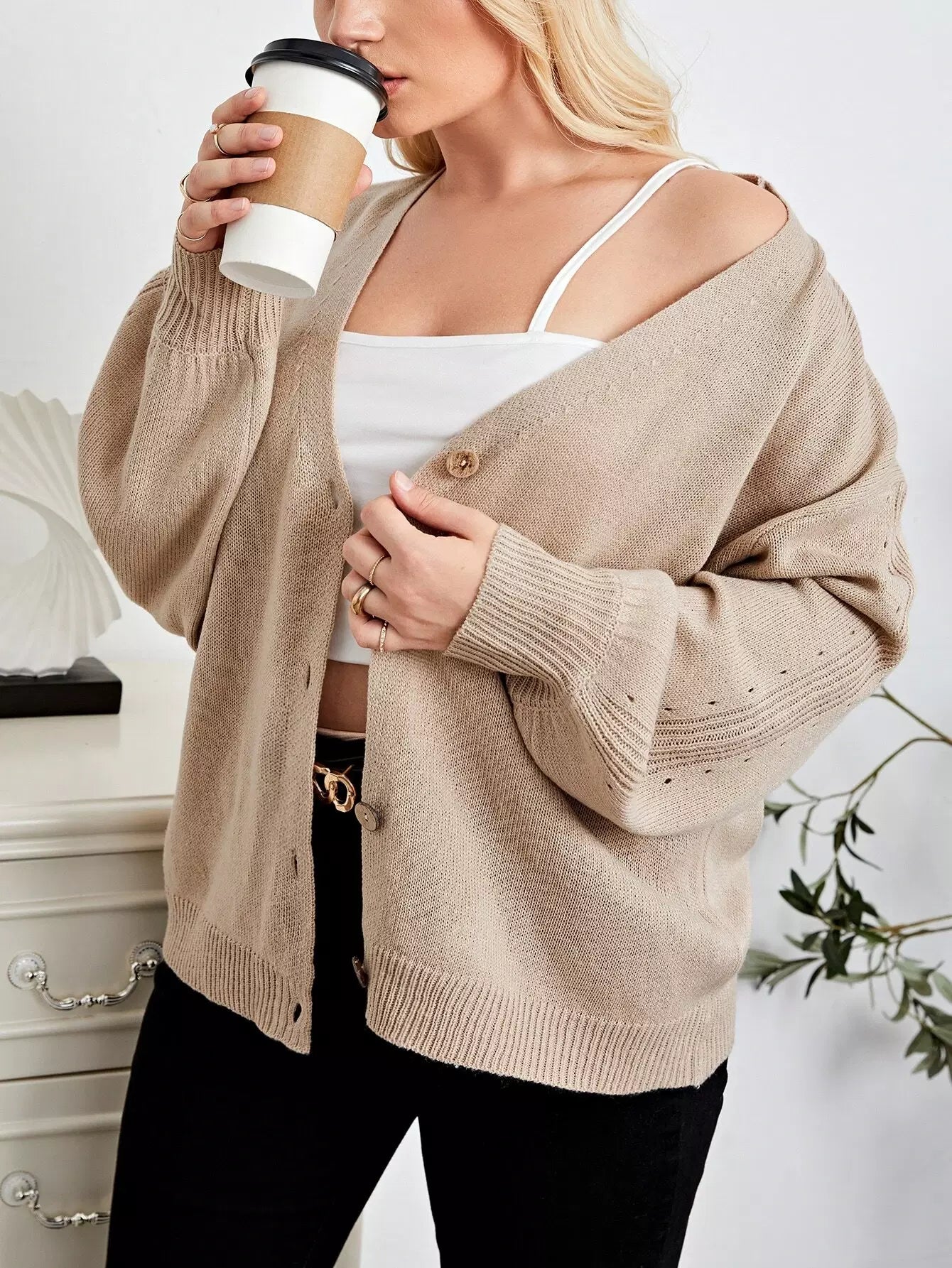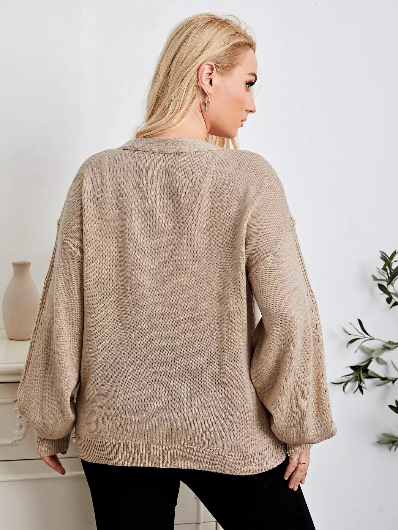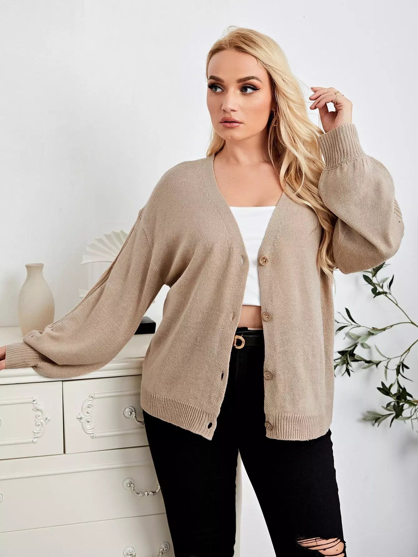 كارديغان بأكمام بأزرار أمامية بأزرار زائد