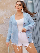 كارديجان صوفي محبوك بأزرار متماسكة على شكل حرف V برقبة على شكل حرف V وجيبين