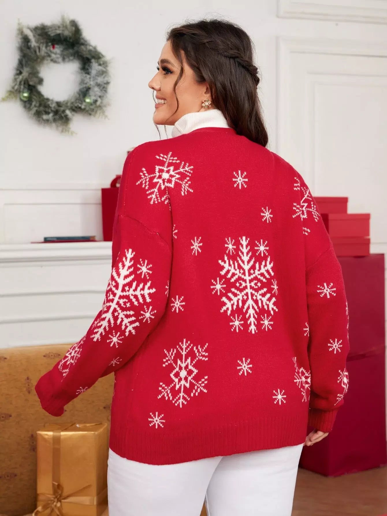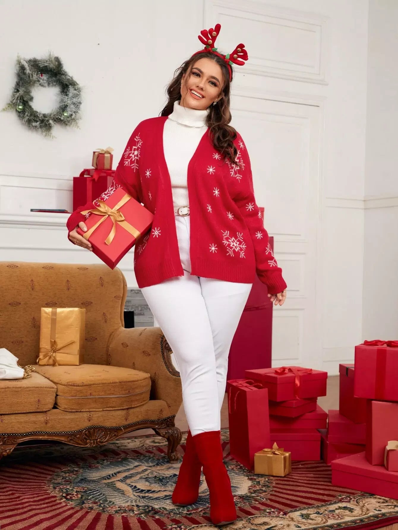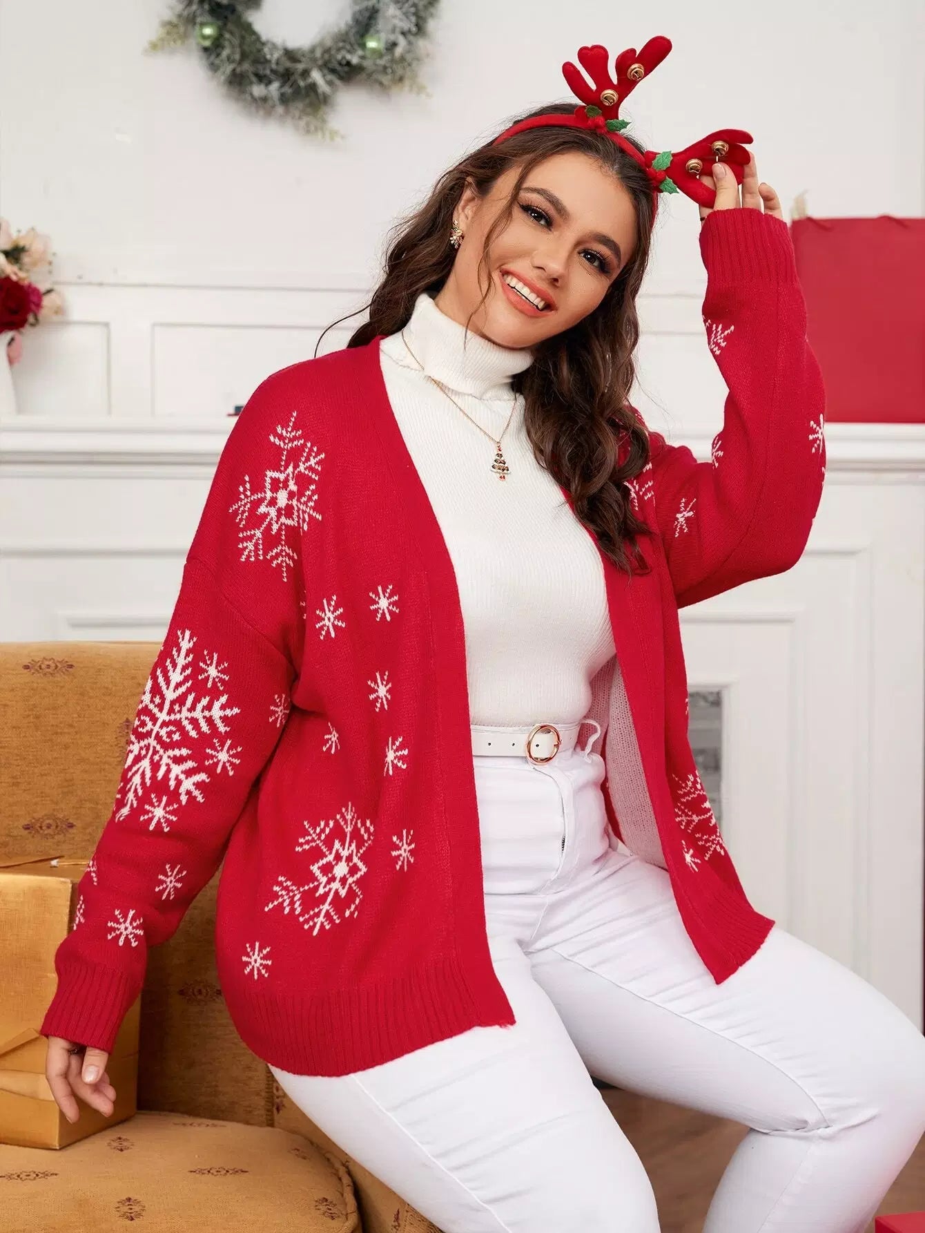 كارديغان منسدل على الكتف بنقشة ندفة الثلج في عيد الميلاد