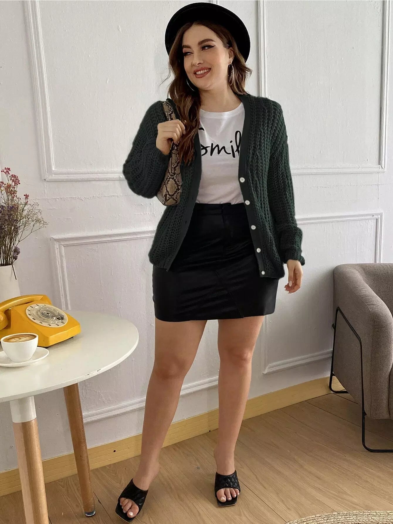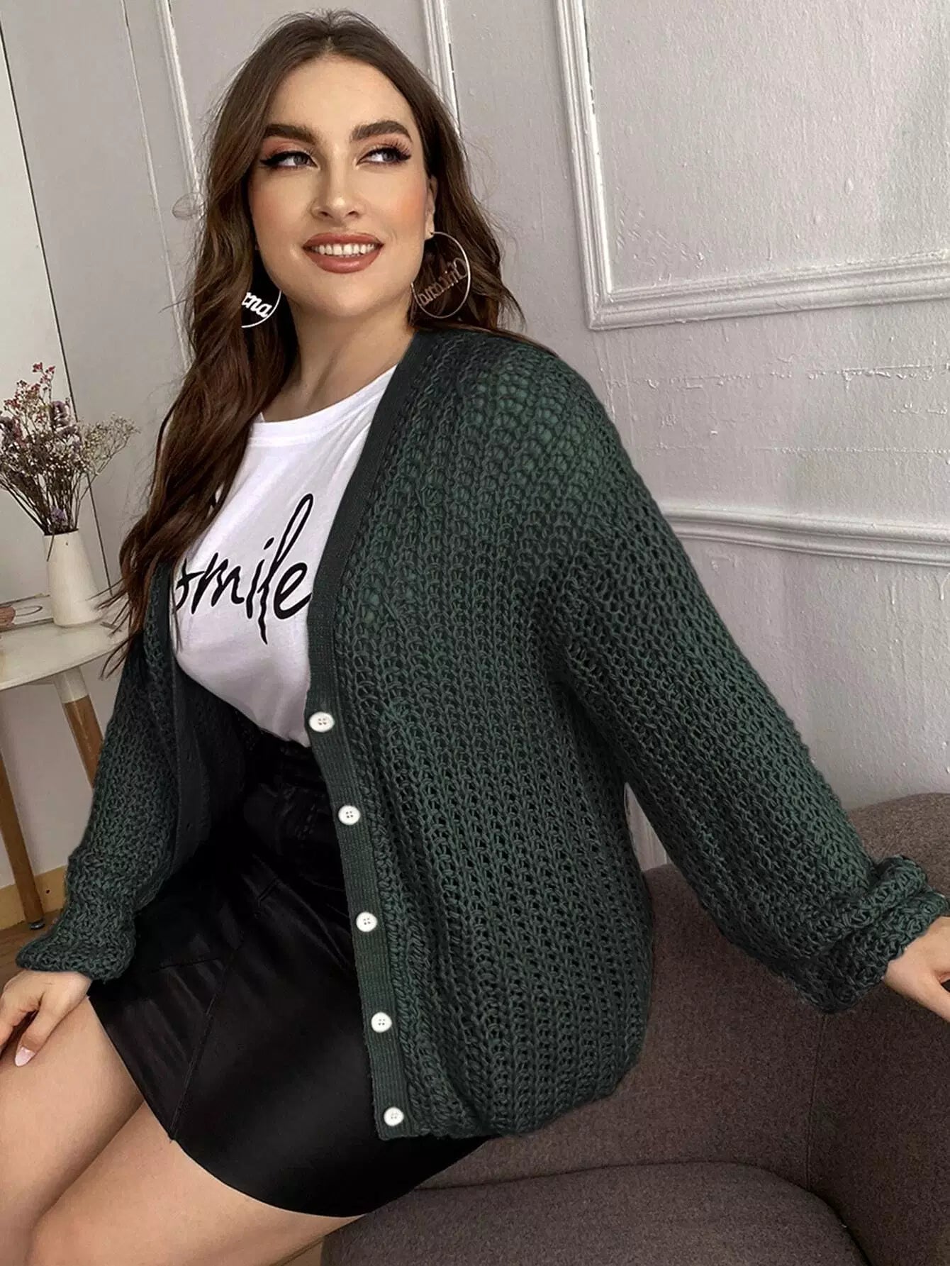 كارديجان صوفي محبوك بأزرار مكتنزة زائد