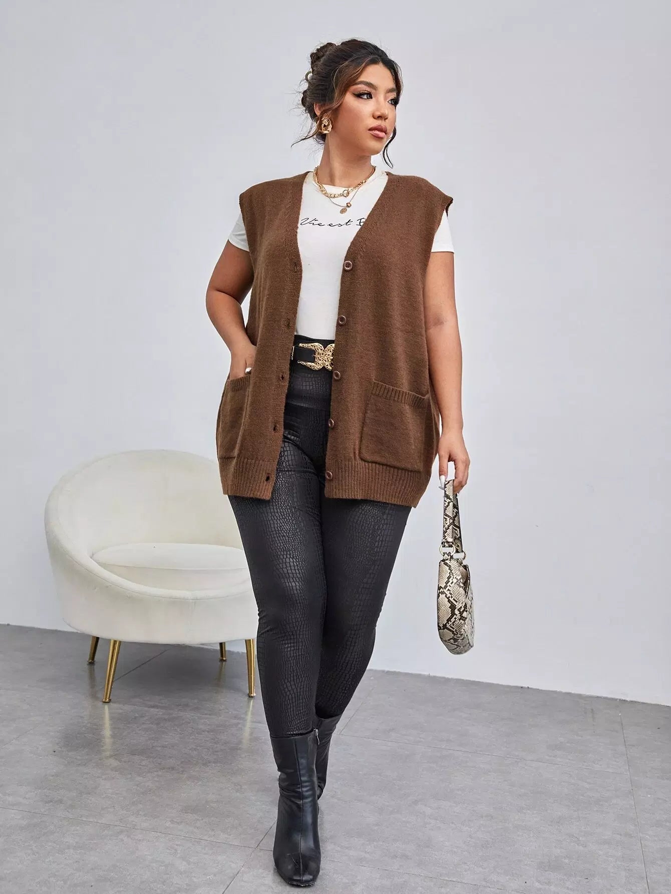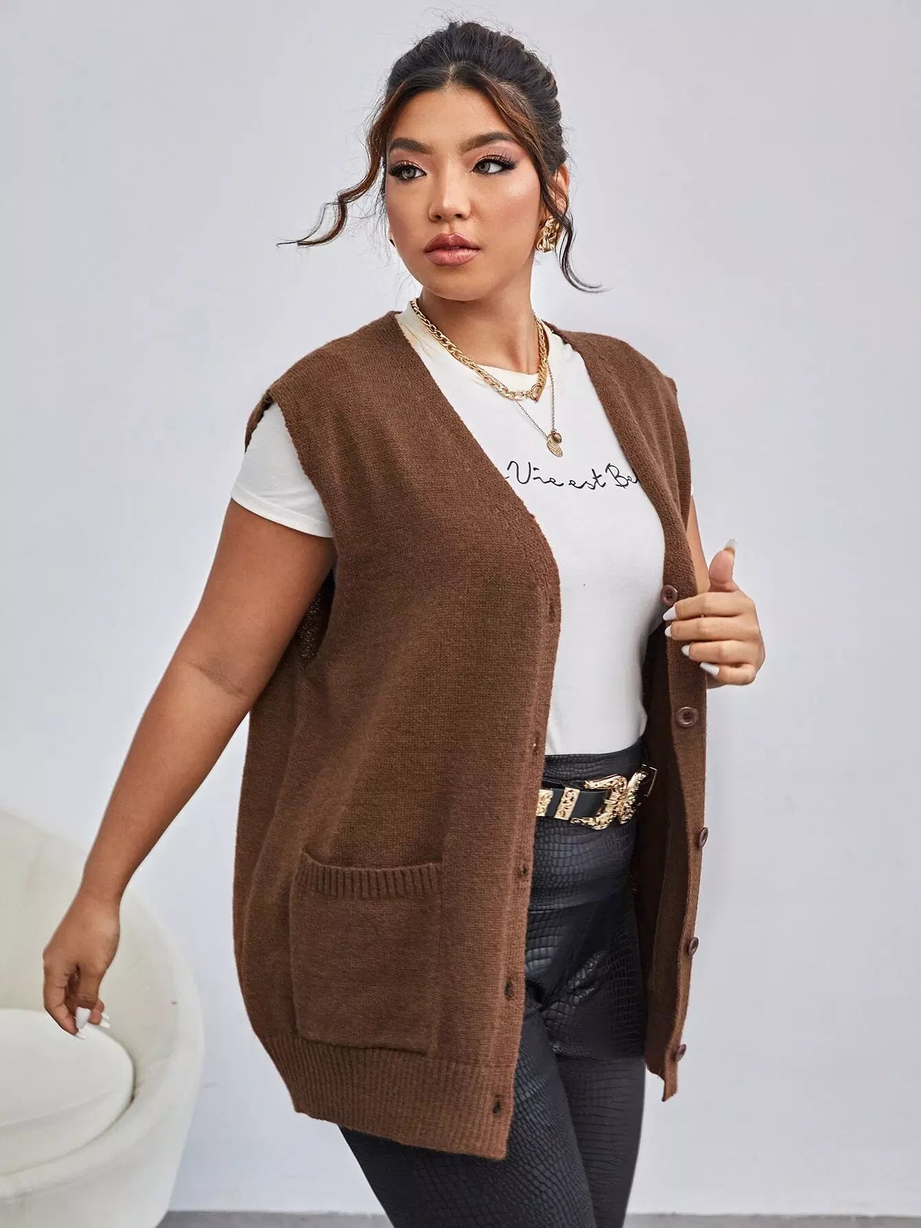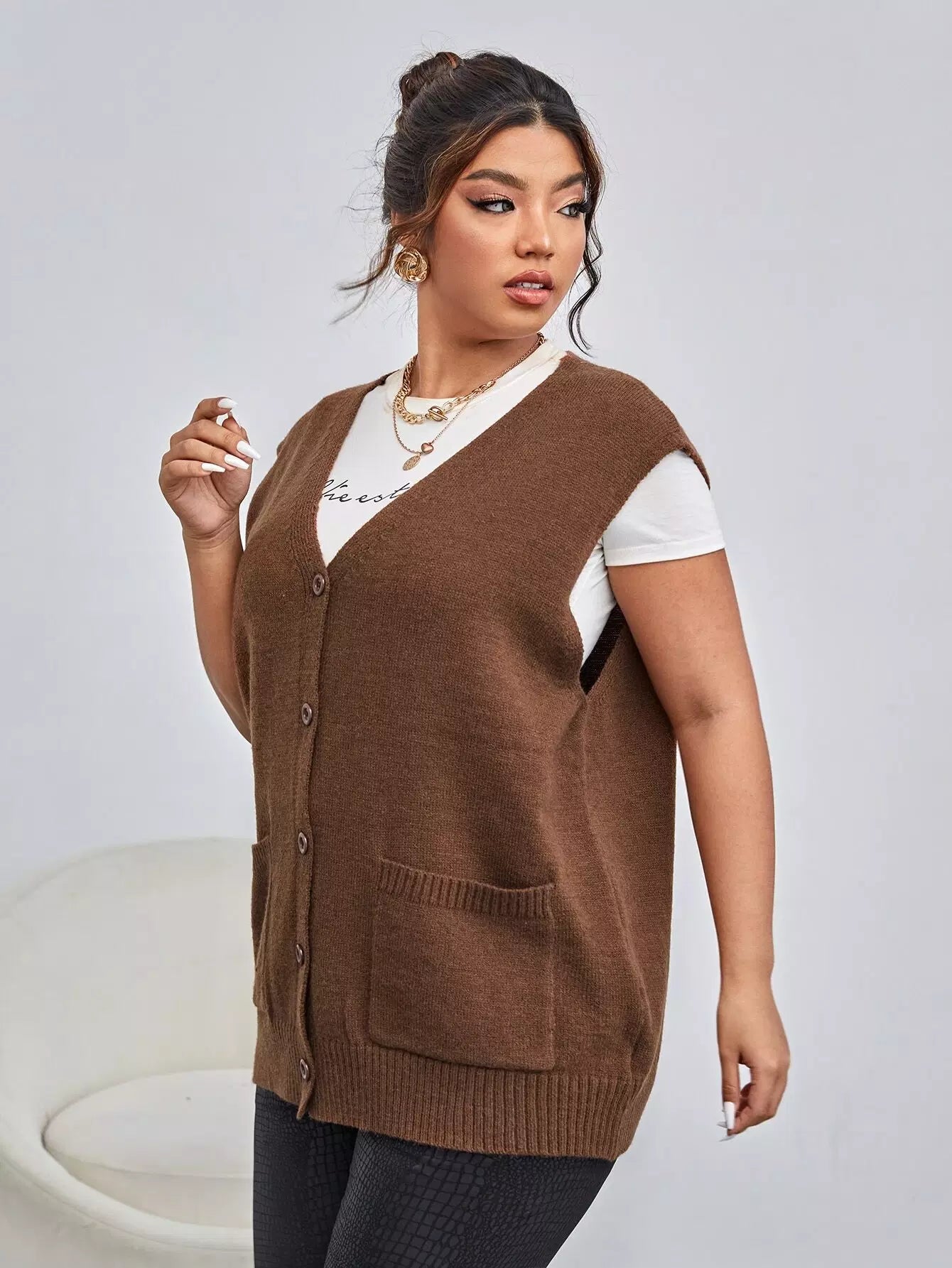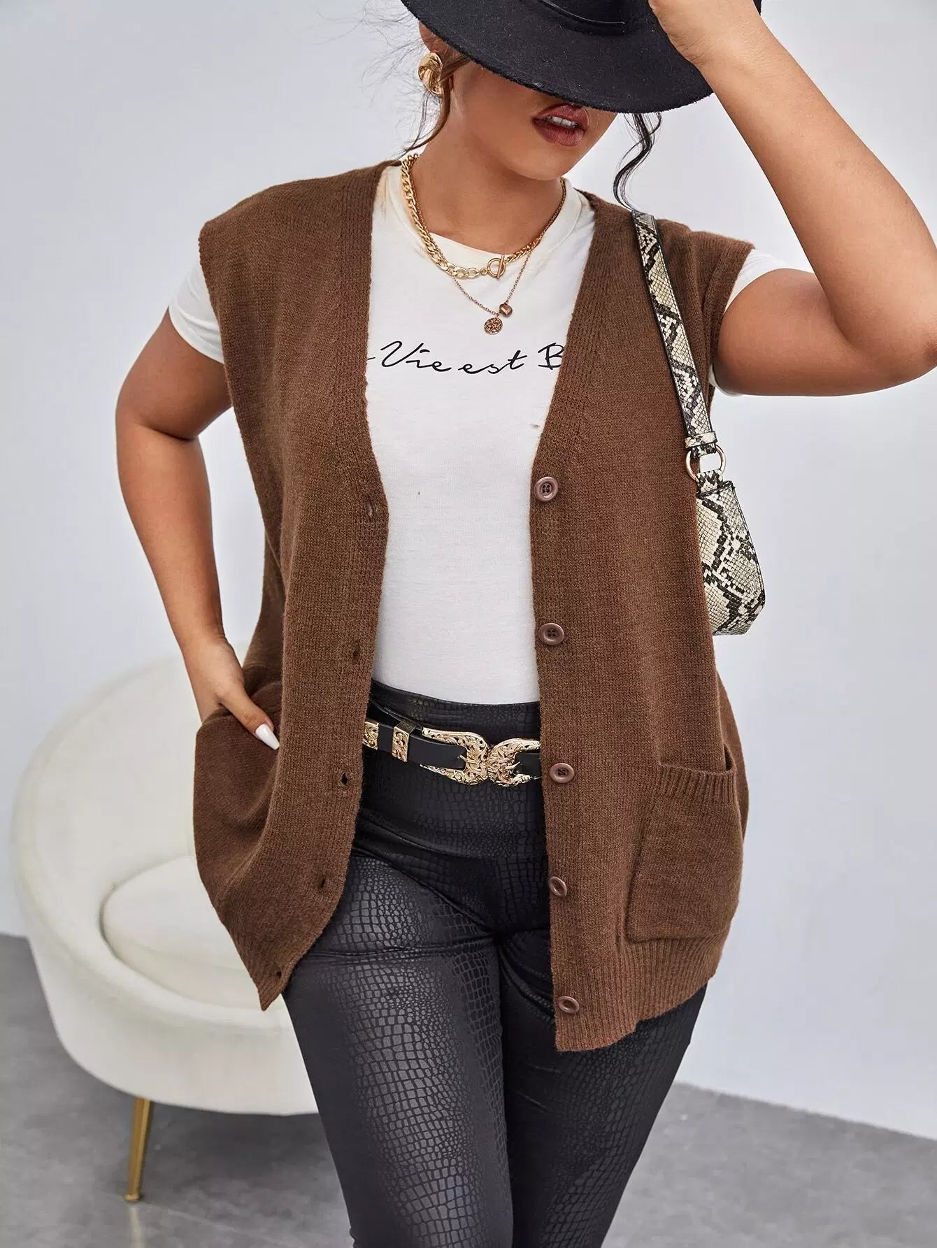 كارديجان بدون أكمام بجيب مزدوج بلا أكمام بلس