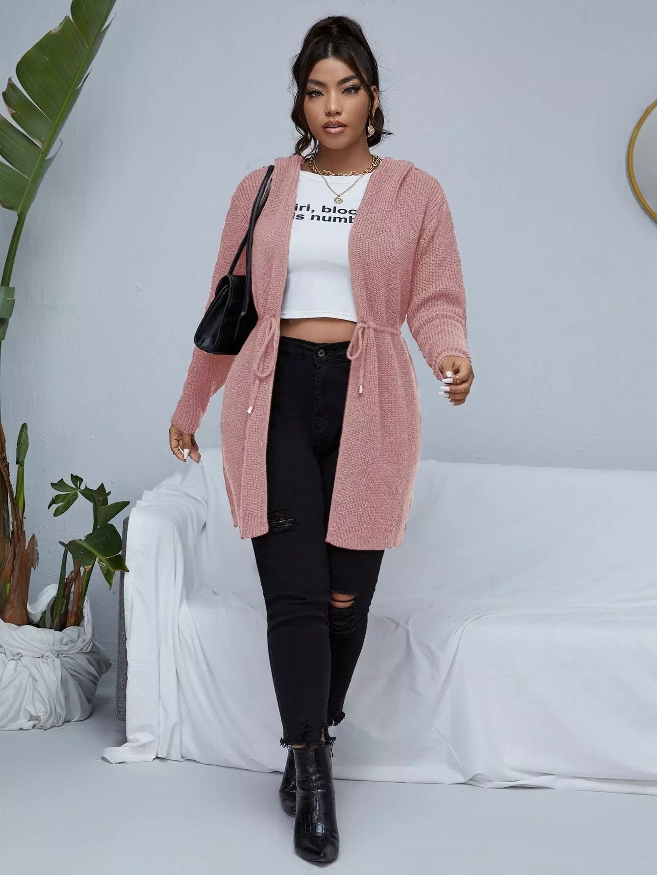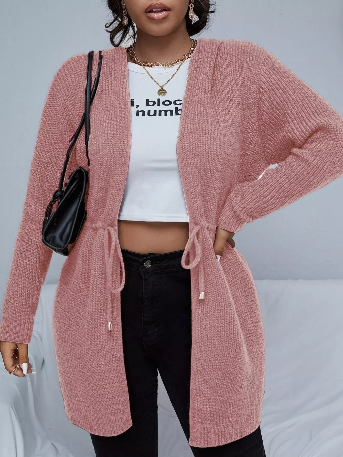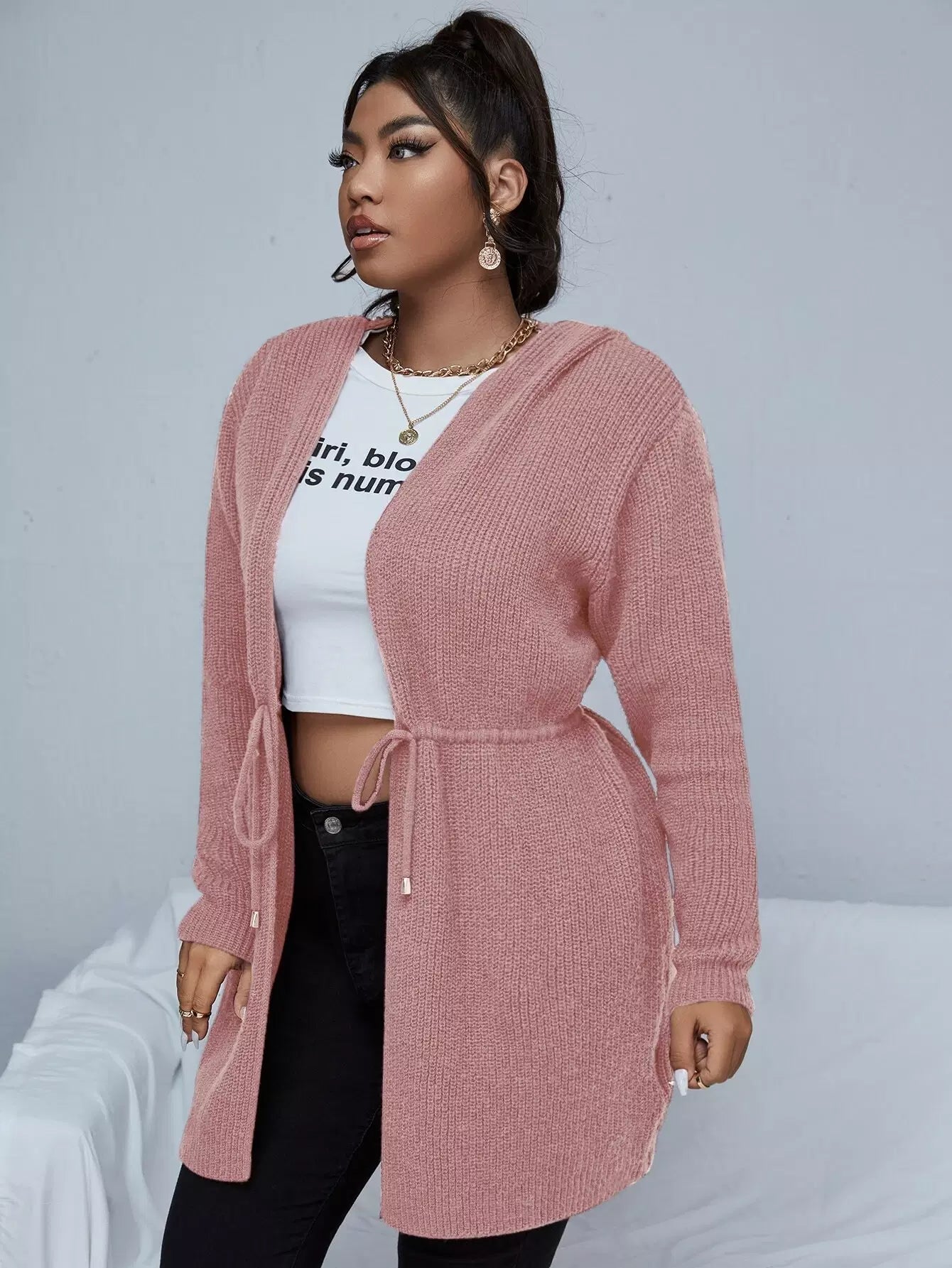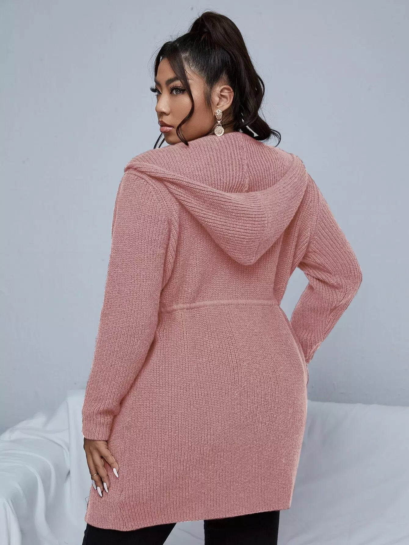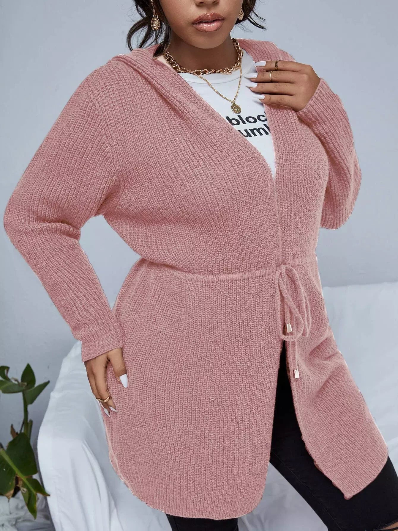 كارديجان بغطاء للرأس برباط على الخصر زائد