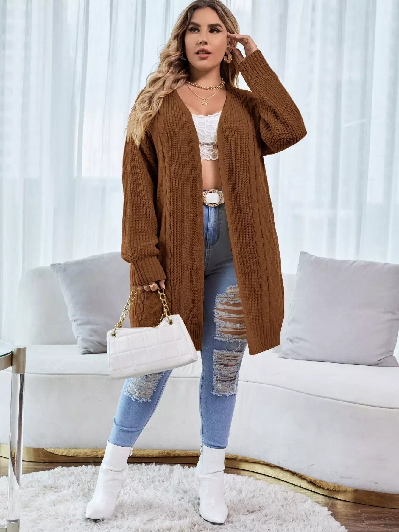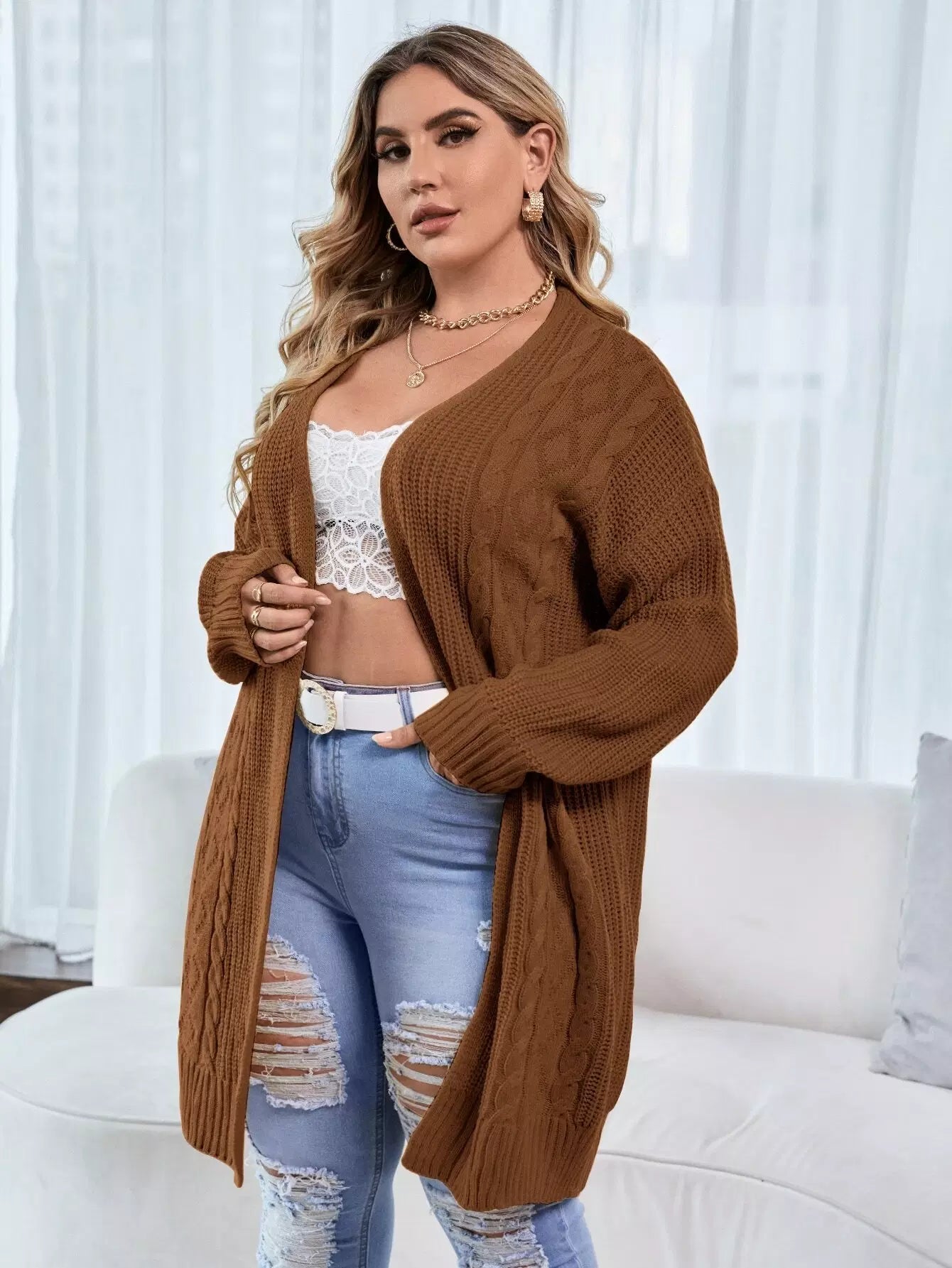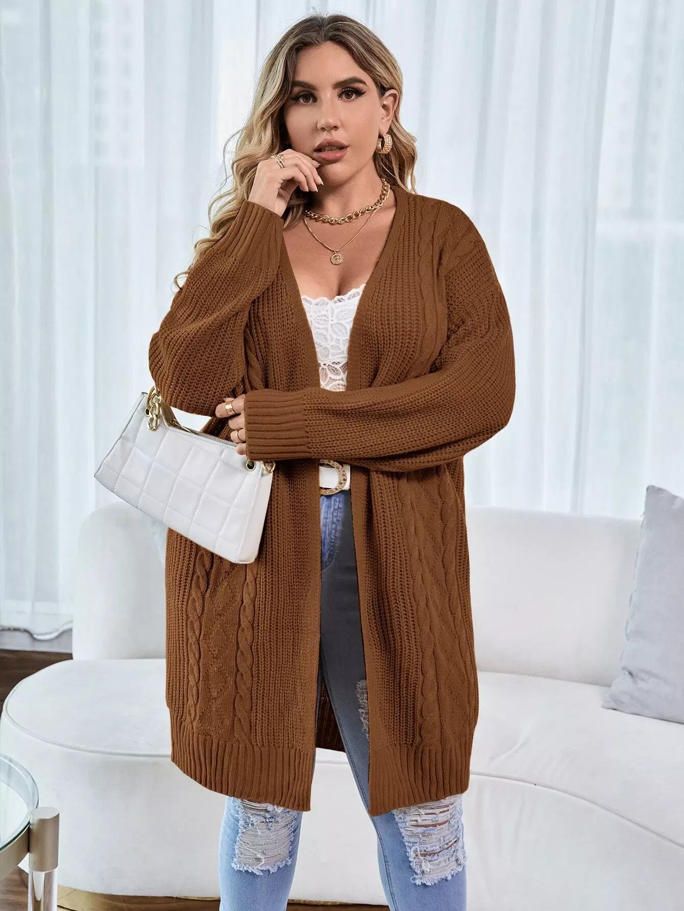 كارديجان مفتوح منسدل الكتفين مفتوح من الأمام