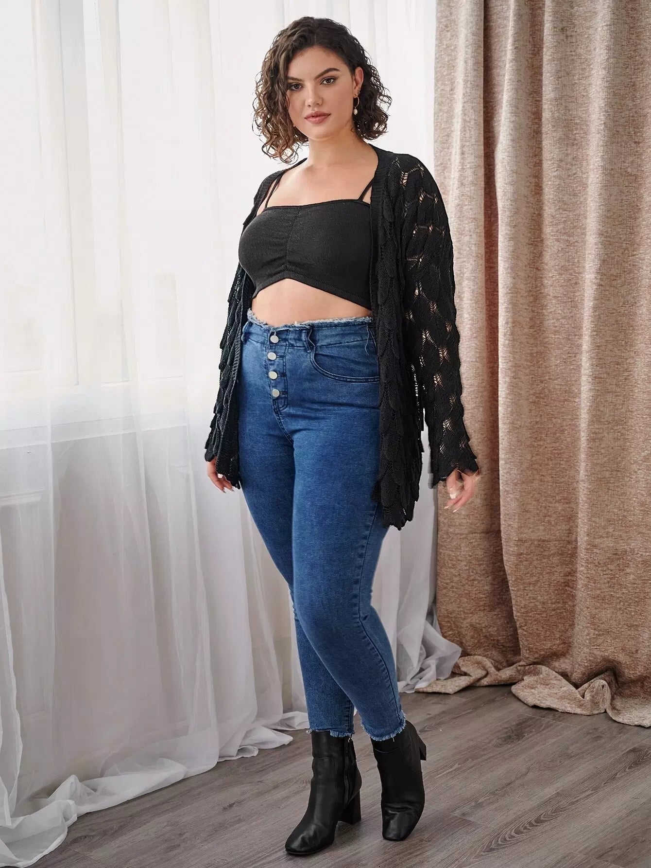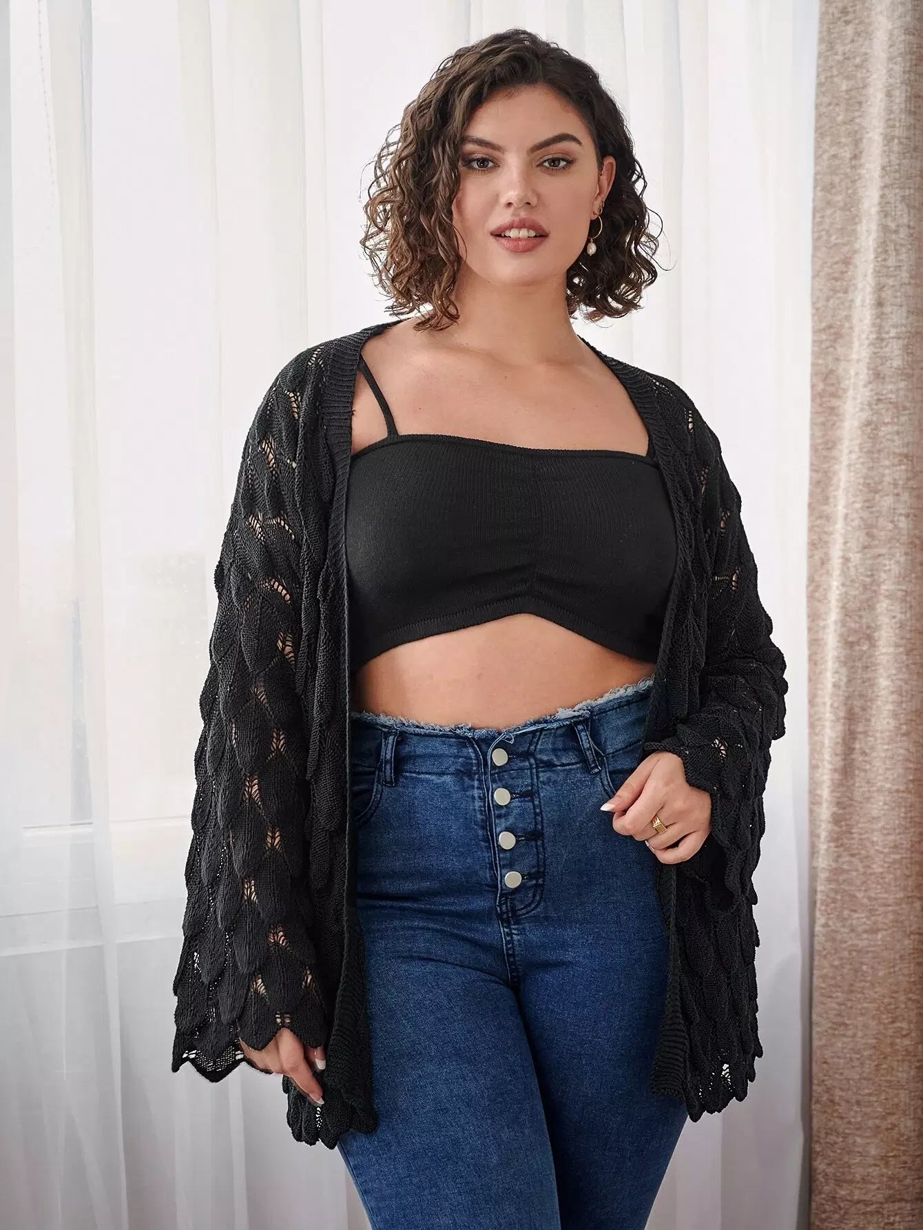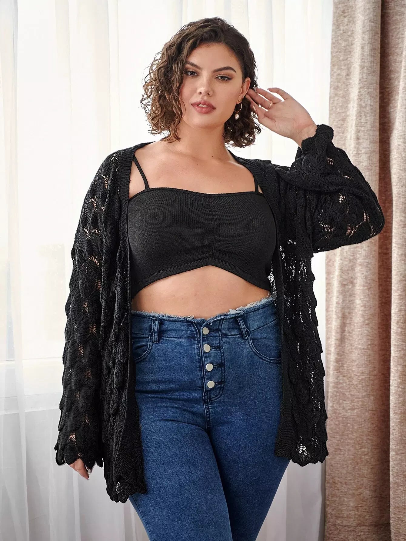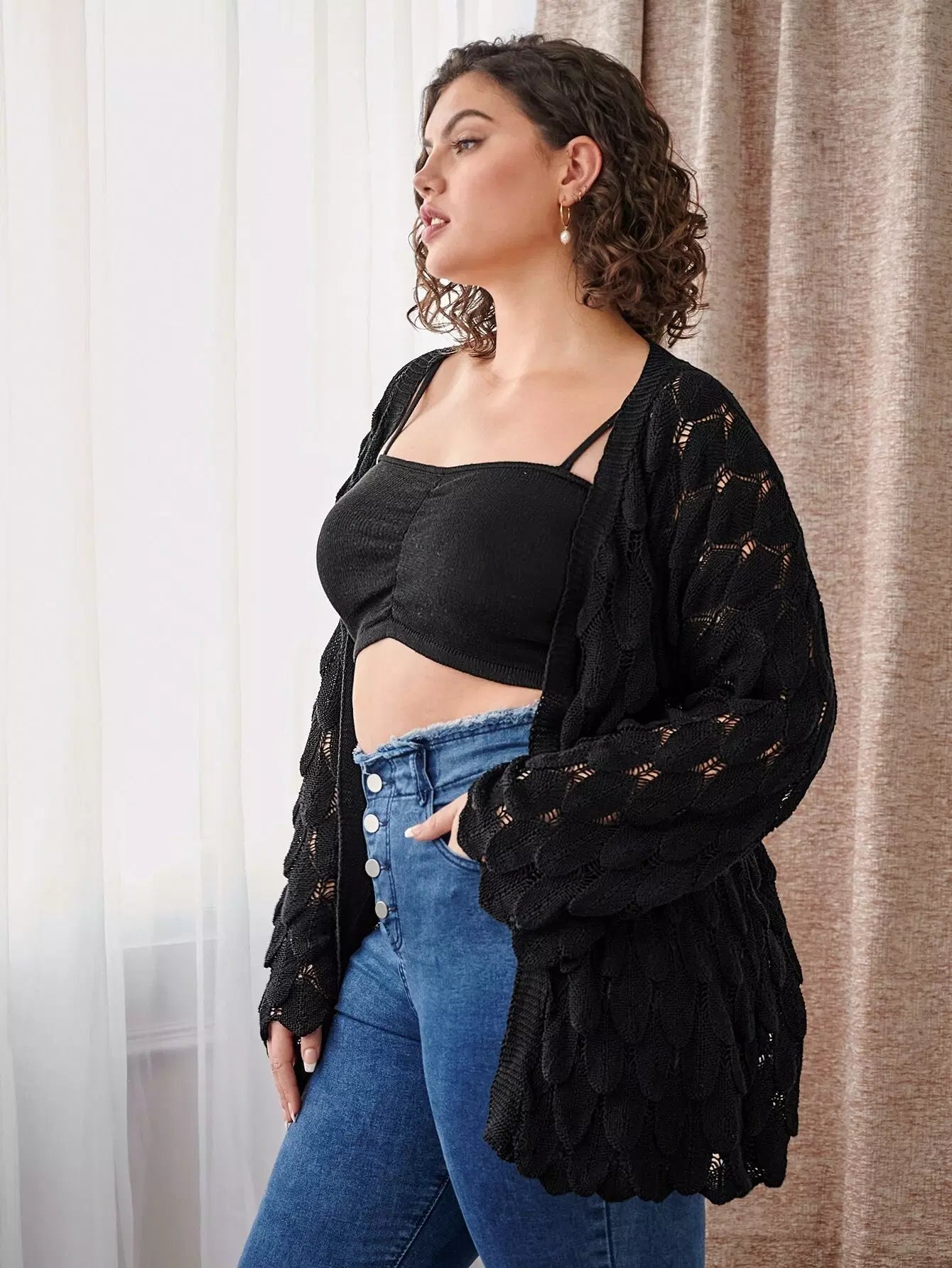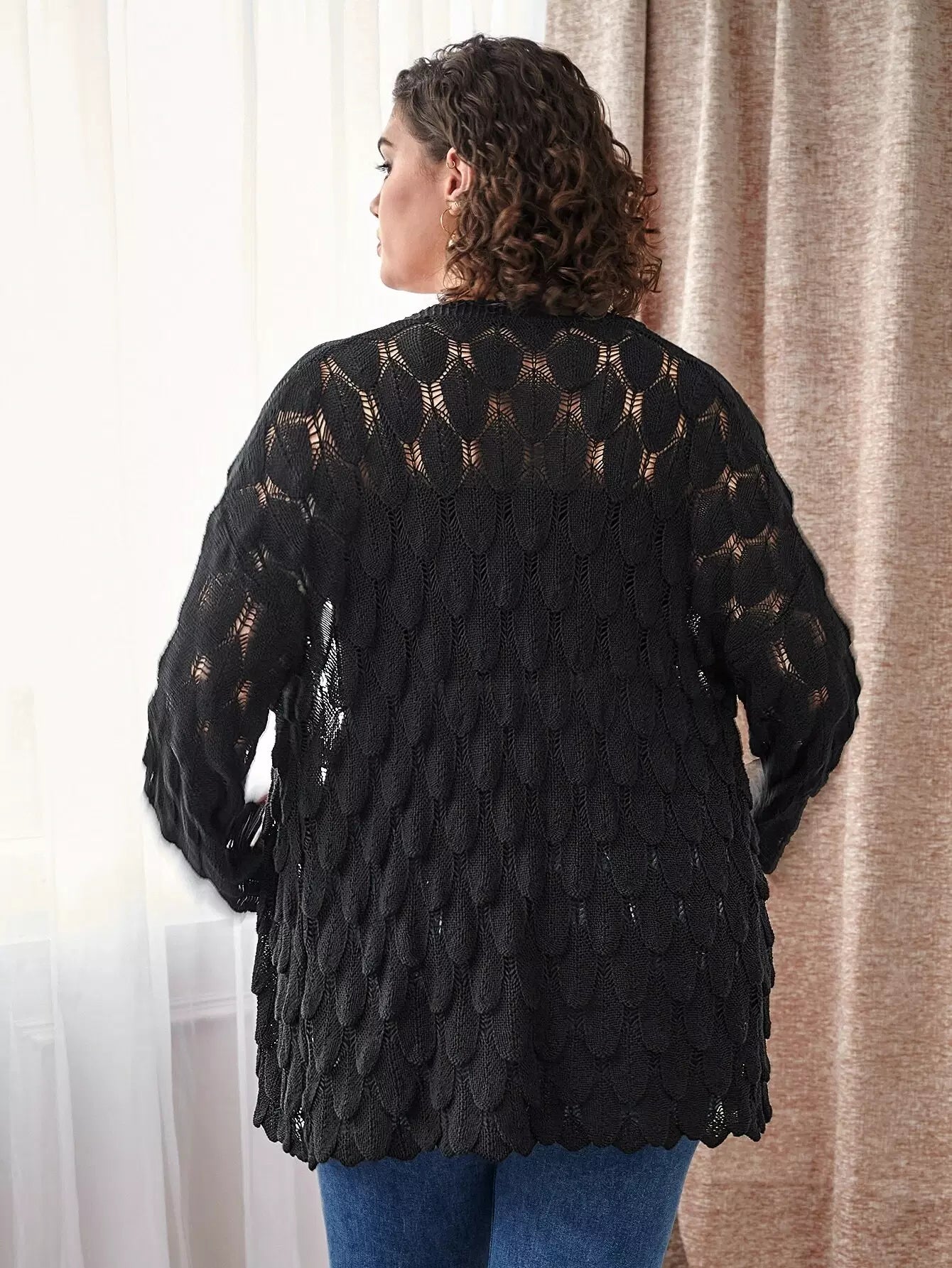 كارديجان مفتوح الأكتاف منسدل الكتف مفتوح الحياكة