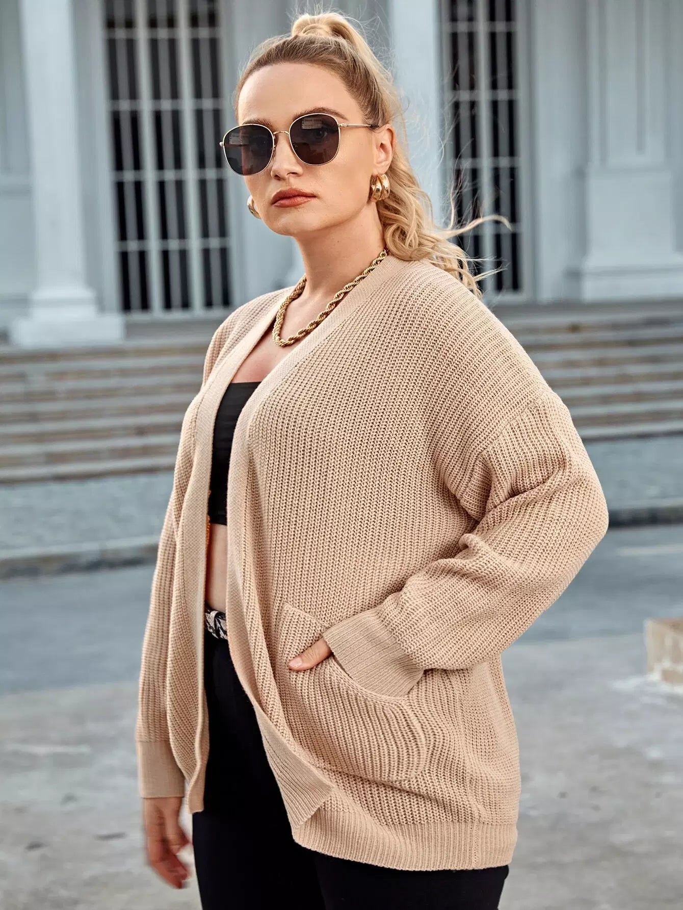 كارديجان منسدل الكتفين بجيب أمامي زائد