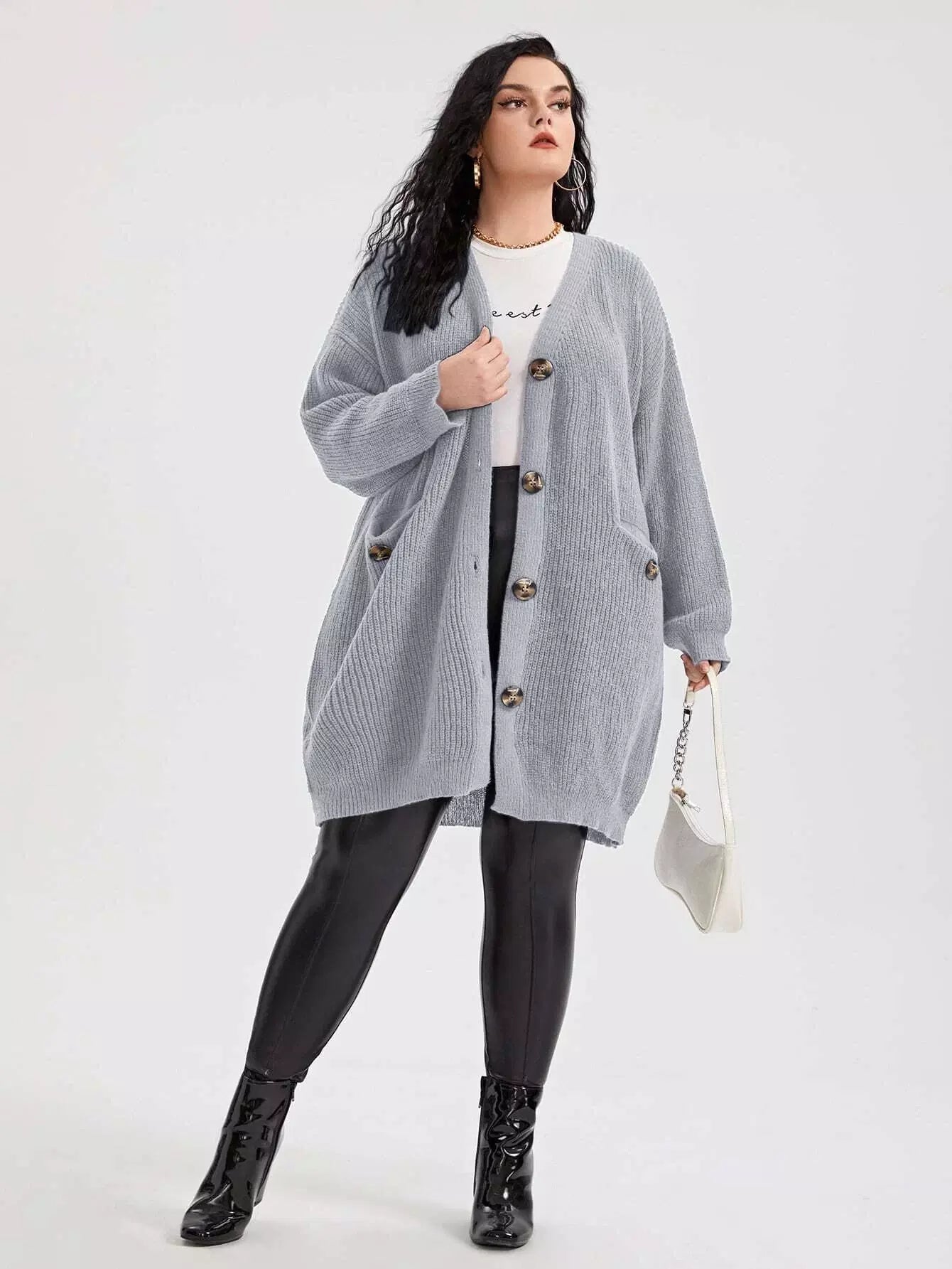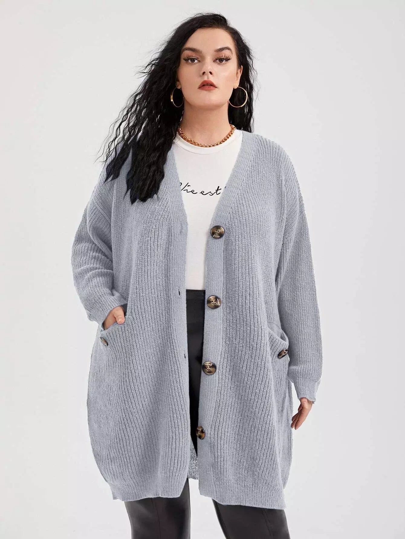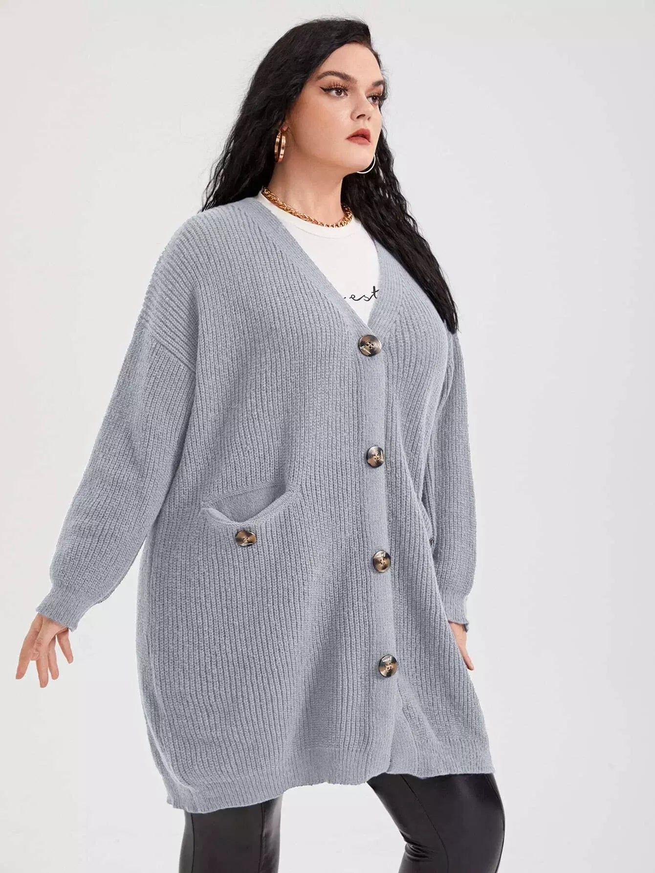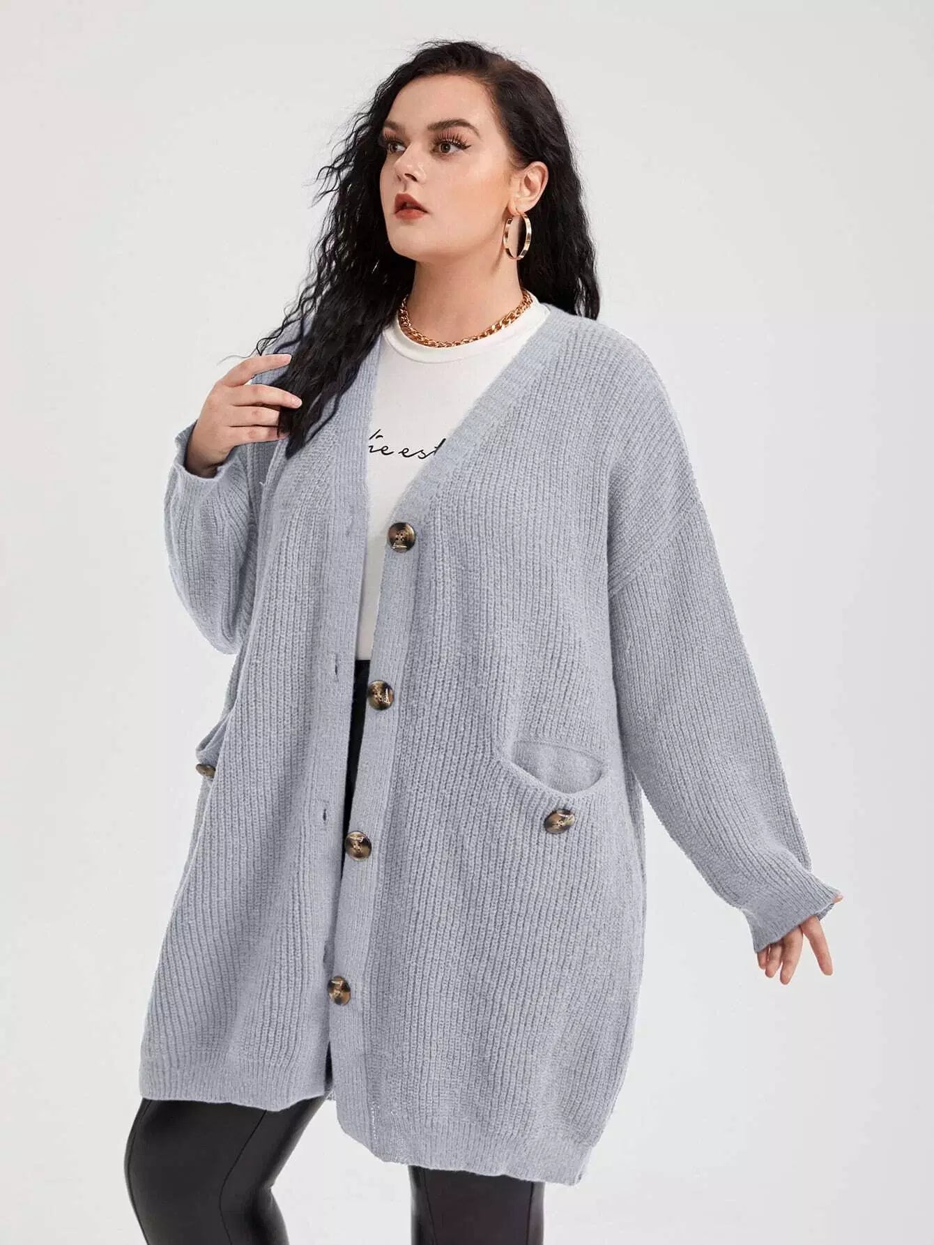 كارديغان مرقع بجيب منسدل الكتفين زائد