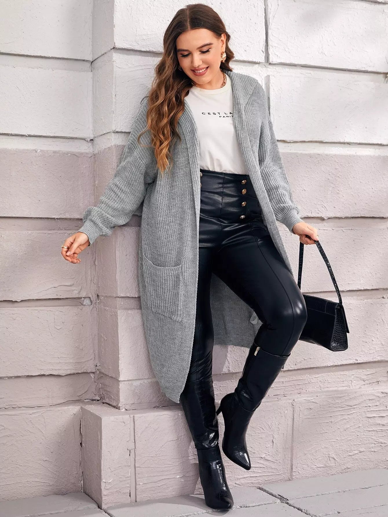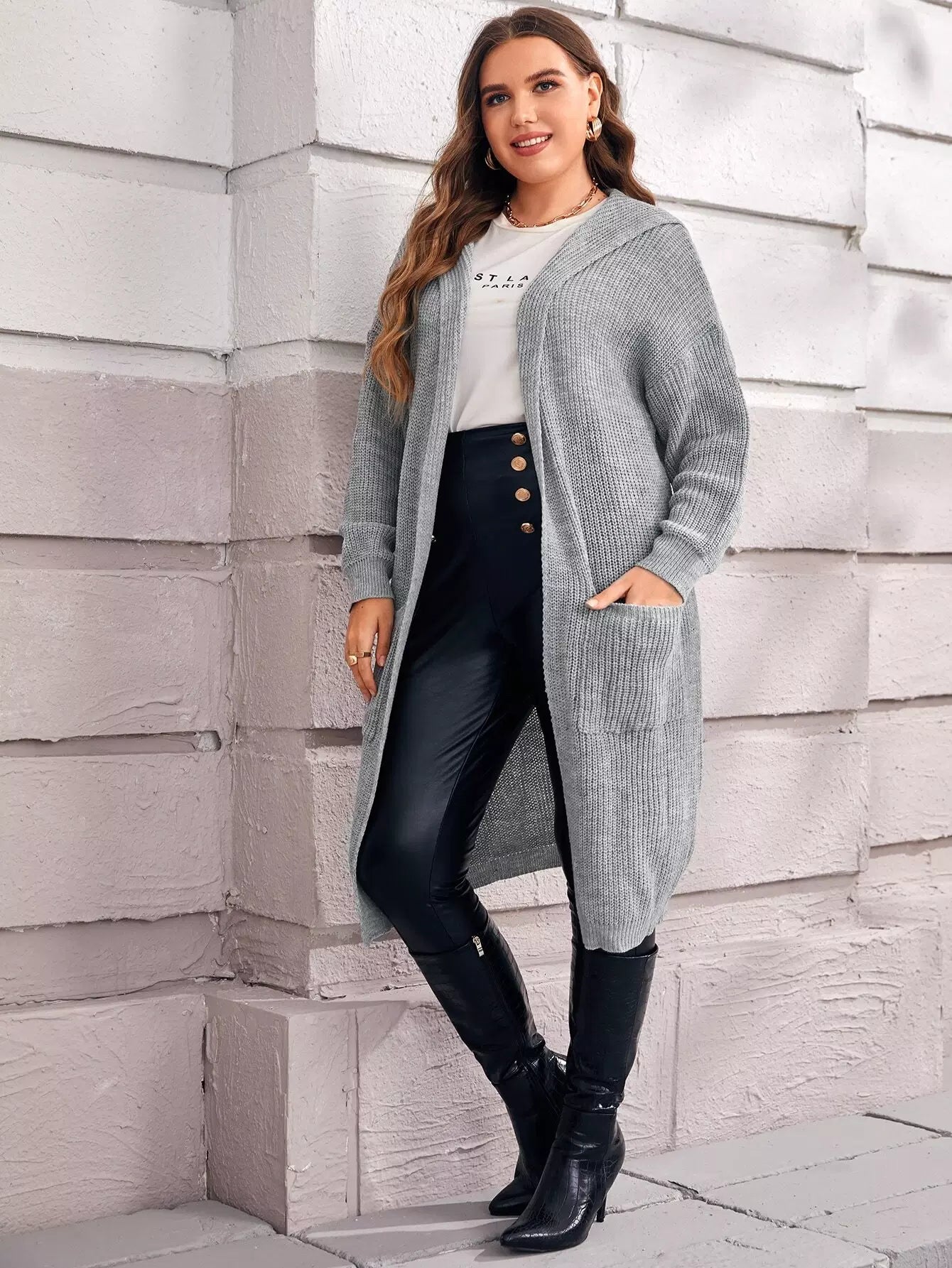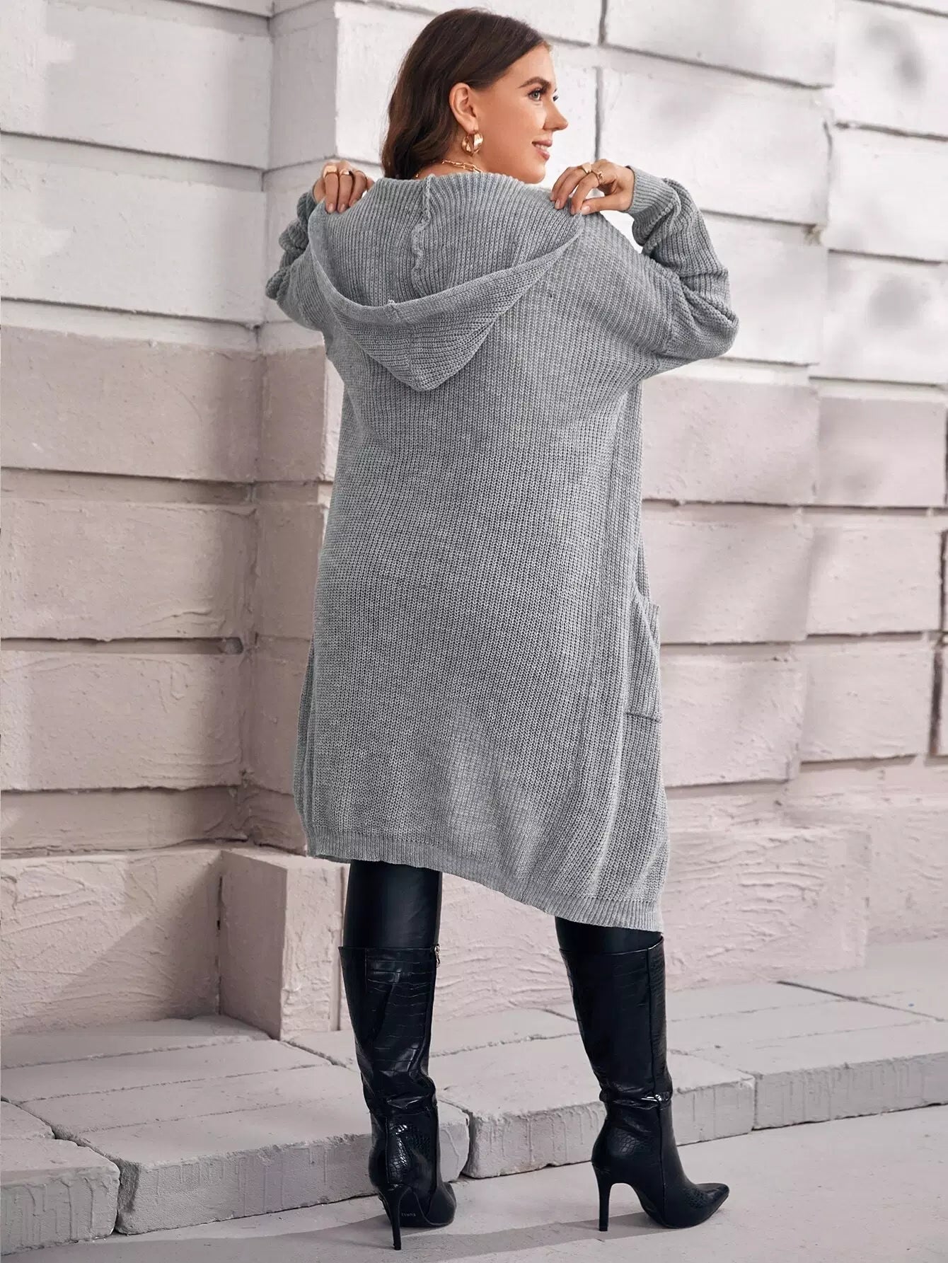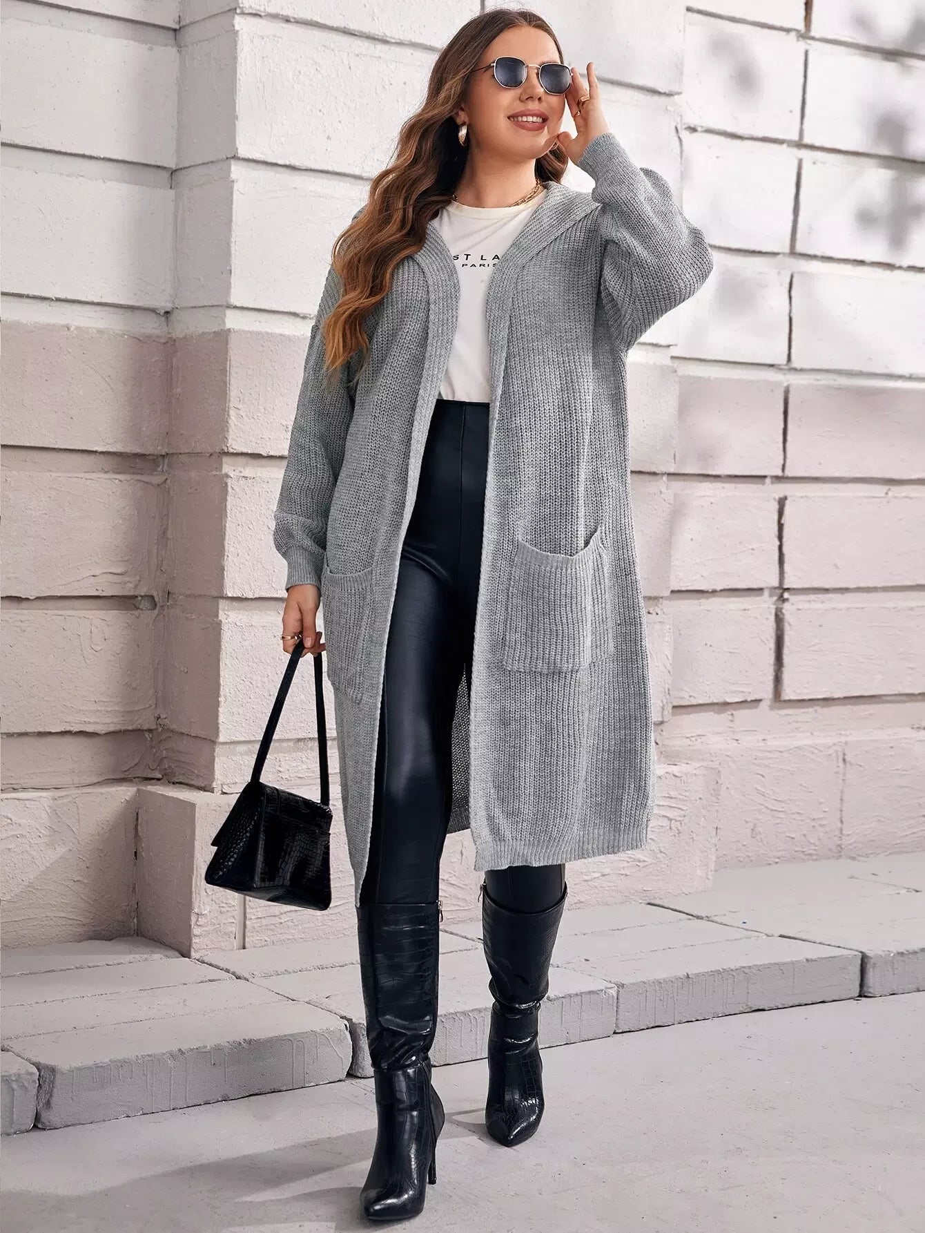 سترة صوفية بغطاء رأس مفتوح من الأمام بجيوب مزدوجة بلس