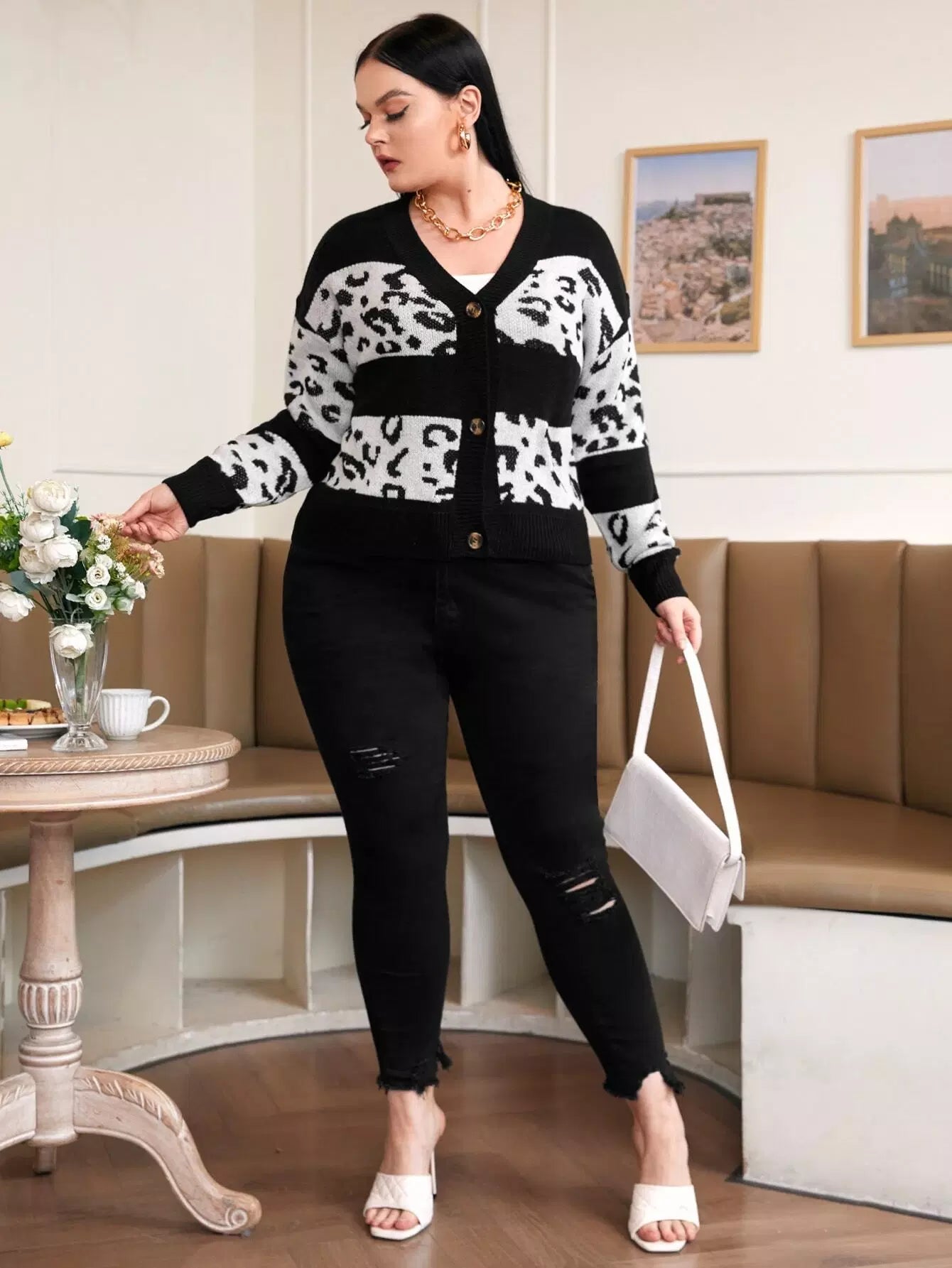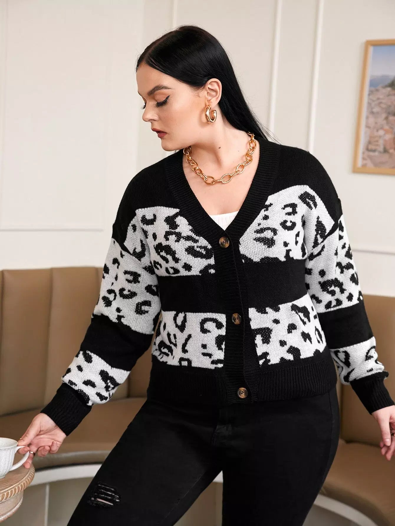 كارديغان منسدل الأكتاف بنقشة جرافيك زائد