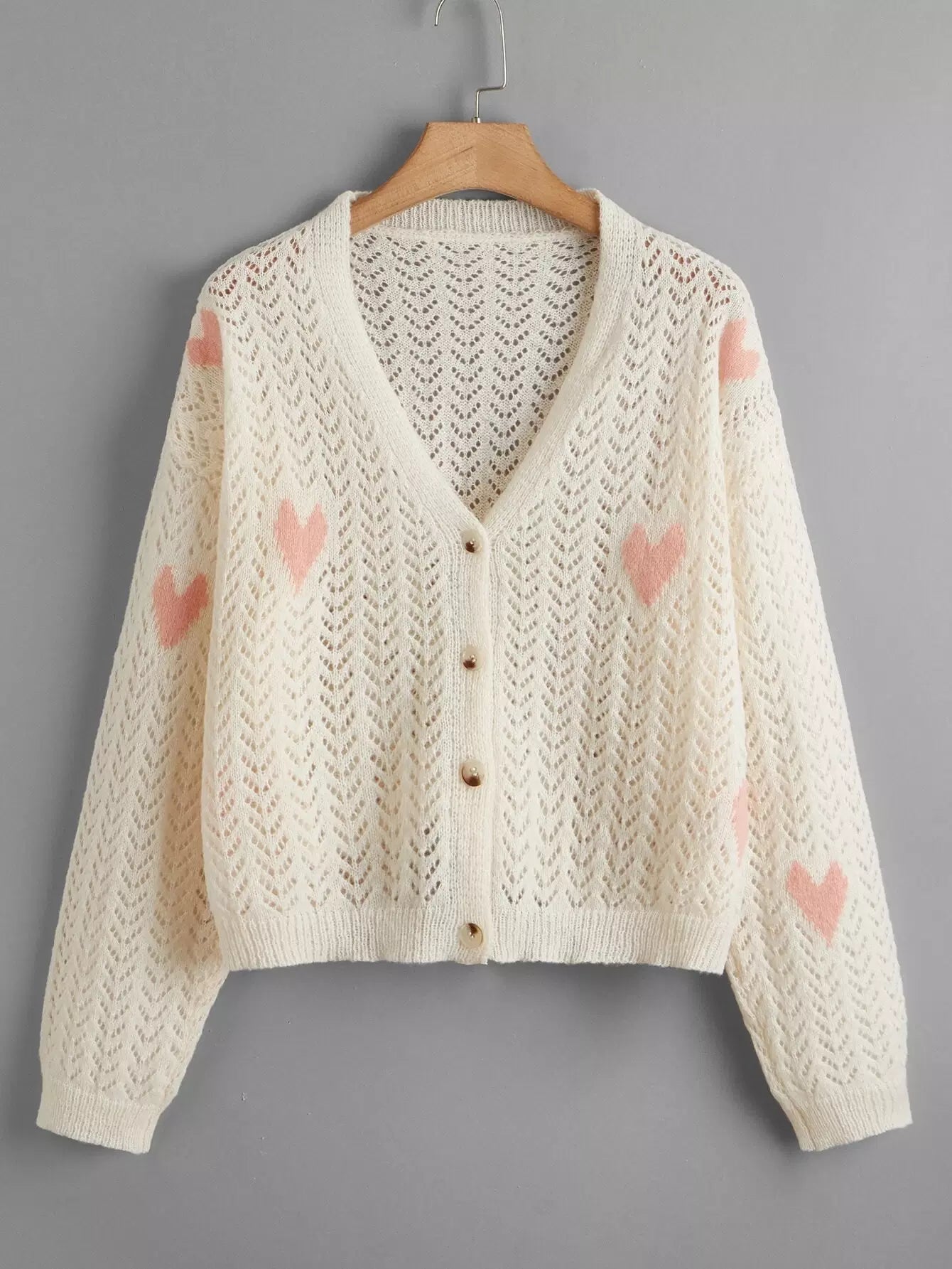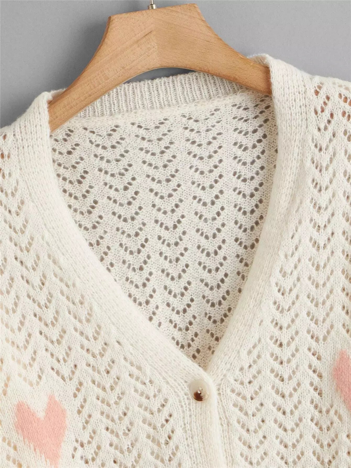 كارديجان محبوك بنمط قلب زائد بوينتيل محبوك