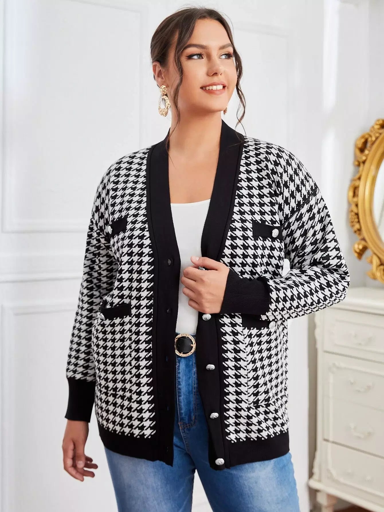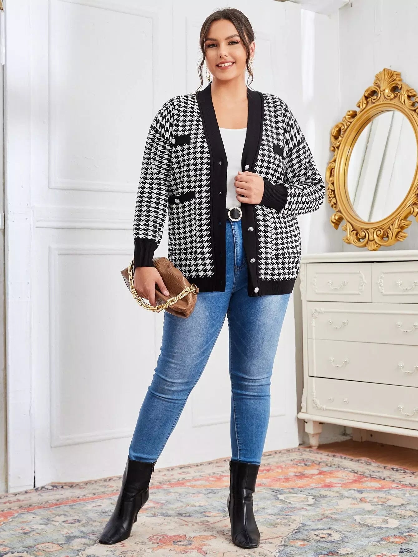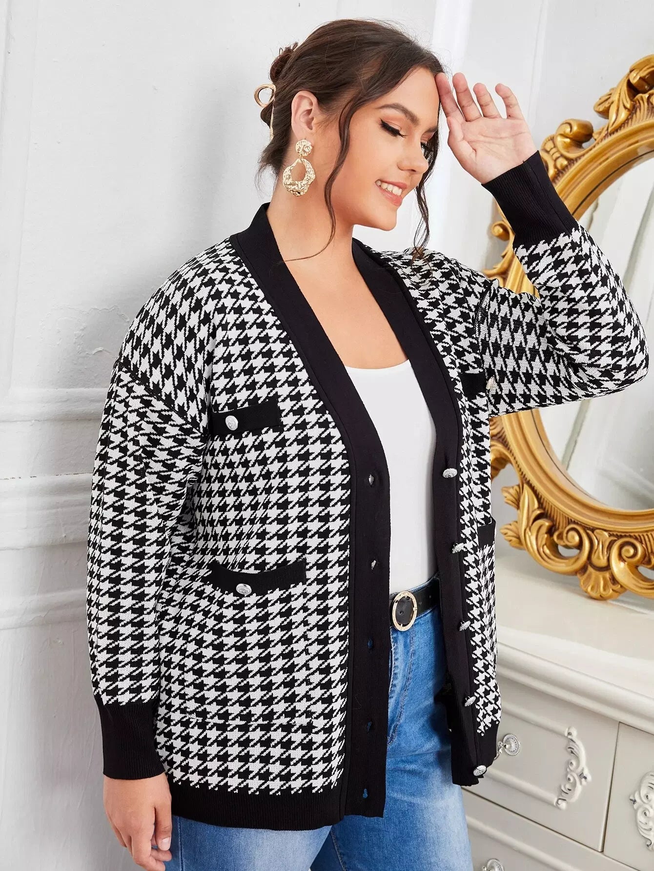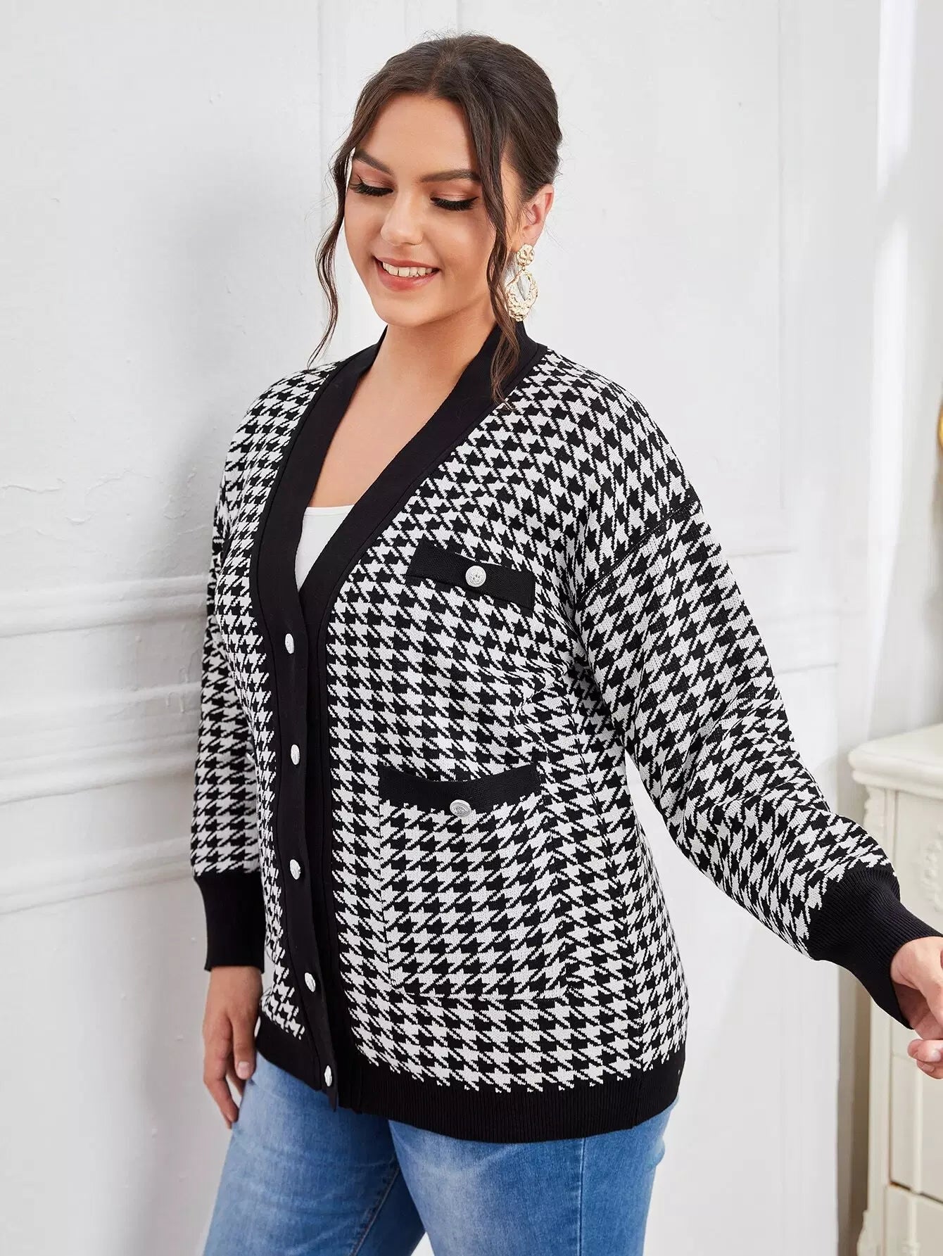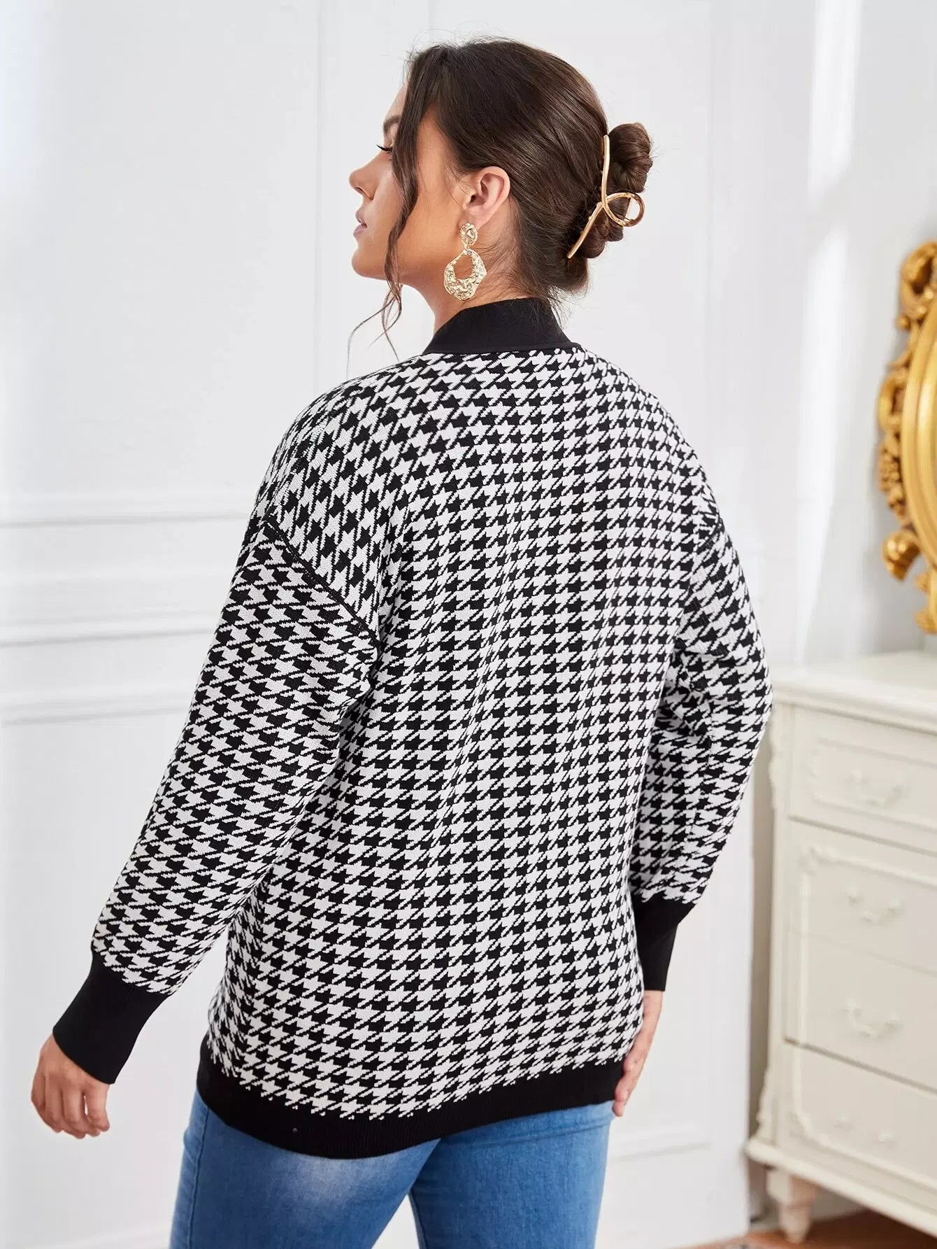 سترة صوفية بأزرار أمامية مخرمة بأزرار زائد