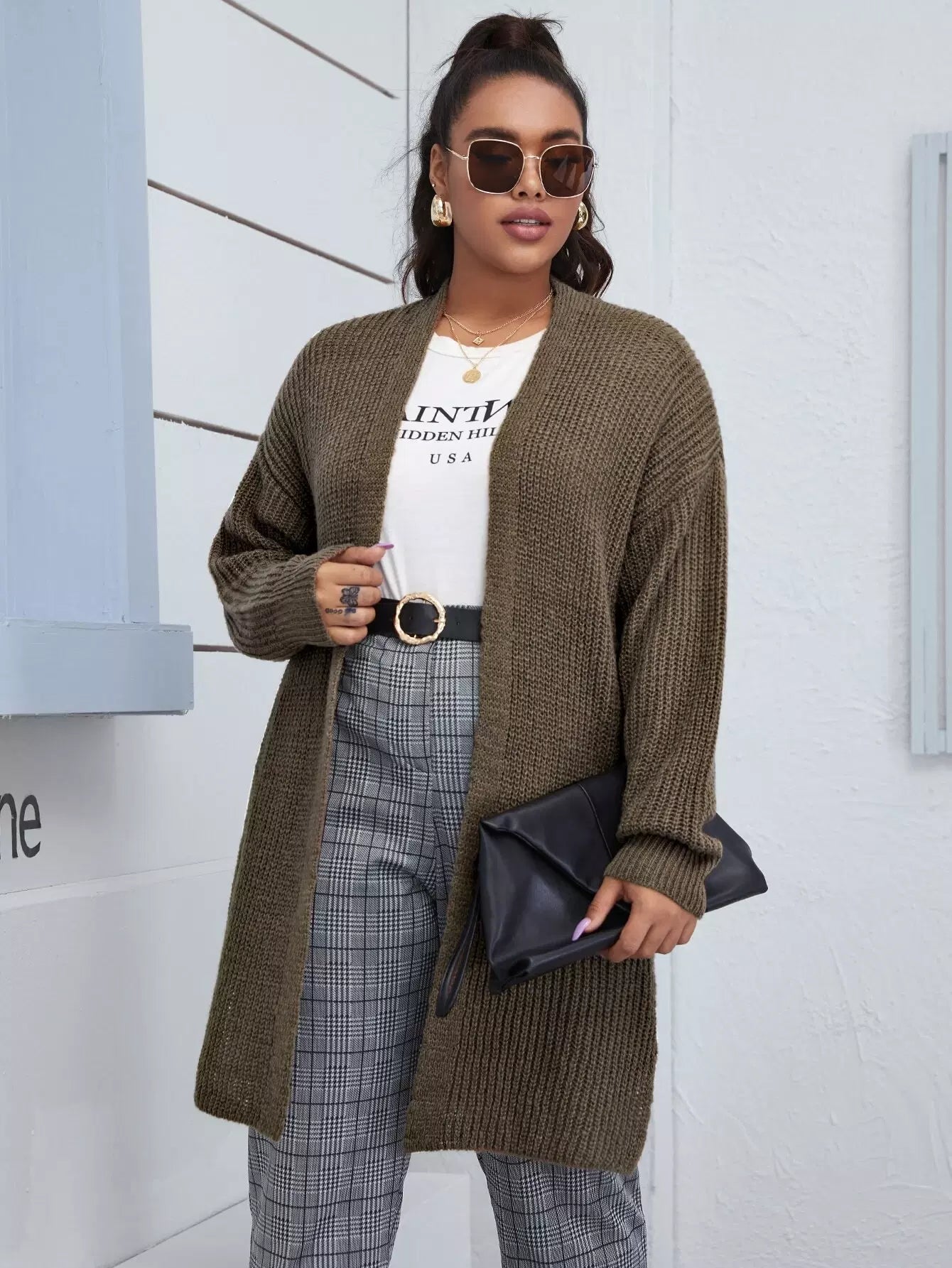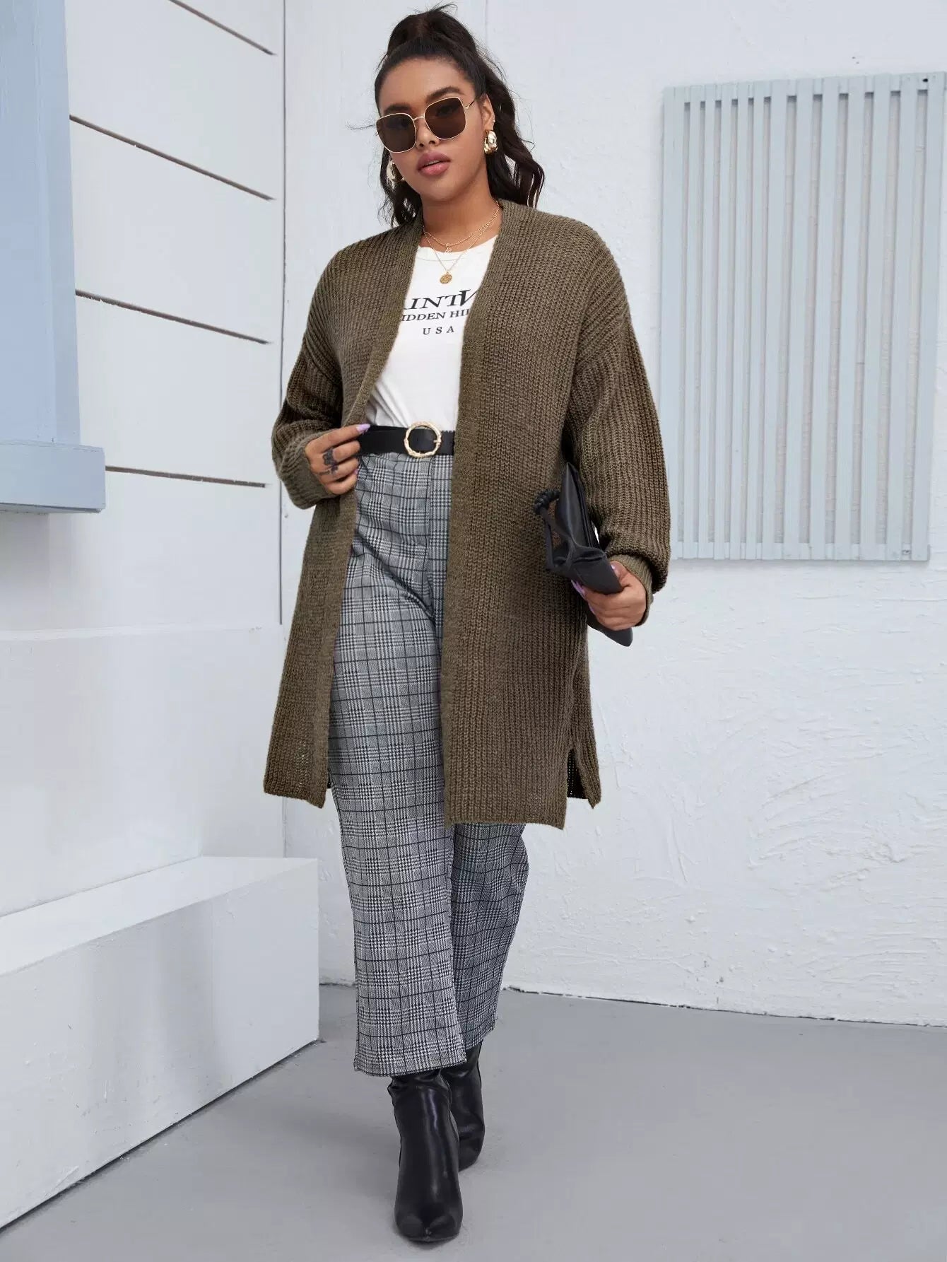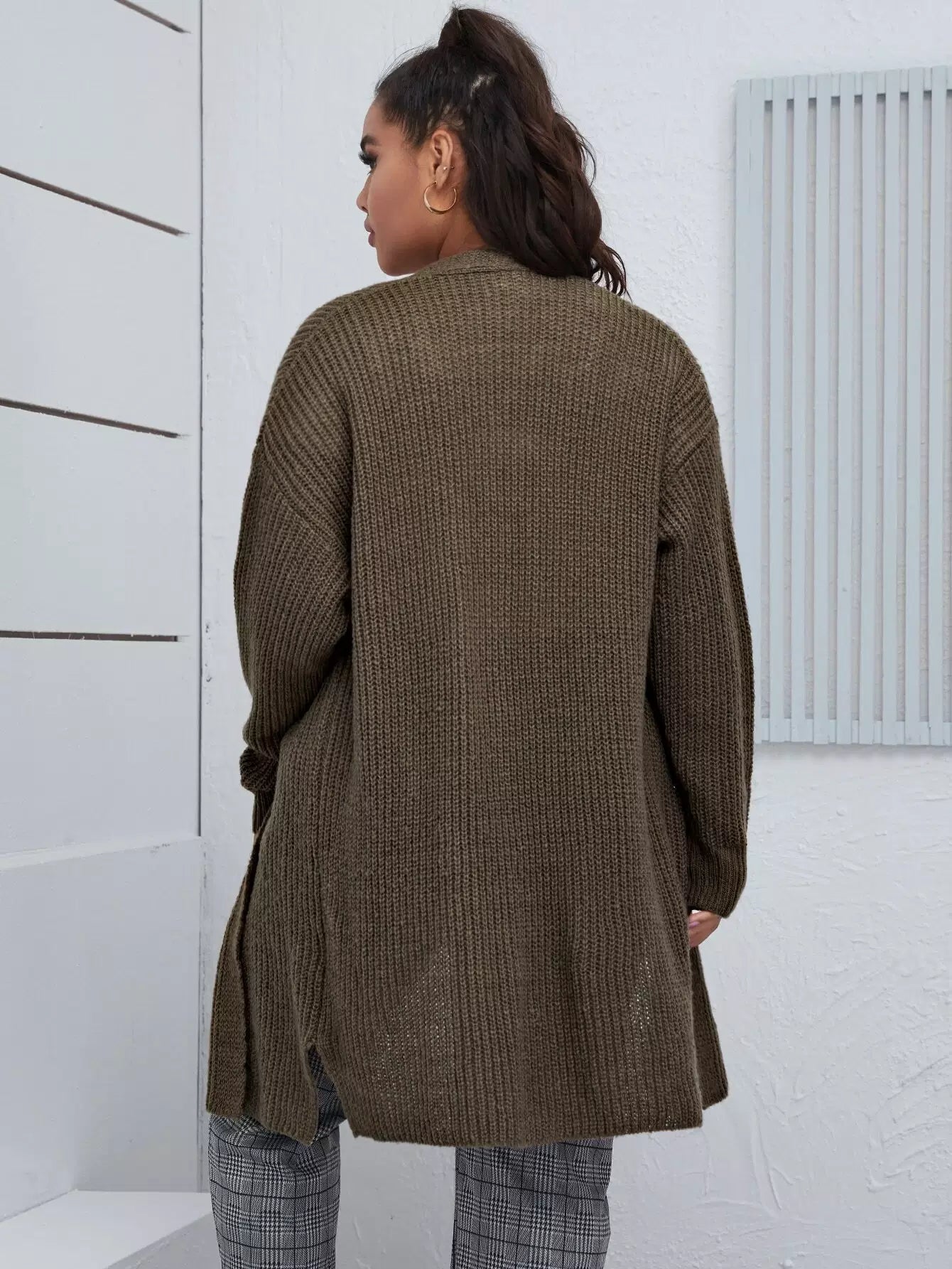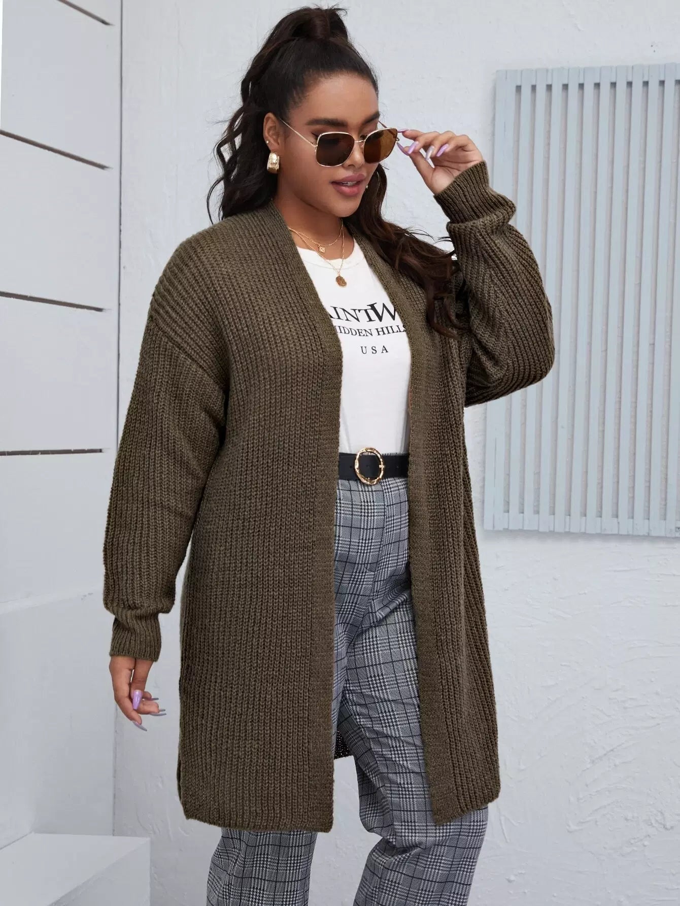 كارديجان مفتوح من الأمام مفتوح الحاشية منقوش عليه حافة طويلة