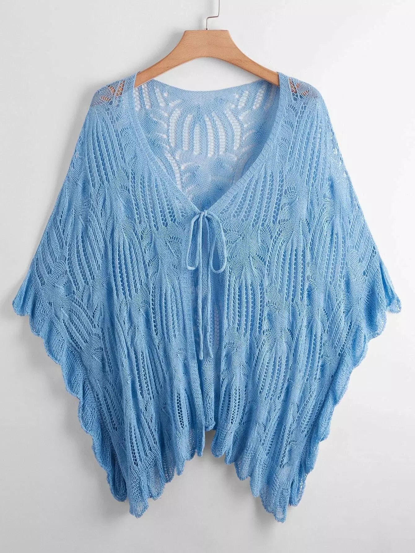بلس كارديجان مفتوح من الأمام محبوك ومفتوح برباط أمامي