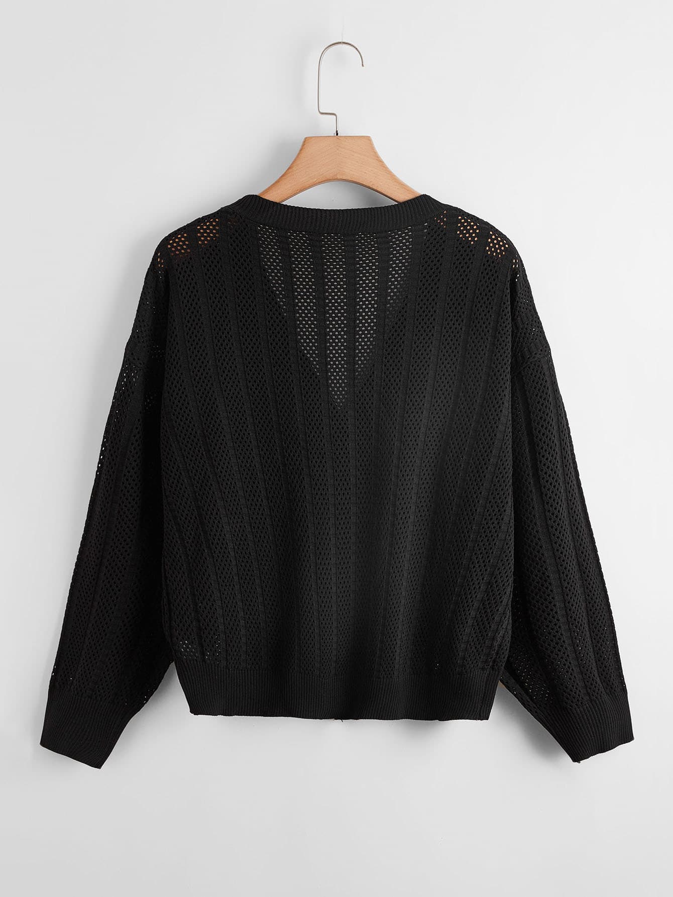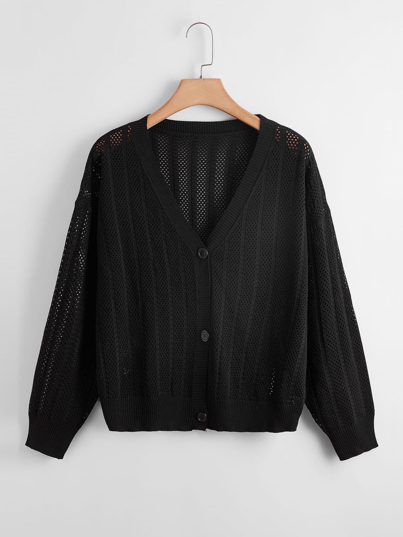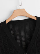 Plus Pointelle Knit Button Front Drop Shoulder Cardigan