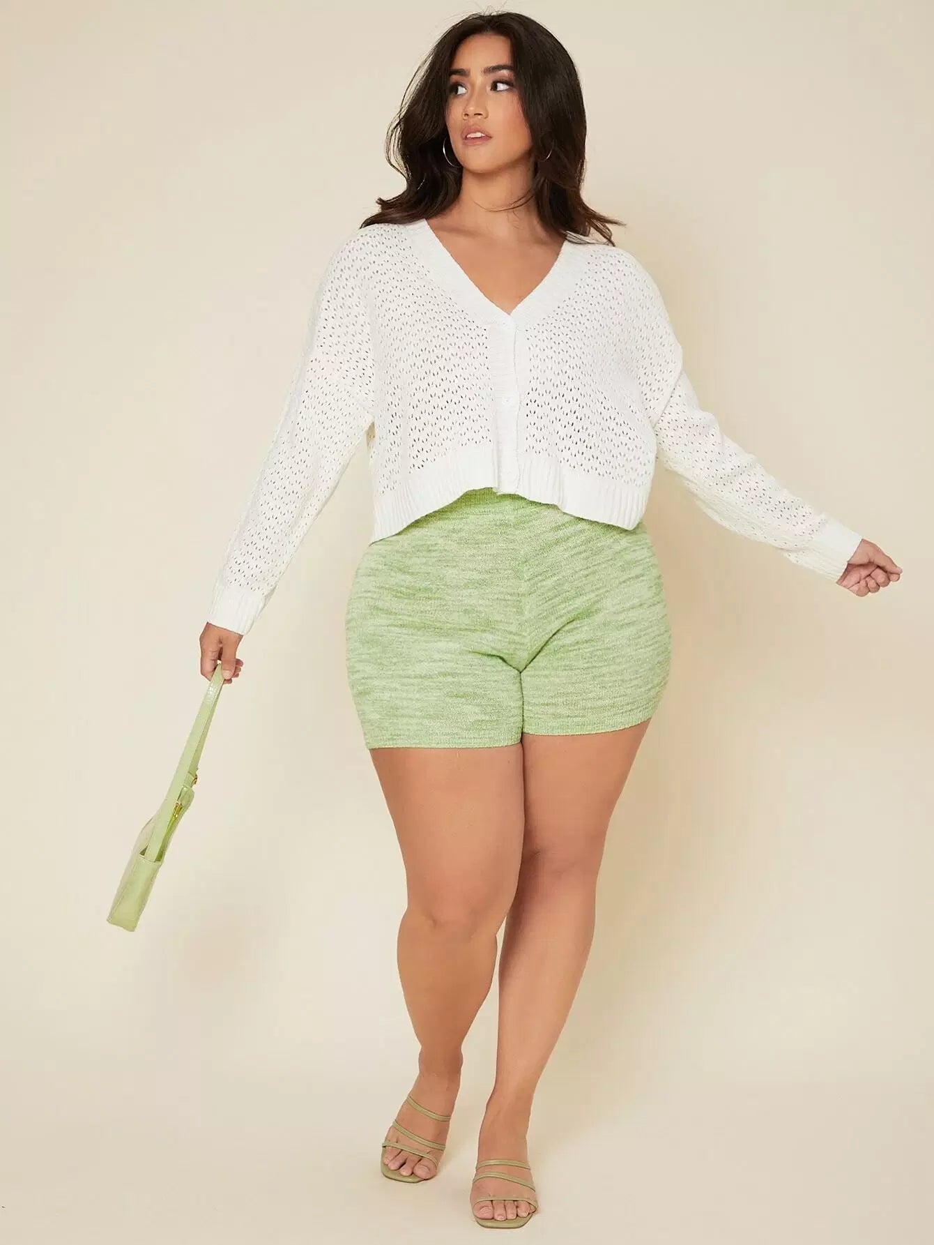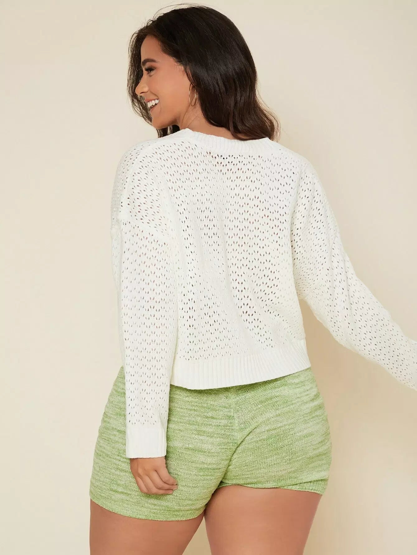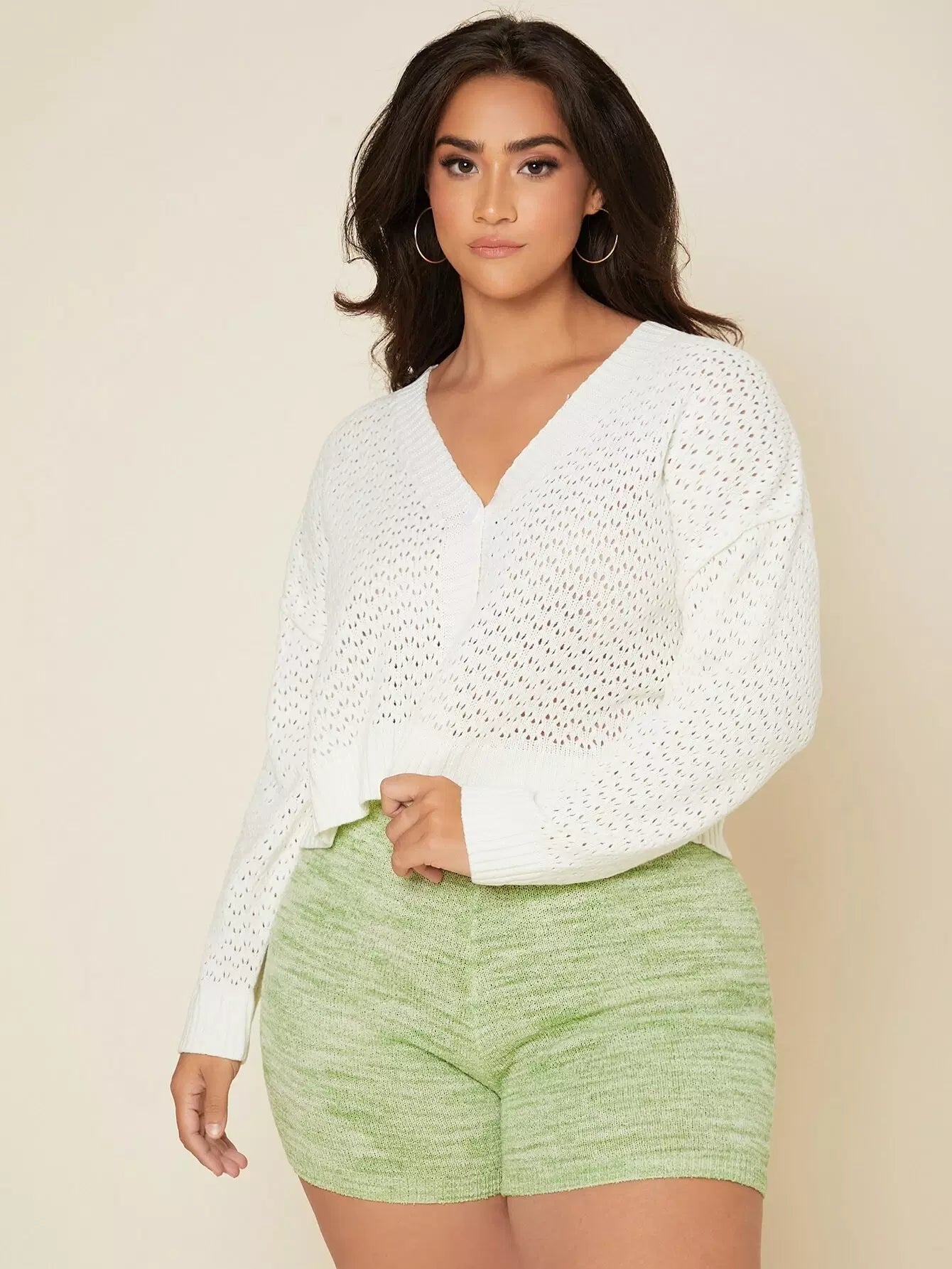بلس بوينتيل كارديجان محبوك منسدل الأكتاف محبوك بلاس