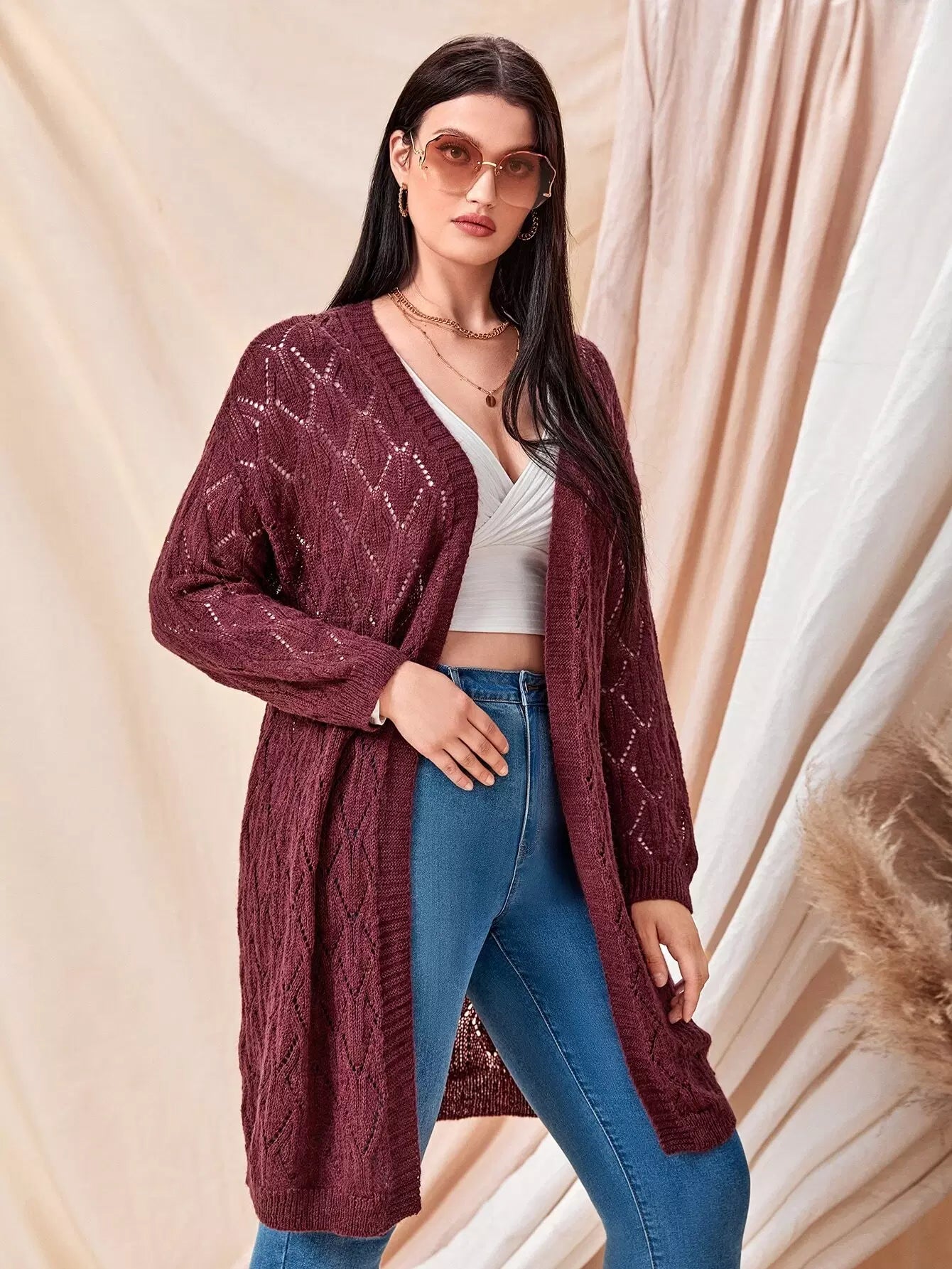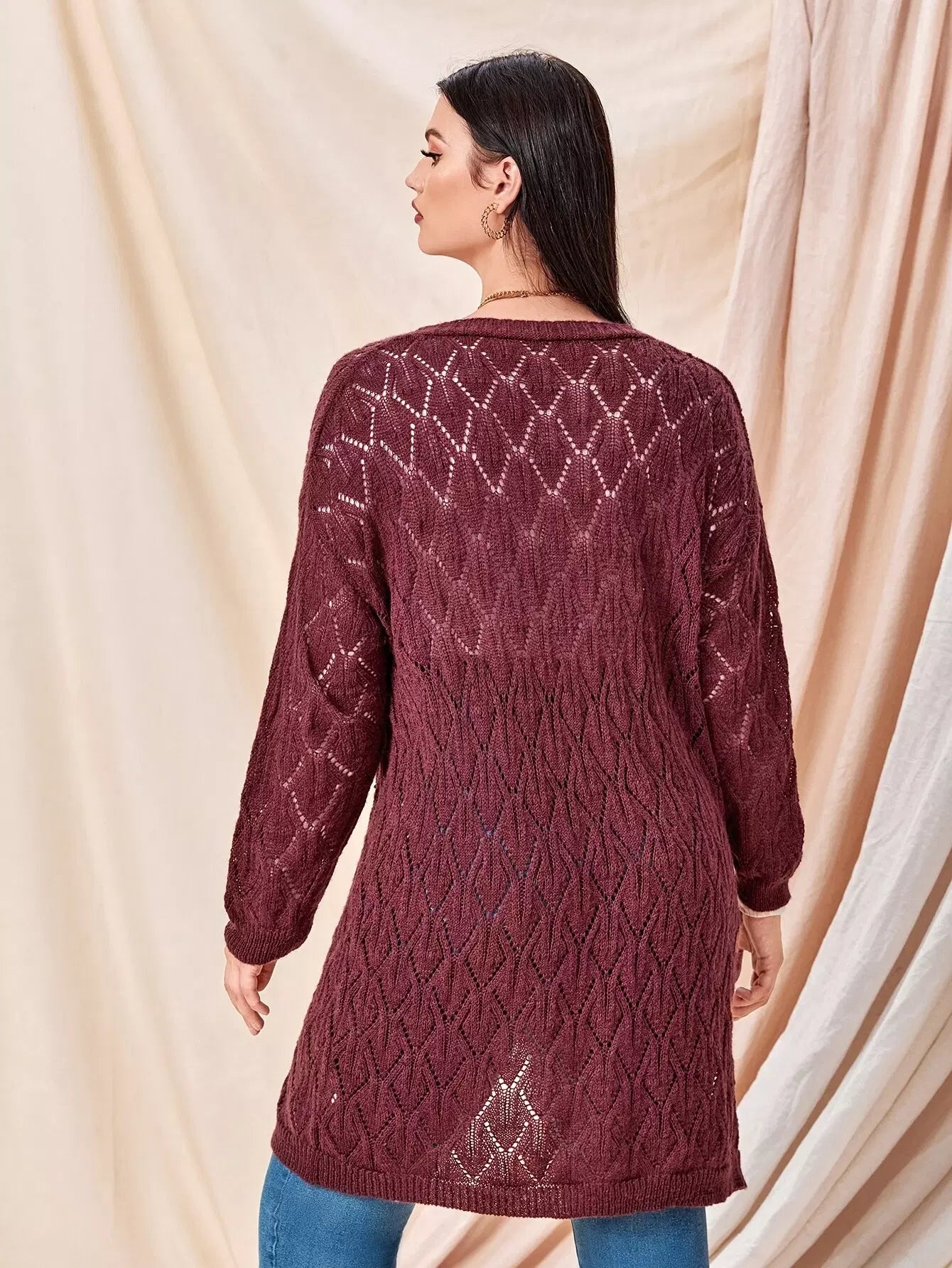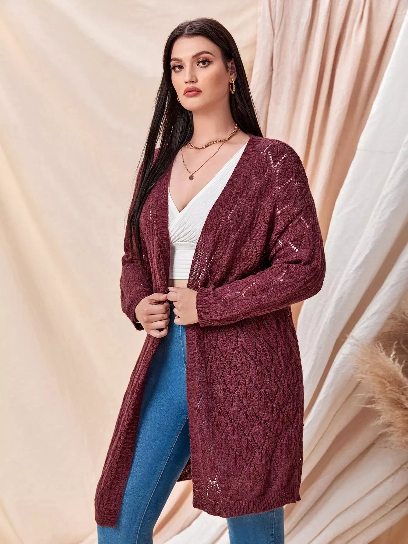 كارديجان مفتوح منسدل الأكتاف محبوك ومفتوح من الأمام