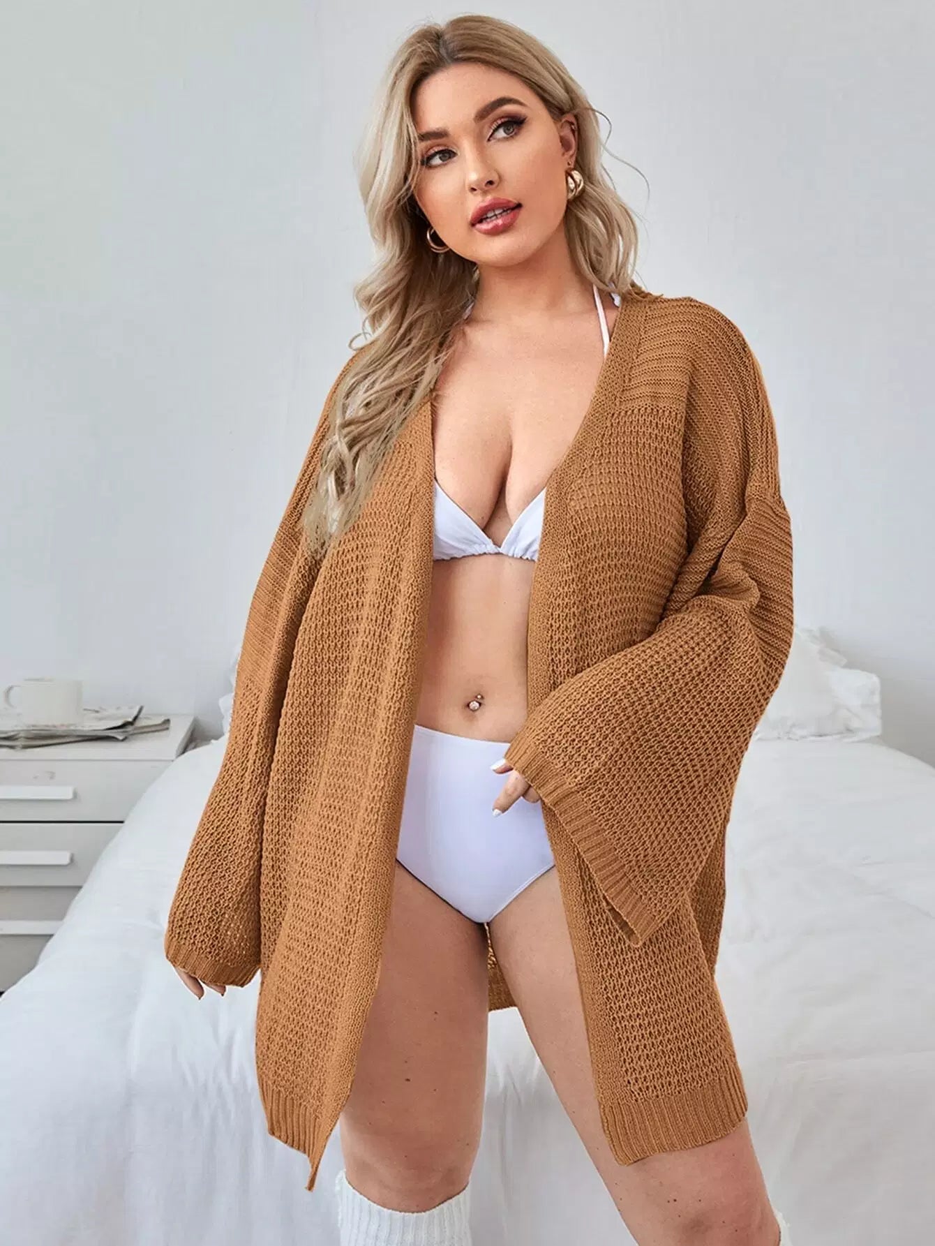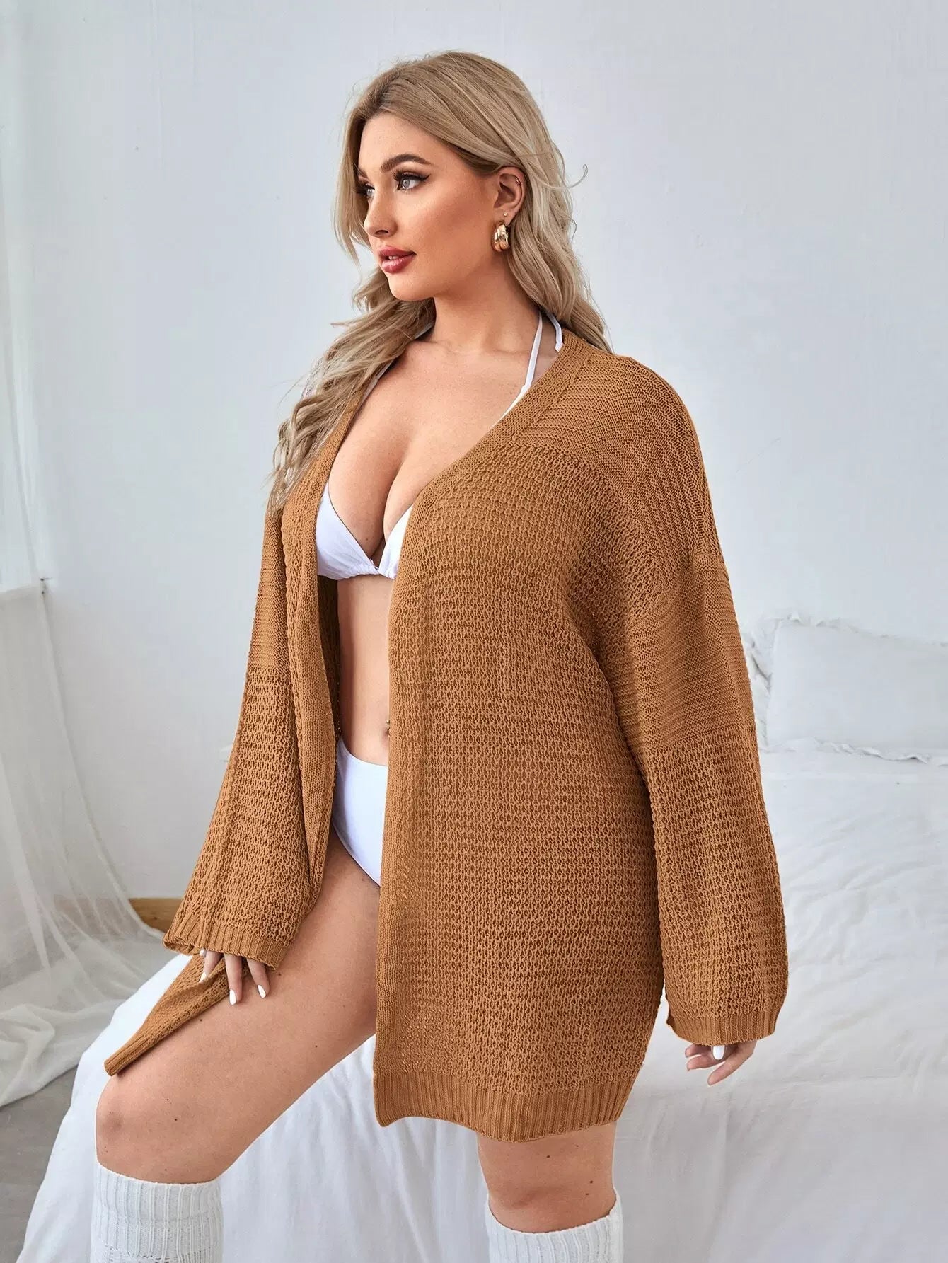كارديغان سادة منسدل الكتفين سادة بلاس