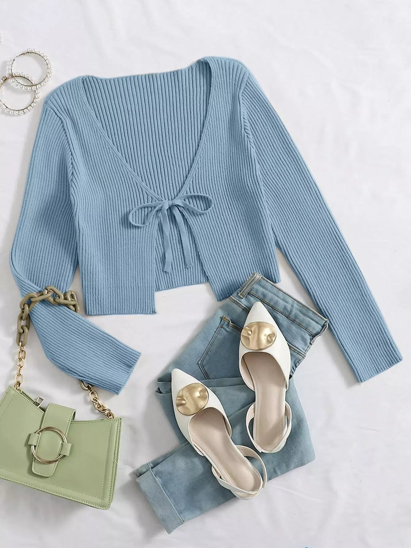 كارديغان محبوك برباطات أمامية محبوكة برباط أمامي بلس