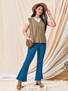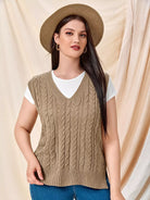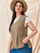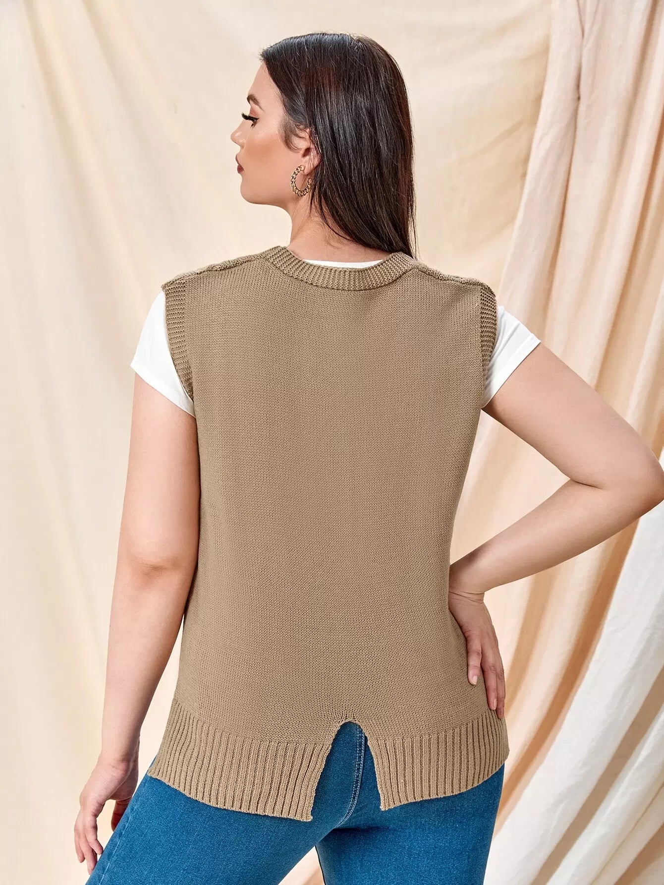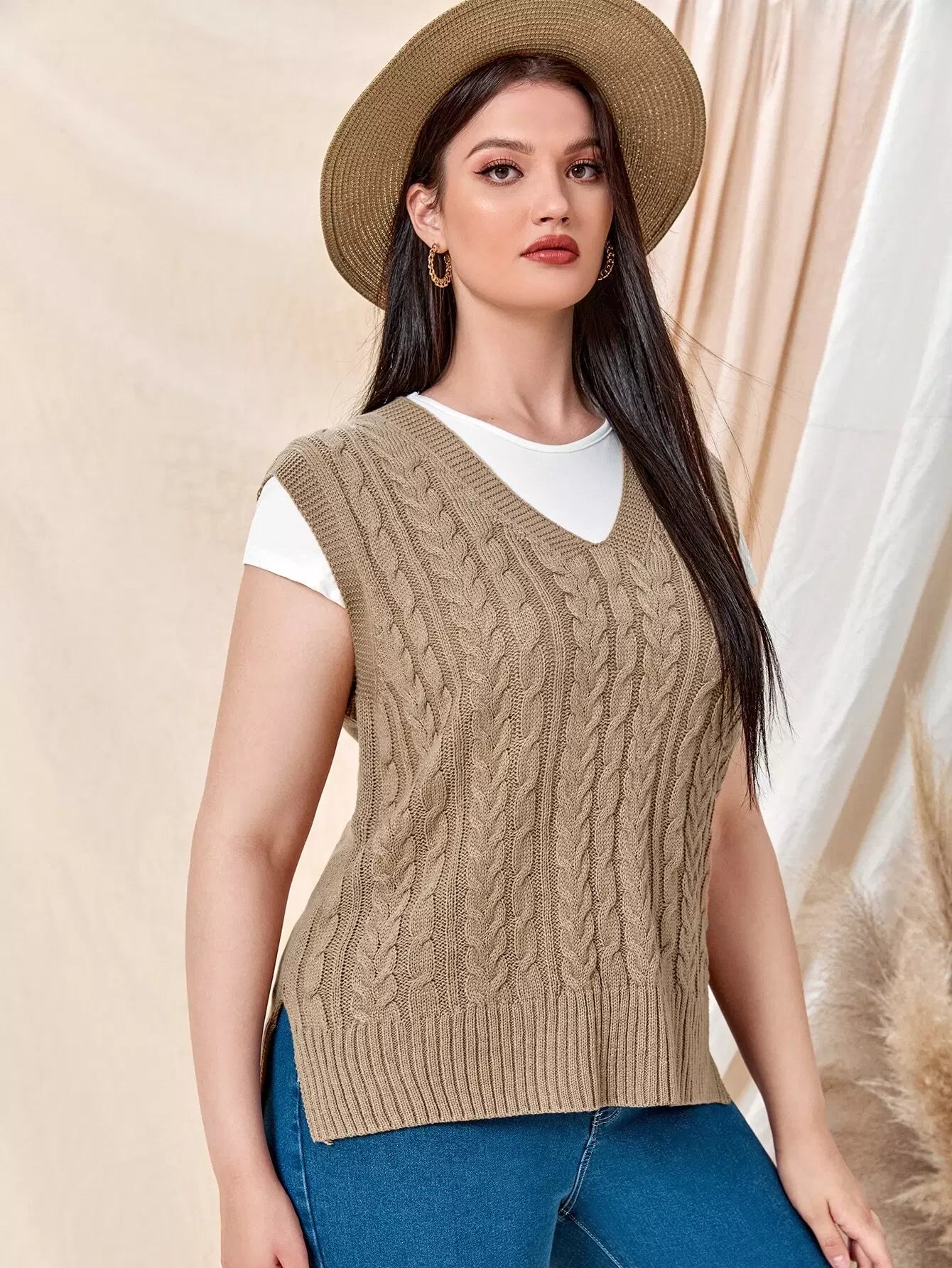 سترة بدون كنزة صوفية محبوكة بحاشية كبلية منقسمة بدون تي شيرت