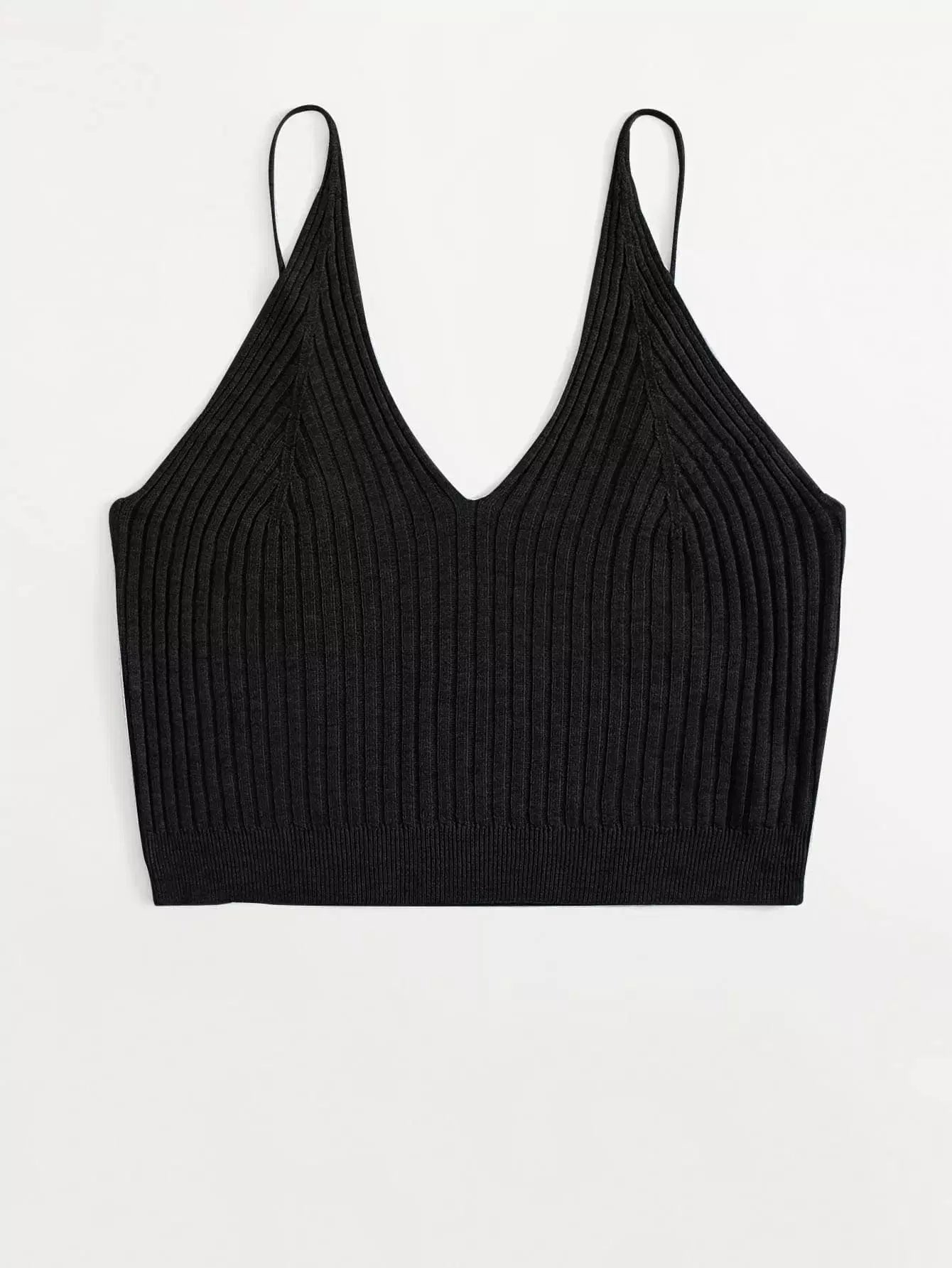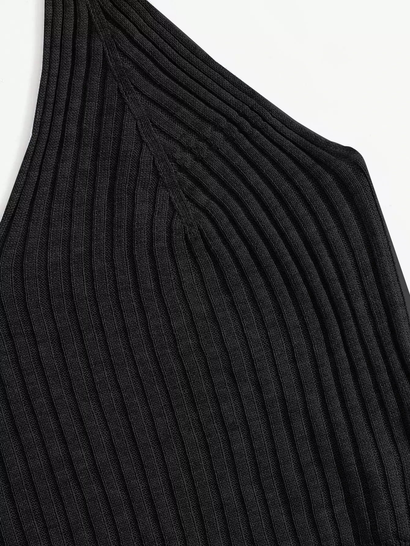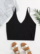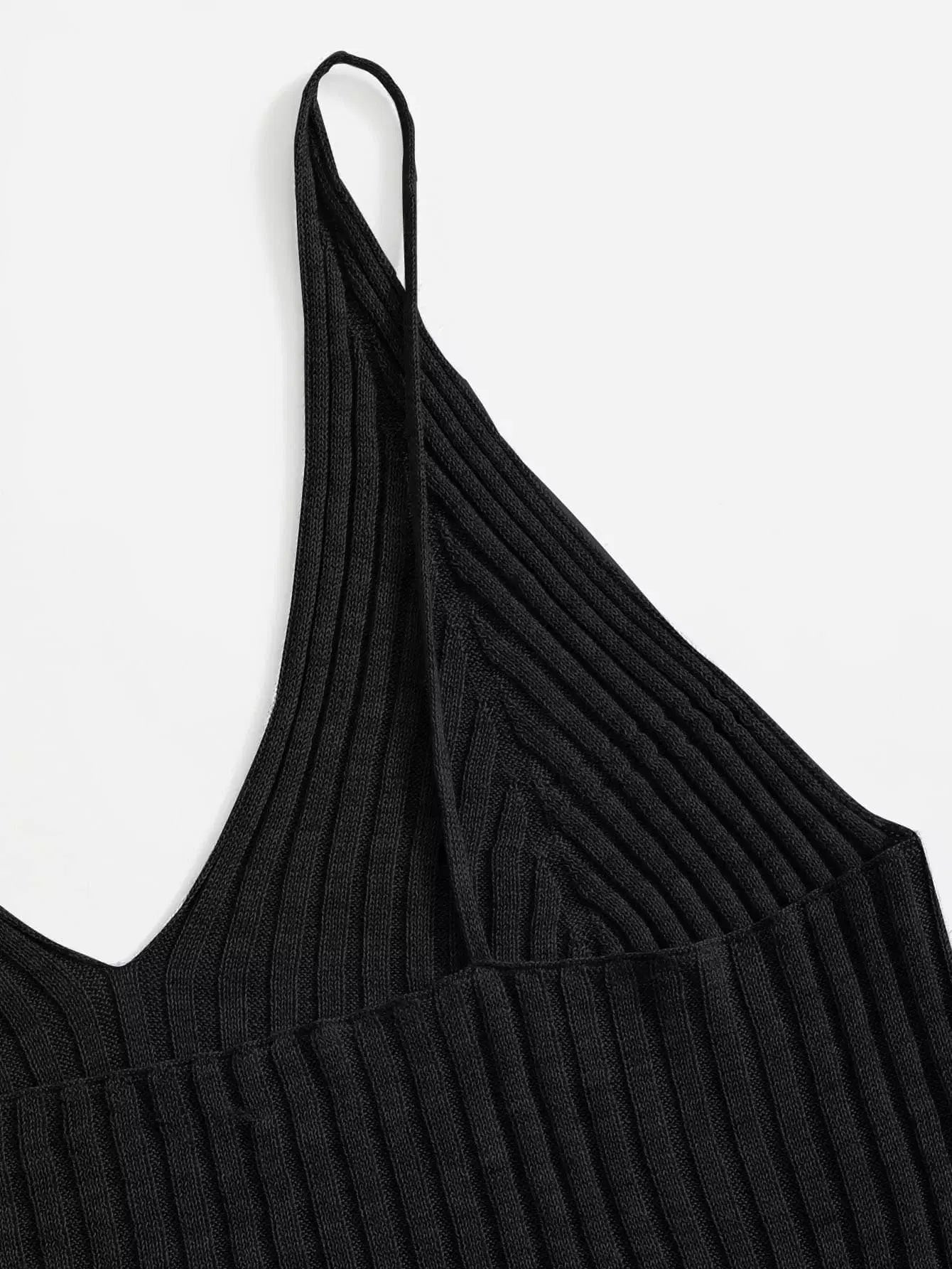 بلوزة بدون أكمام سادة مضلعة متماسكة مضلعة