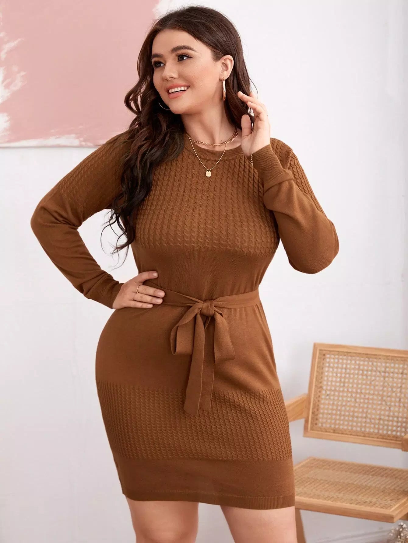بالإضافة إلى فستان سترة Bodycon متماسكة بدون حزام