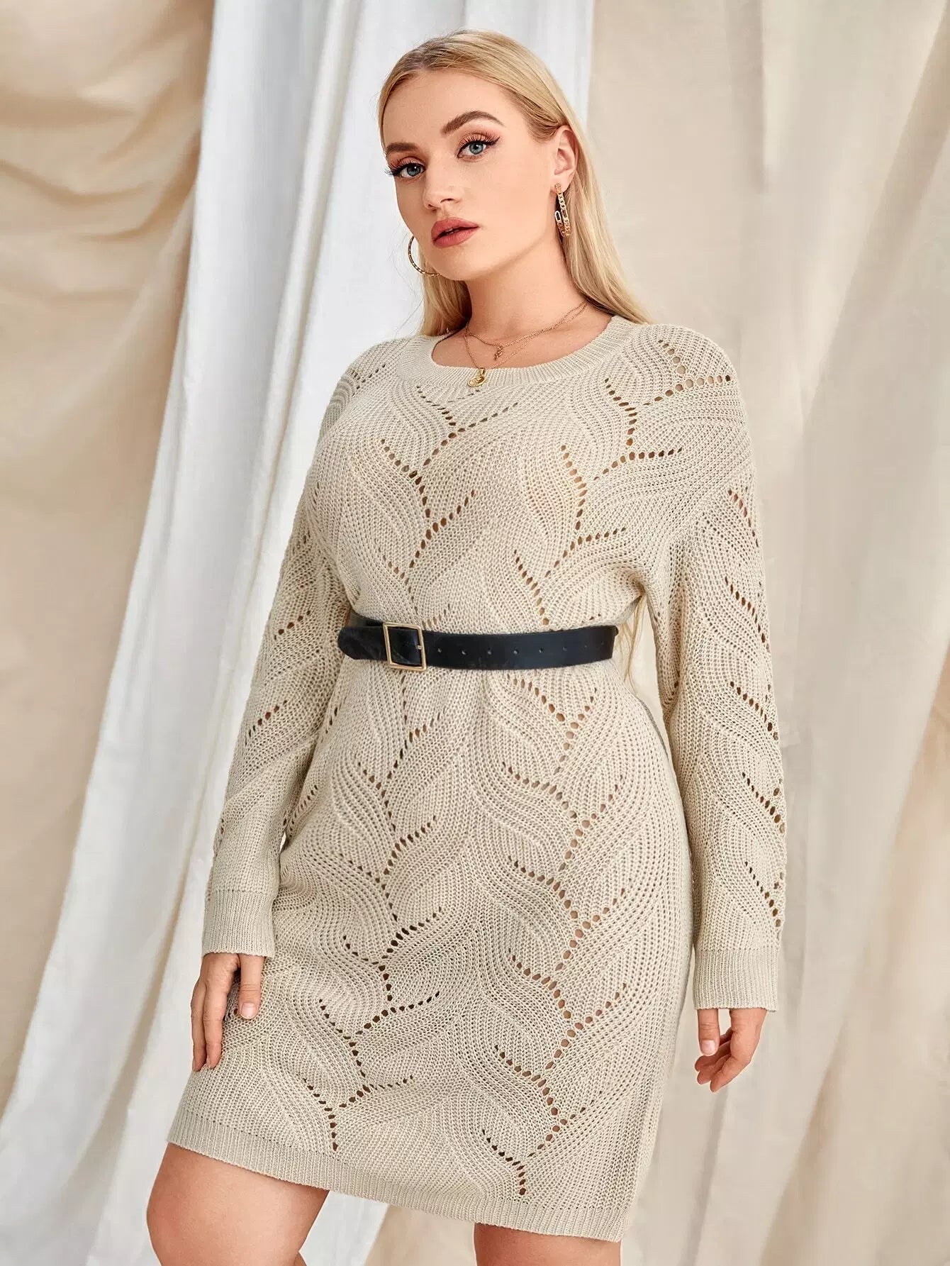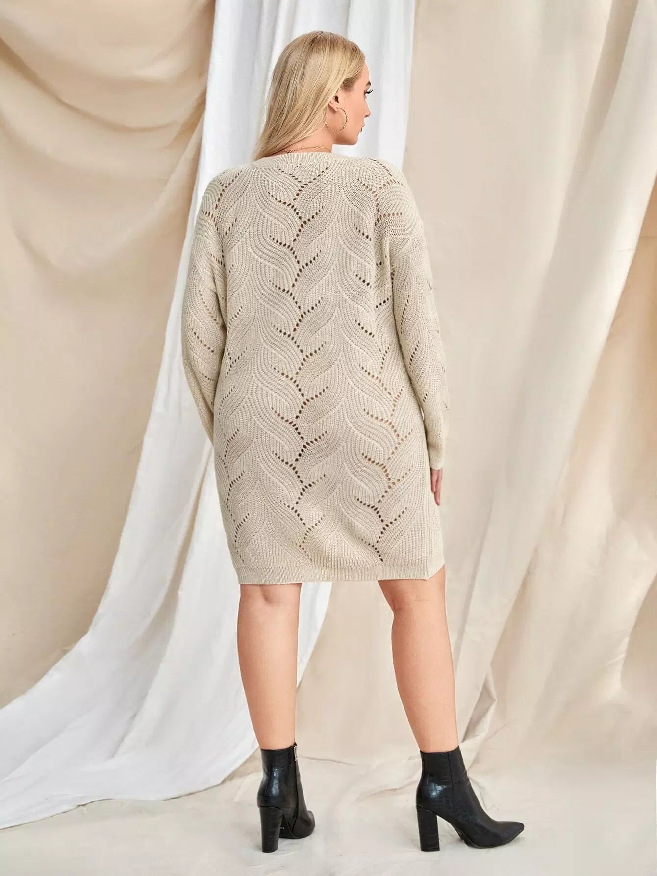 بالإضافة إلى فستان سترة منسوج بكتف منسدل من Pointelle بدون حزام