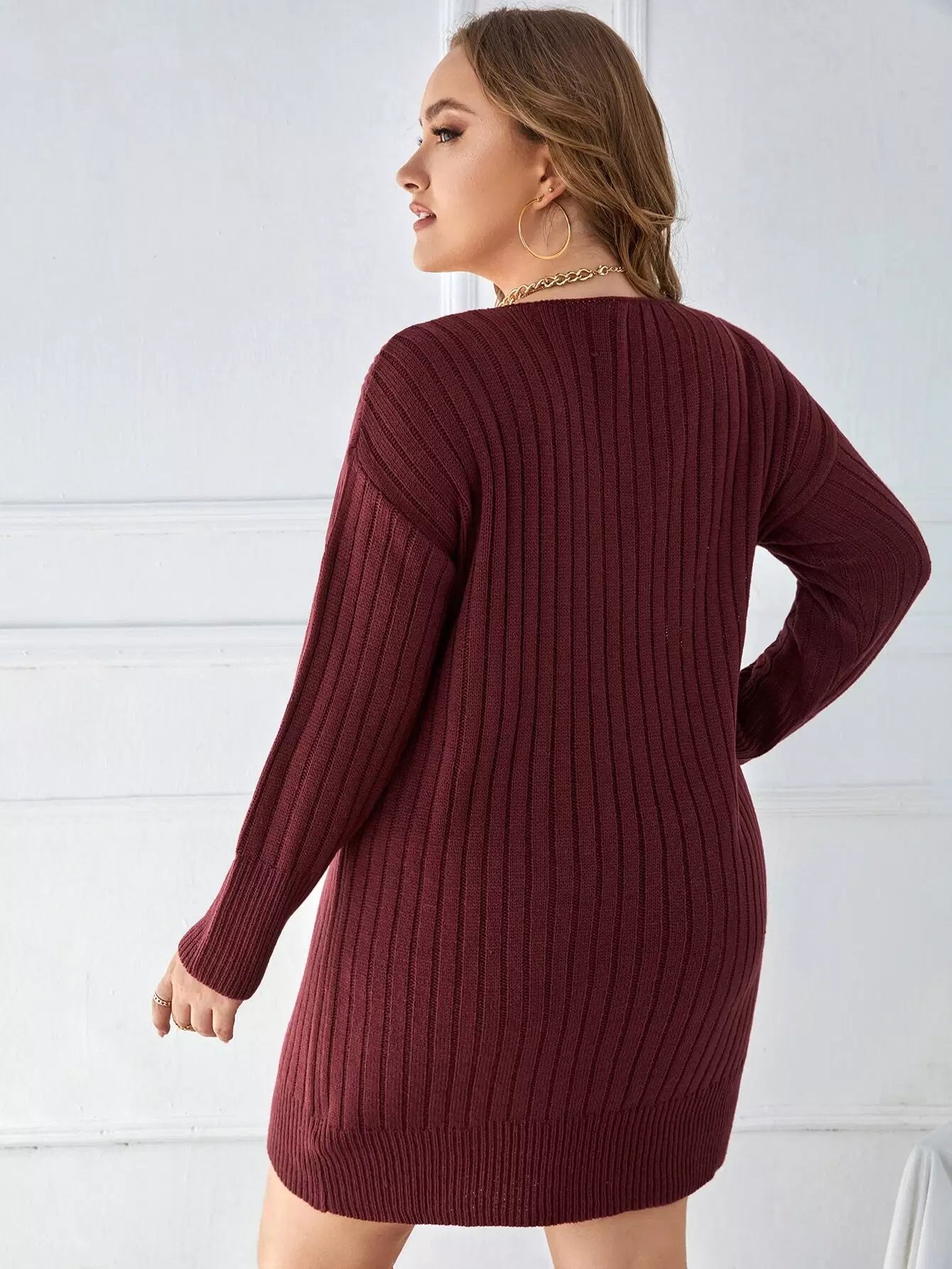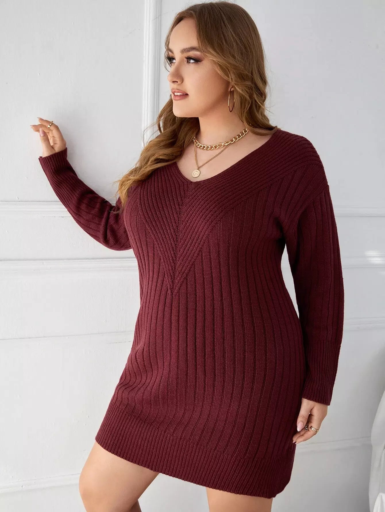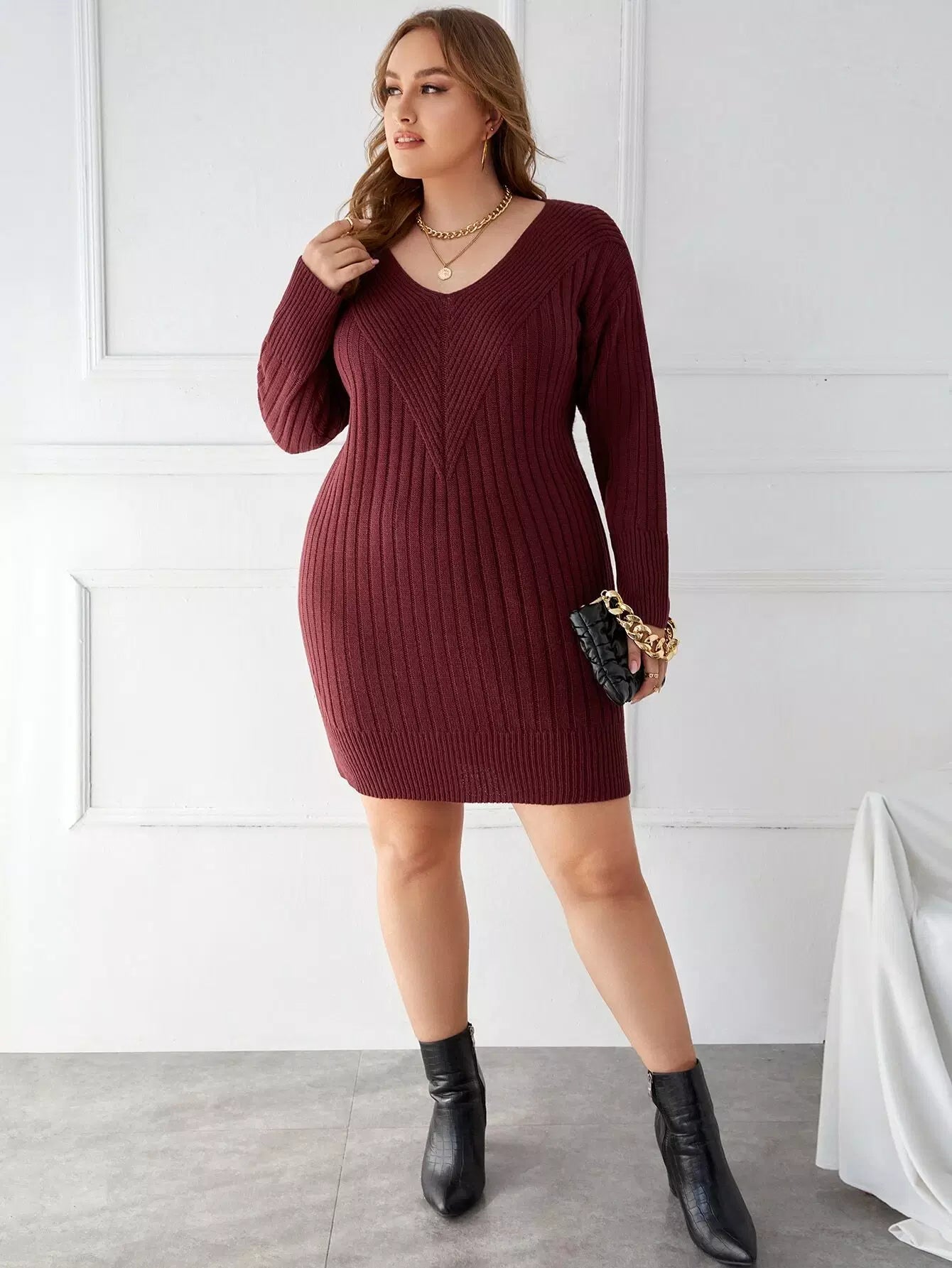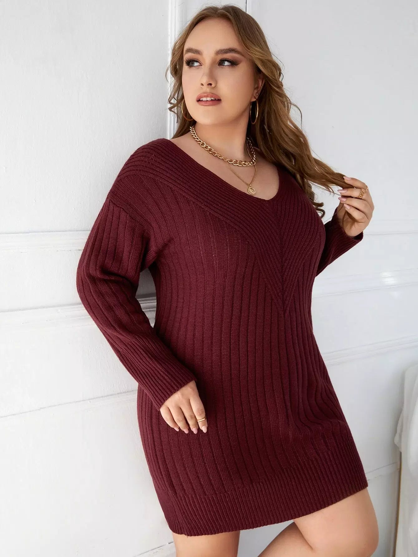 فستان بدون أكتاف منسدل الأكتاف محبوك ومضلع ومضلع زائد