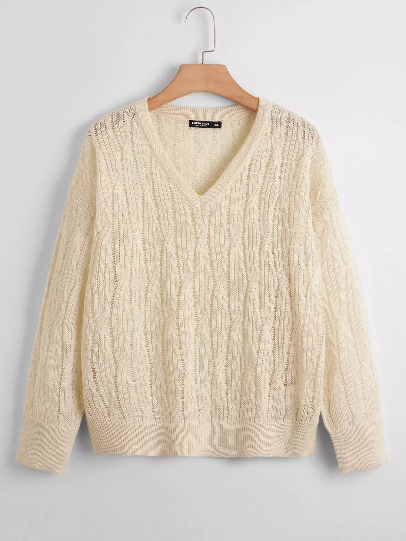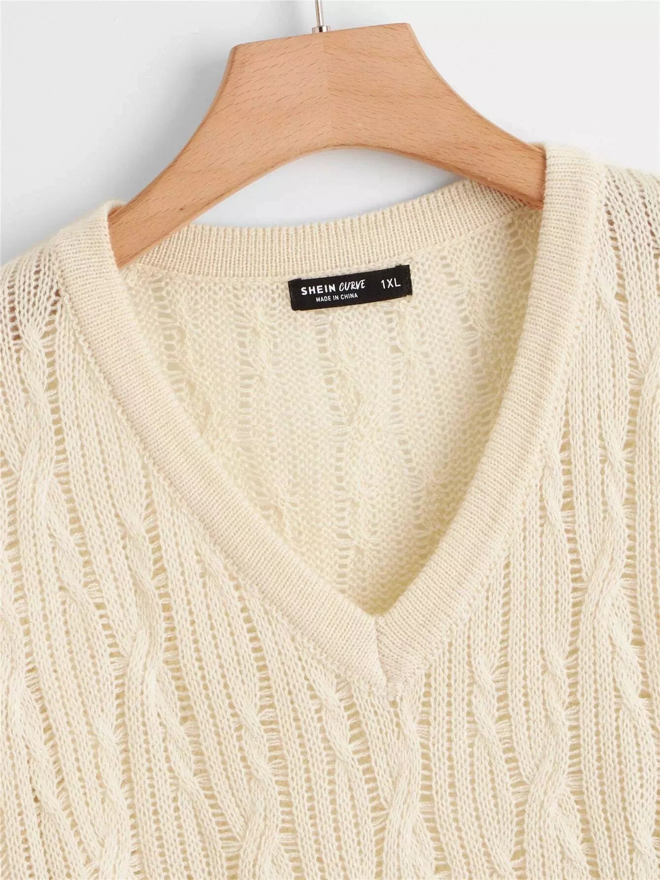 بلس كنزة برقبة على شكل كابل محبوكة على شكل V